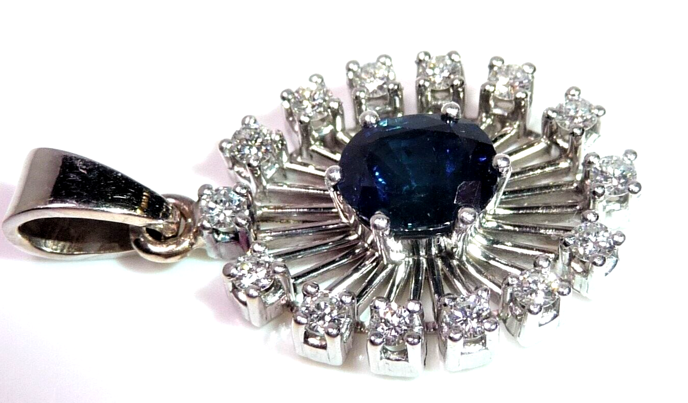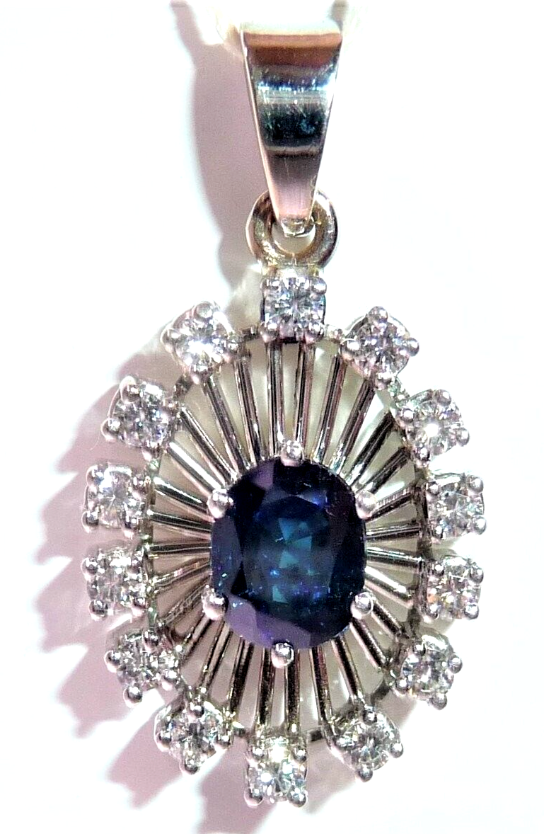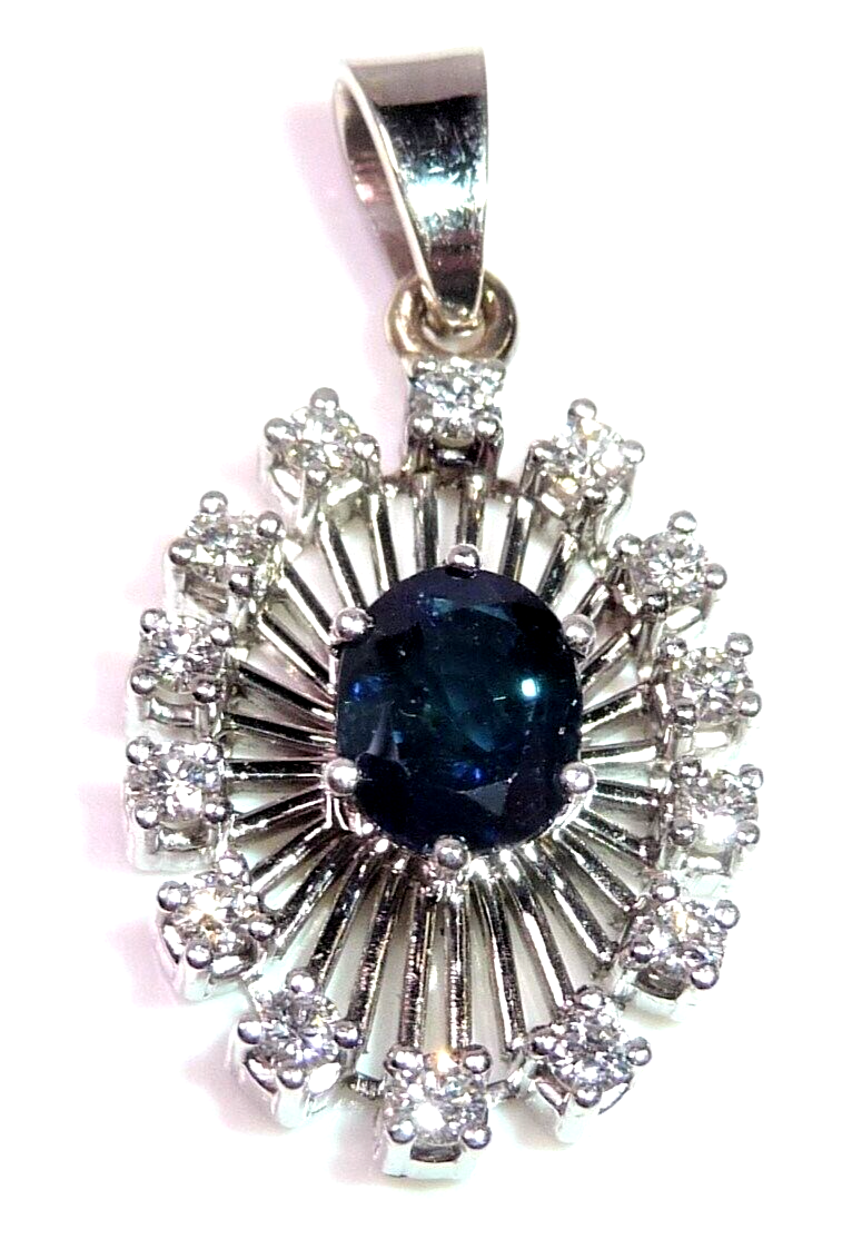 Anhänger 750 Gold 0.60 ct Diamanten Saphir 30,5 mm lang inkl. Schlaufe 5,4 gr.