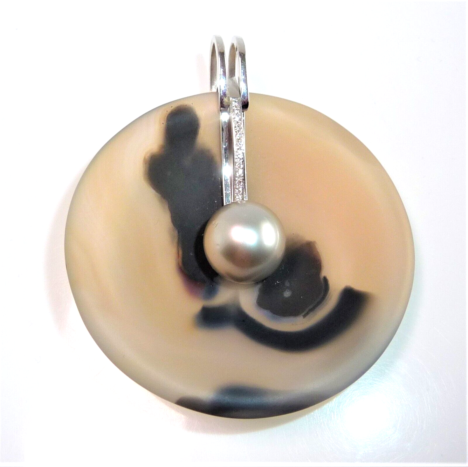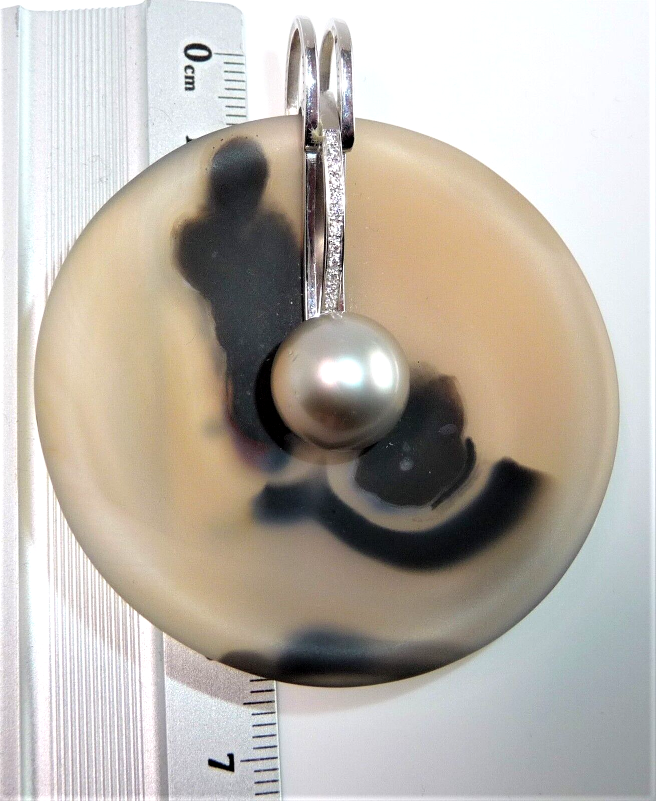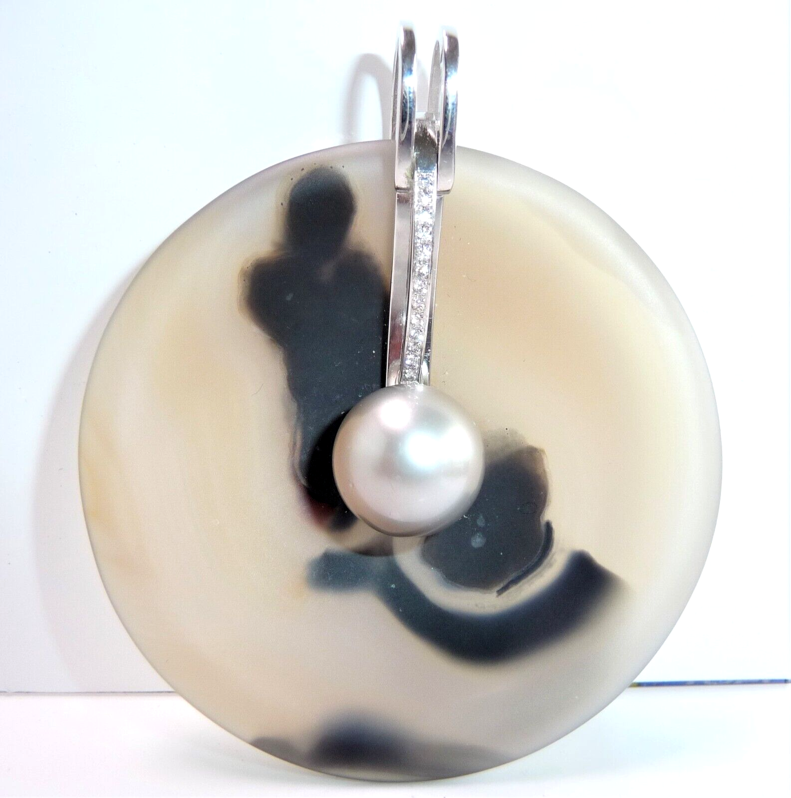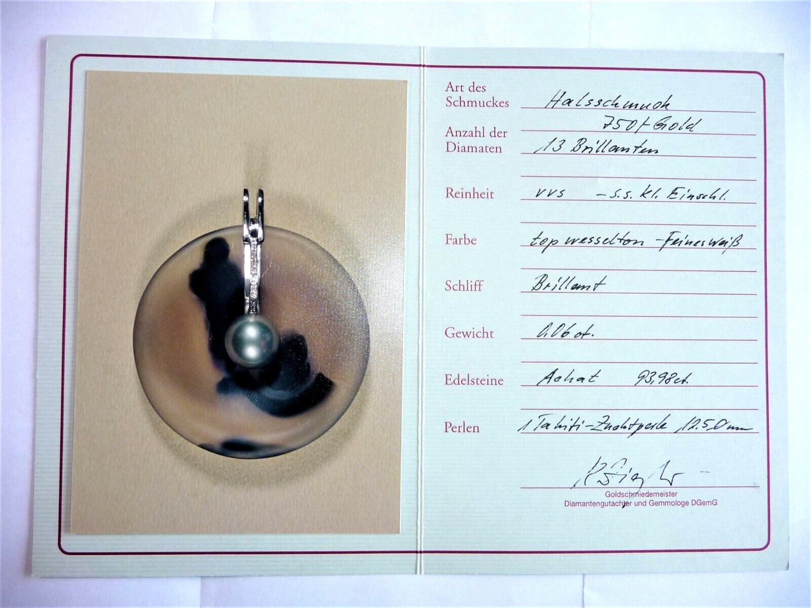 Anhänger 750 Gold Diamanten - Achat + 12,5 mm Tahiti-Perle 61,2 mm lang 28,1gr