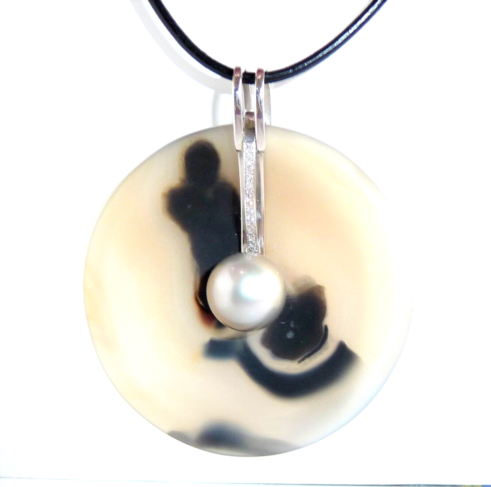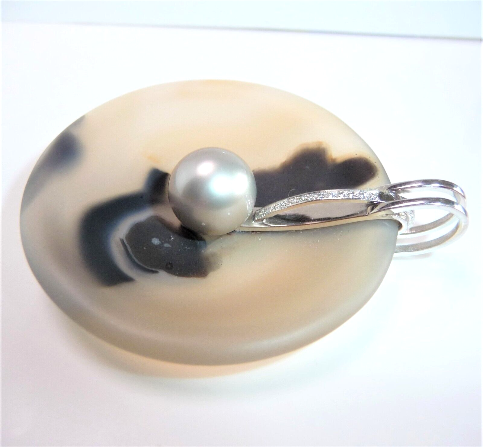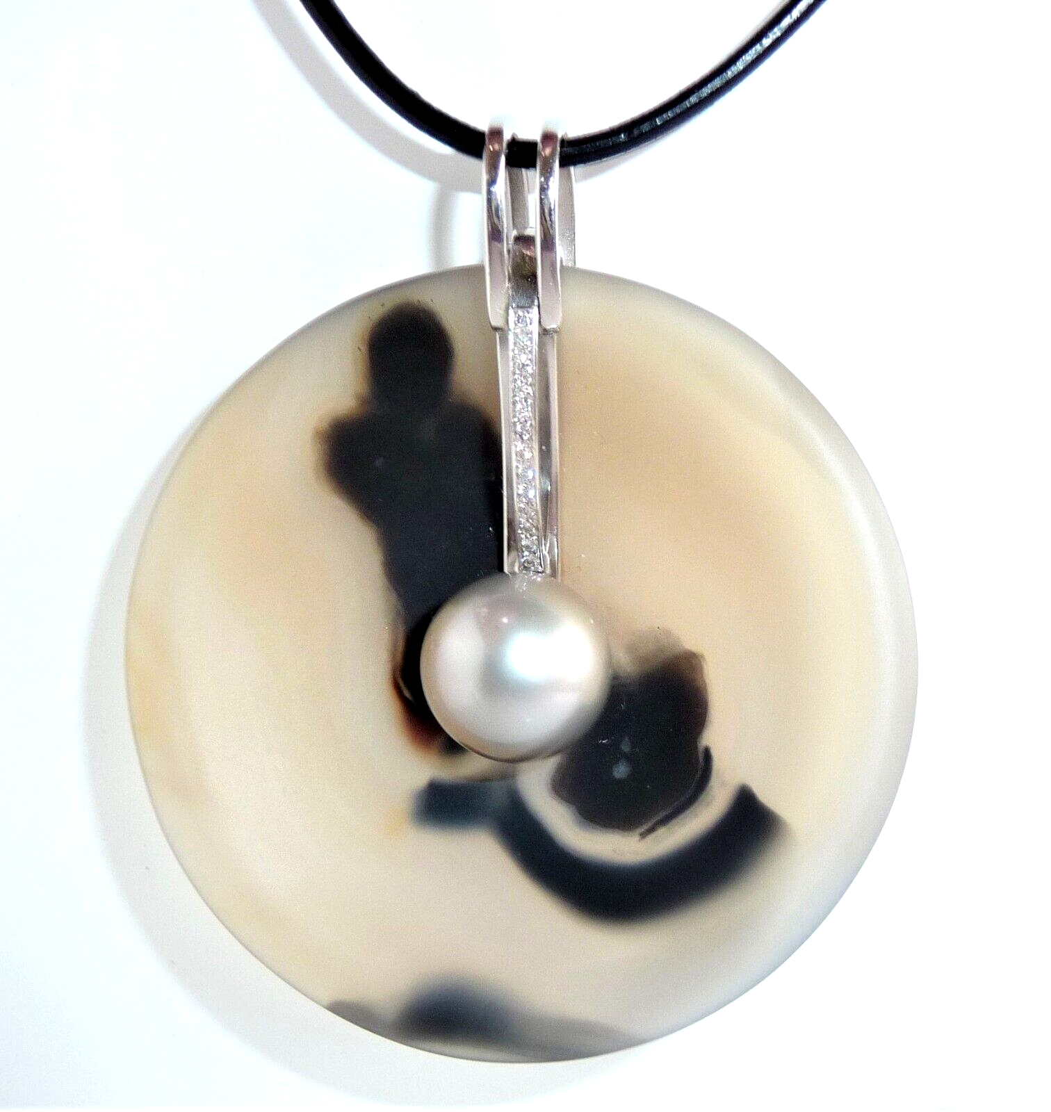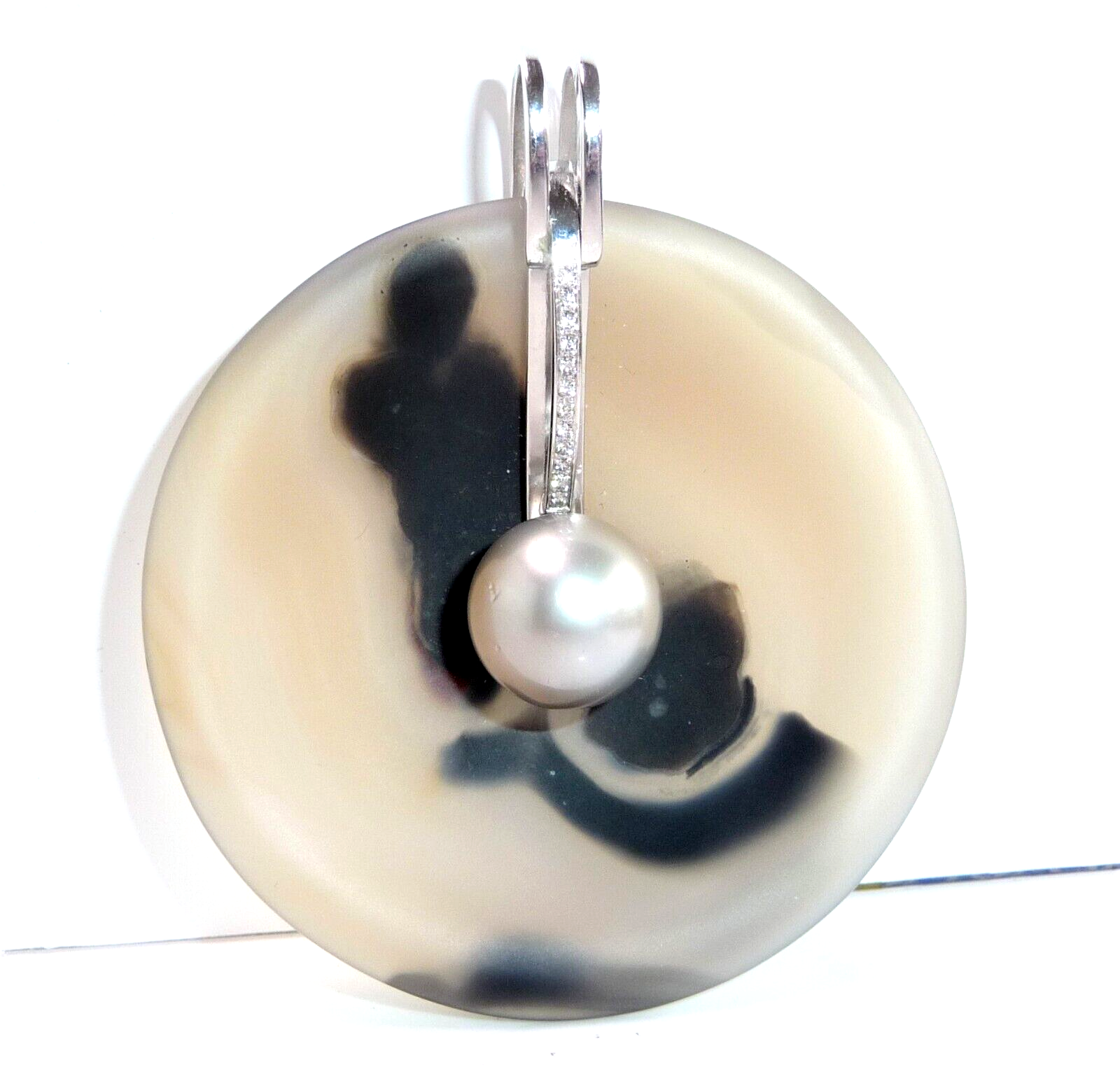 Anhänger 750 Gold Diamanten - Achat + 12,5 mm Tahiti-Perle 61,2 mm lang 28,1gr