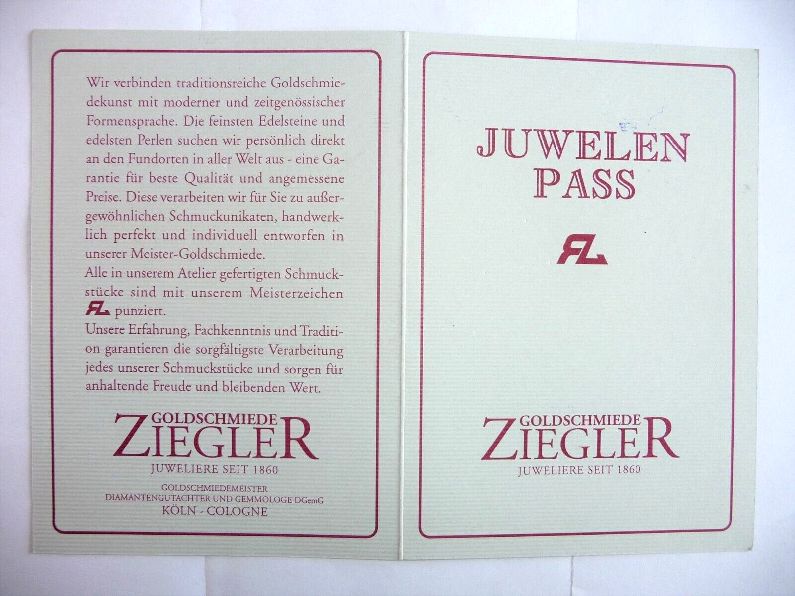 Das Schmuckstück hat ein Zertifikat vom Goldschmied selbst, der gleichzeitig auch Gemmologe ist.