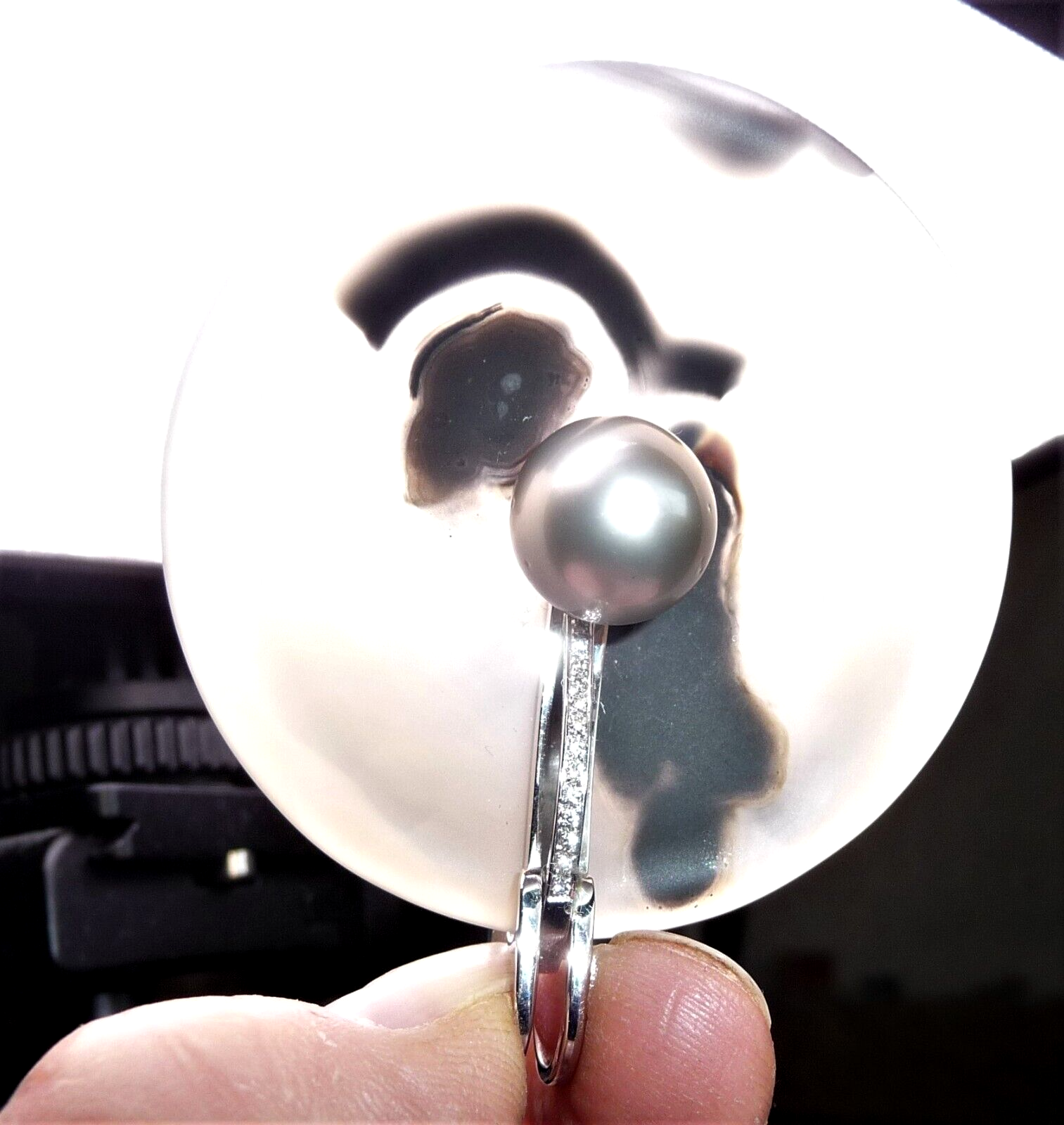 Im Zentrum der Achat-Schale ist eine wunderschöne, silbergraue Tahiti-Zuchtperle eingelagert. Die Perle ist perfekt rund und hat einen Durchmesser von 12,5 mm.