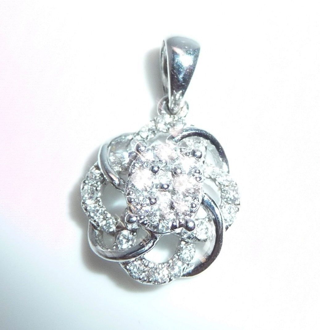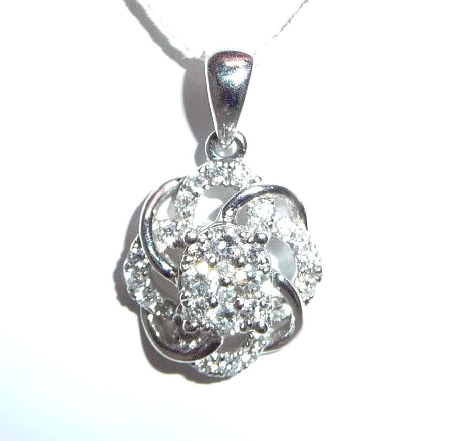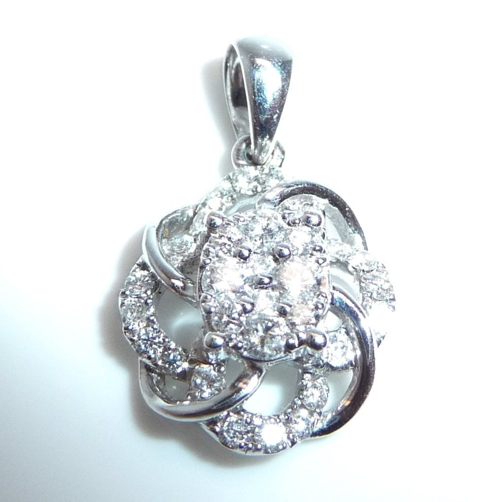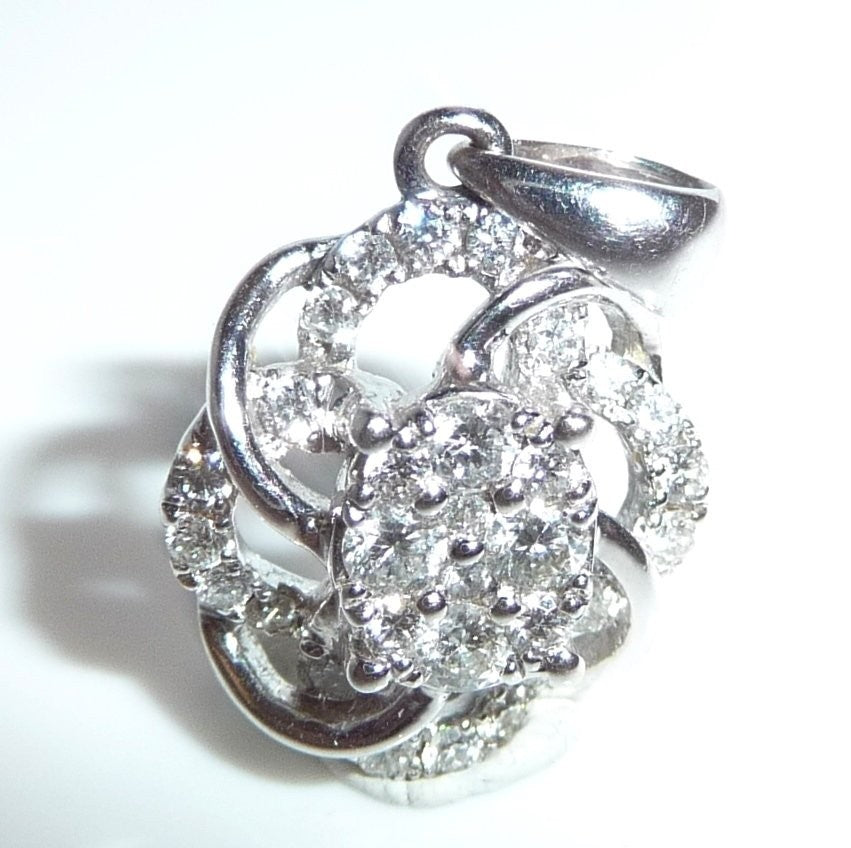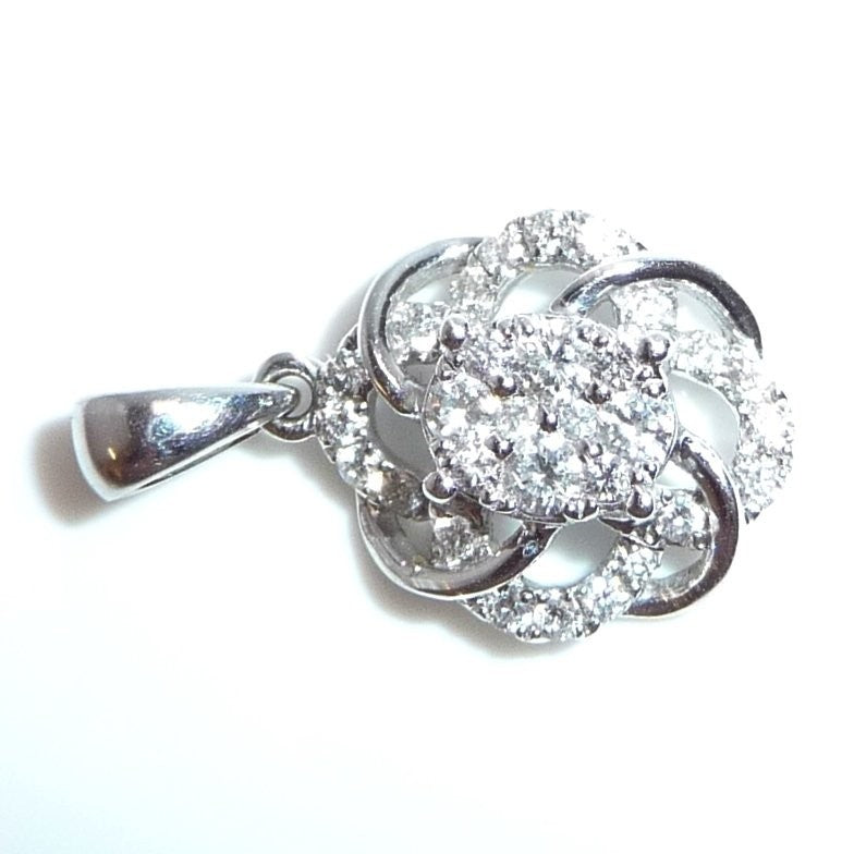 Anhänger in 750 / 18 K Weißgold. Der Anhänger ist wie eine Blüte gearbeitet. Er ist besetzt mit insgesamt 30 Diamanten im Brillantschliff von total ca. 0.38 ct. (G/SI-I).