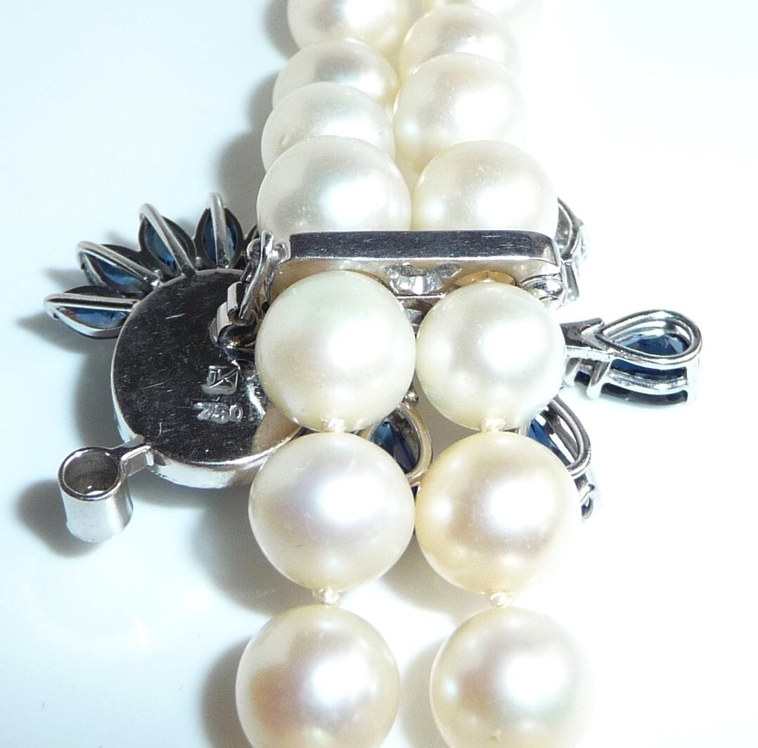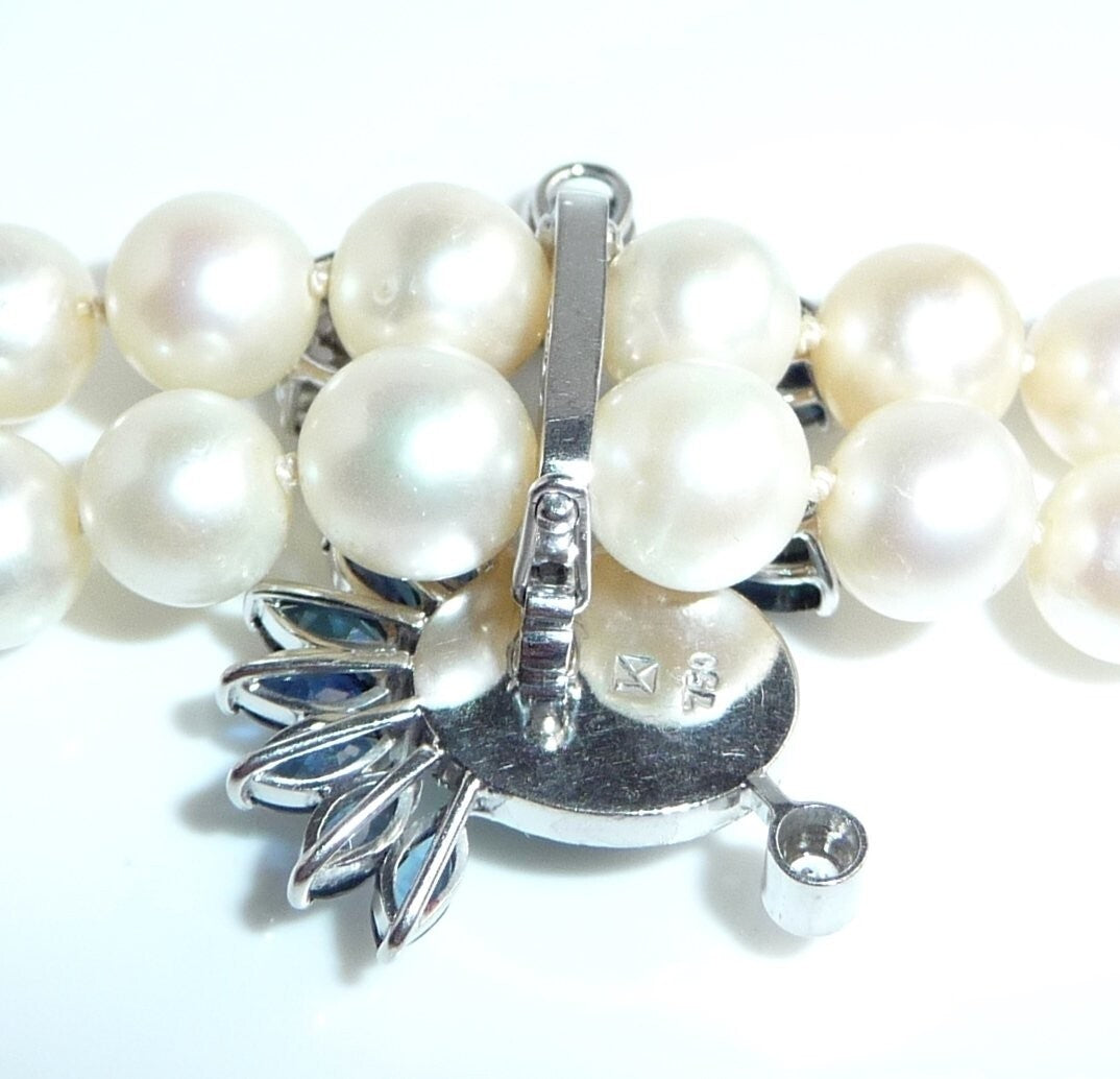 Schmuckstück in 18 K / 750 Weißgold. Bei dem Schmuckstück handelt es sich um einen Verkürzer für Perlenketten. Der Perlen-Clip wird zwischen zwei Perlen eingelegt und der Bügel wird zugeklappt. Es gibt zusätzlich noch eine seitliche Sicherung.