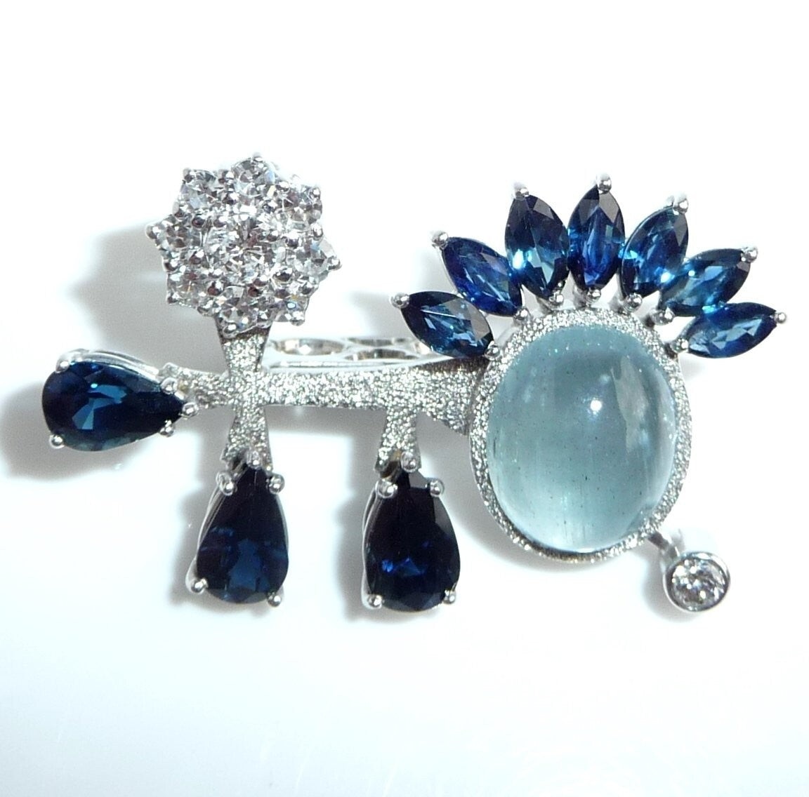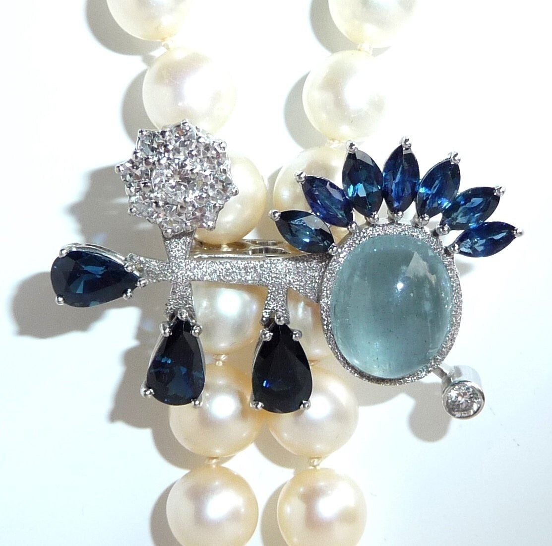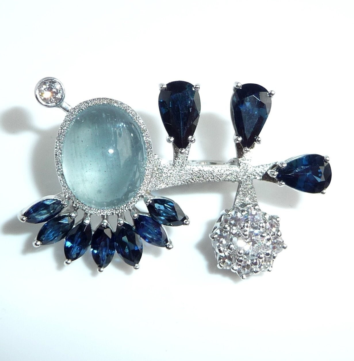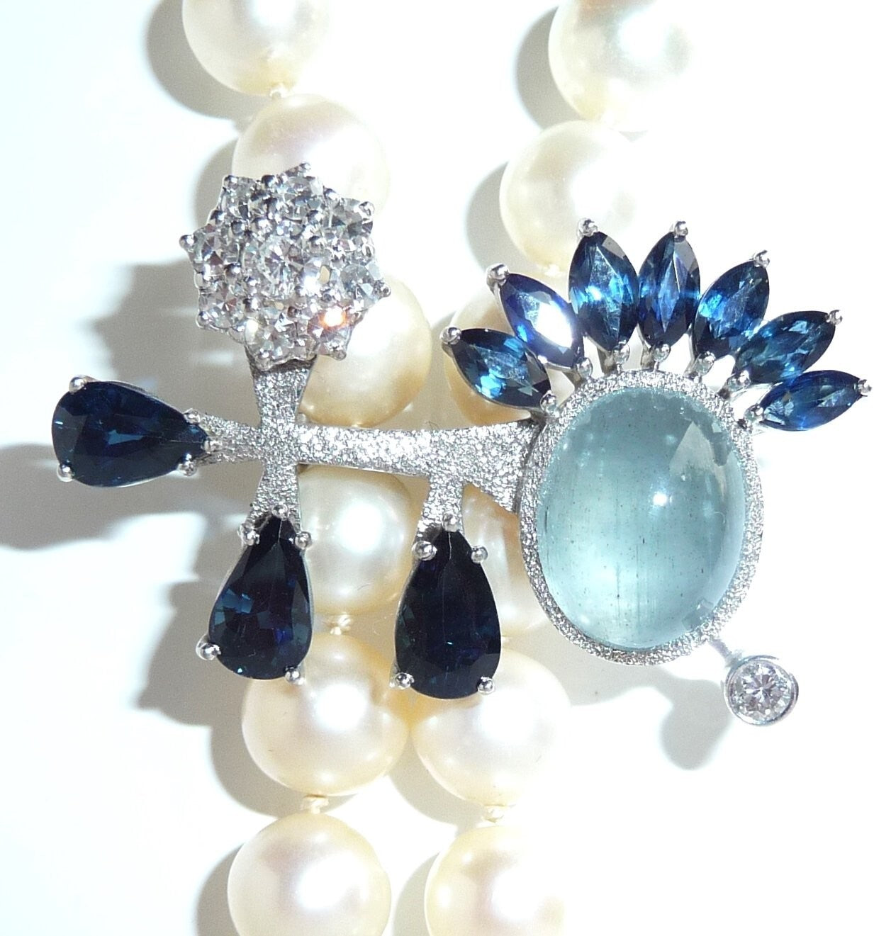 Anhänger 750 Weißgold 4.0ct Aquamarin 0.60 ct Diamanten 2.50 ct Saphire 8,9gr