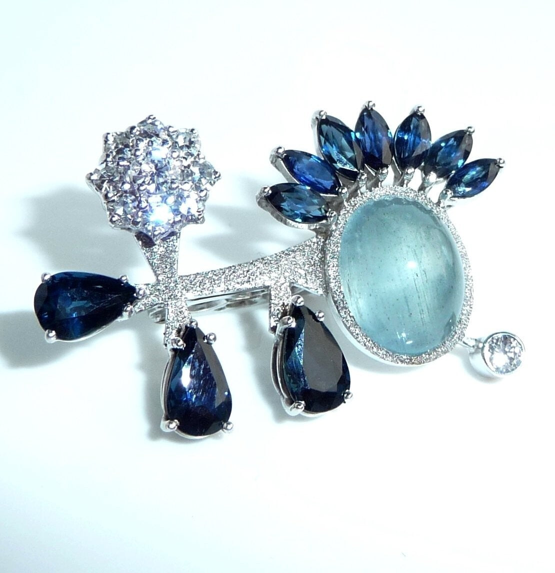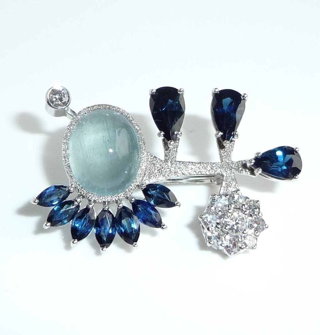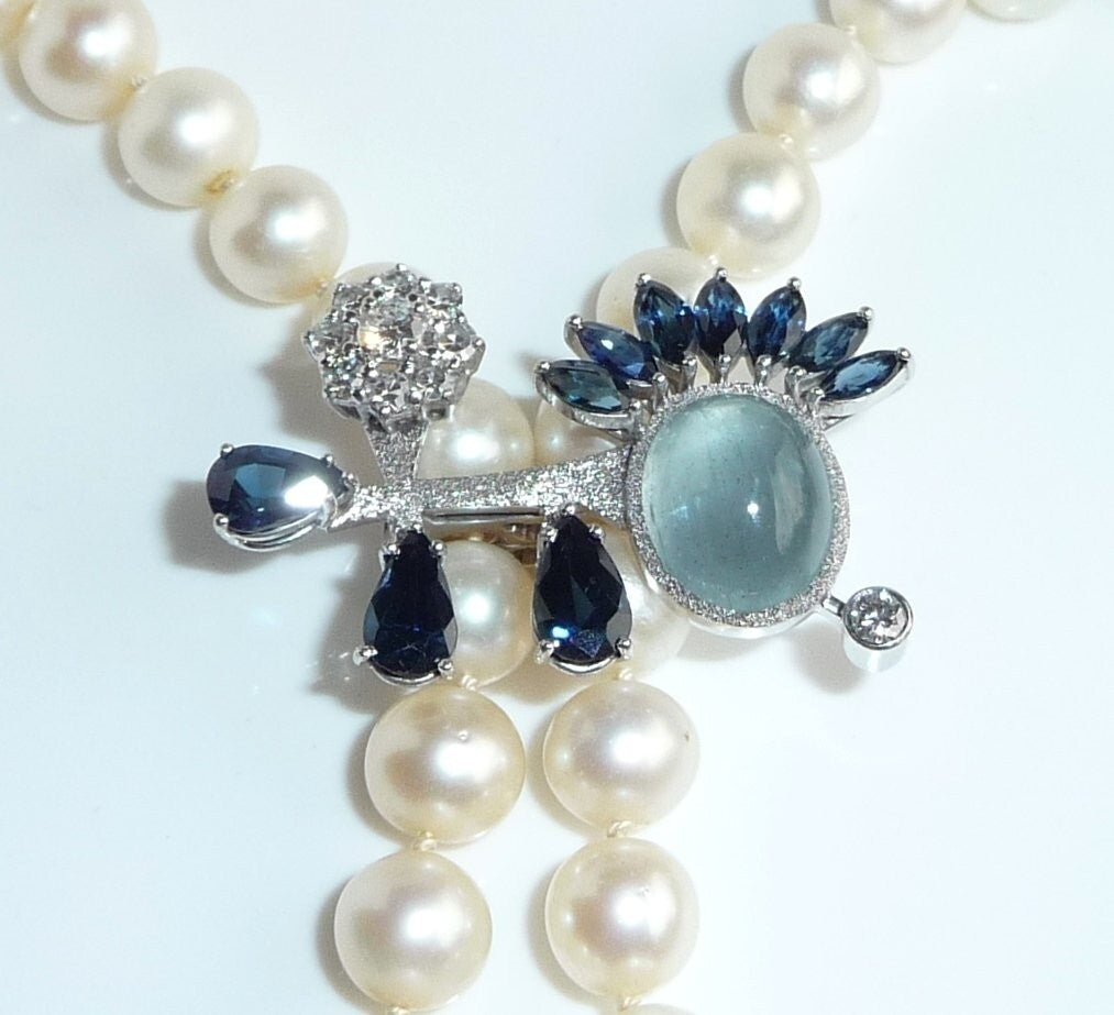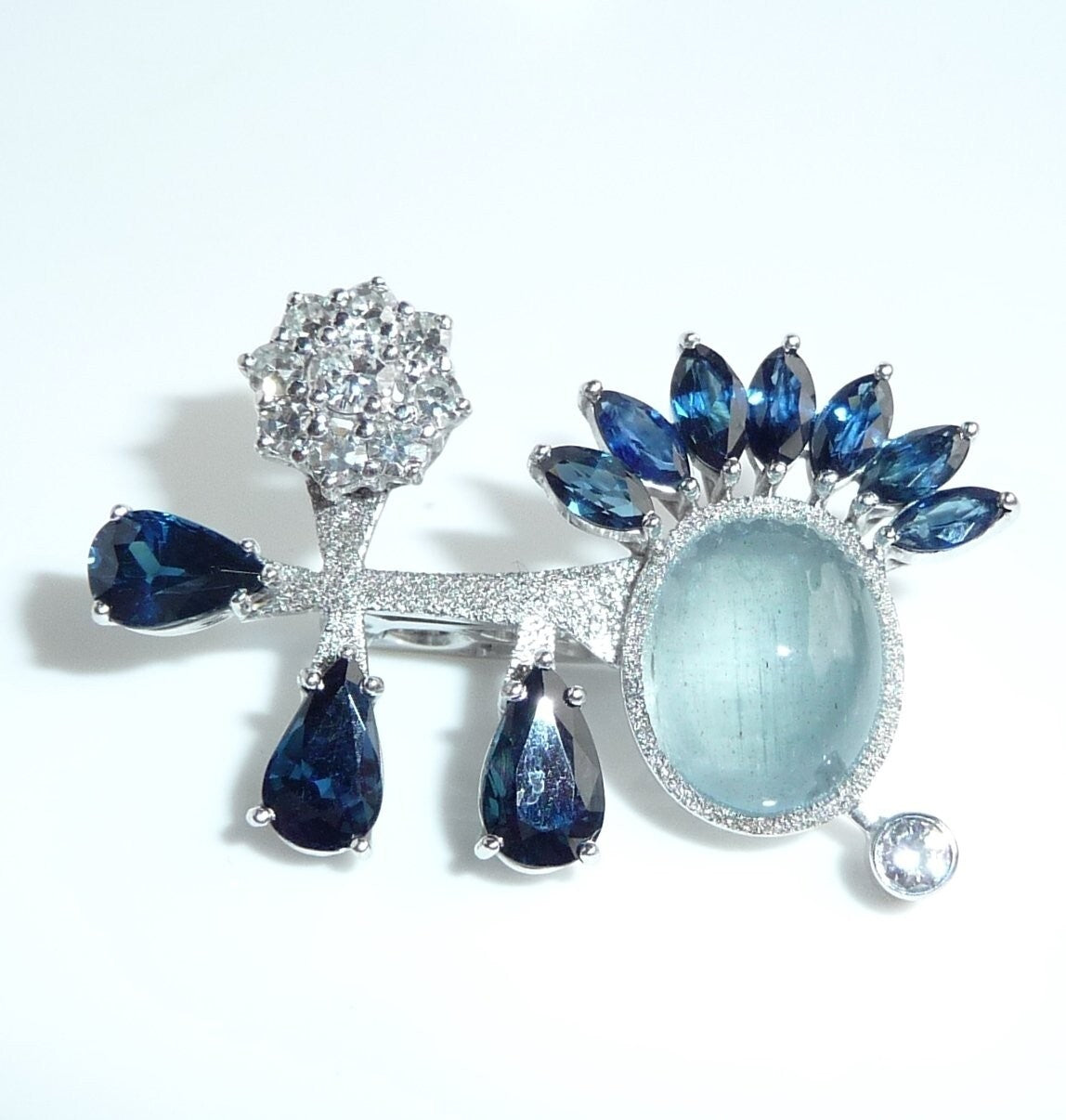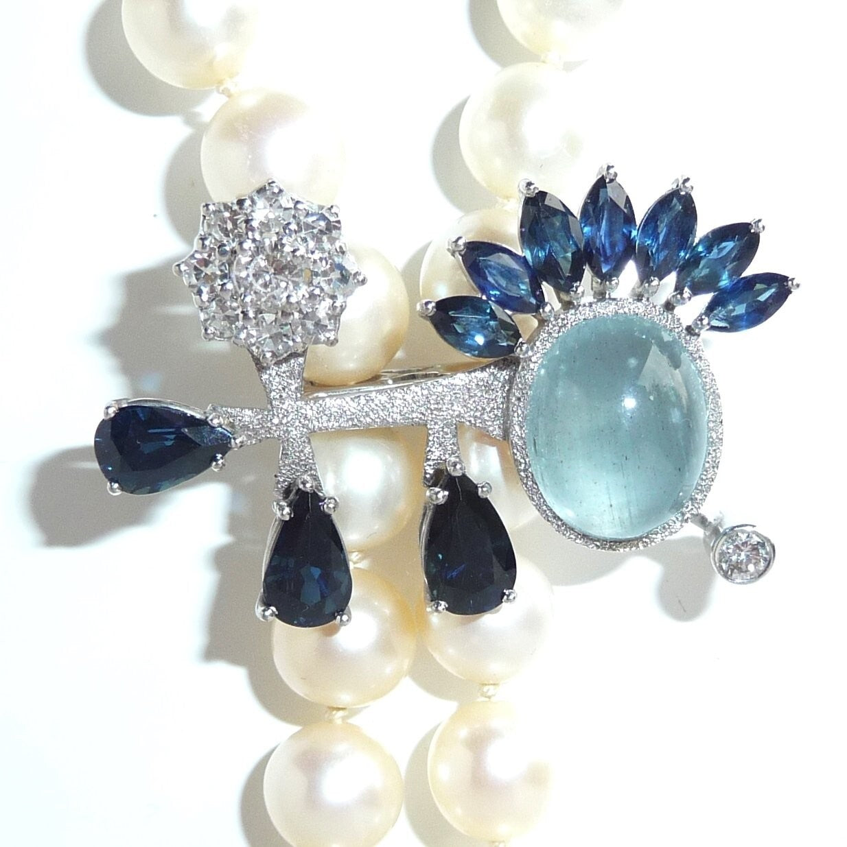Anhänger 750 Weißgold 4.0ct Aquamarin 0.60 ct Diamanten 2.50 ct Saphire 8,9gr