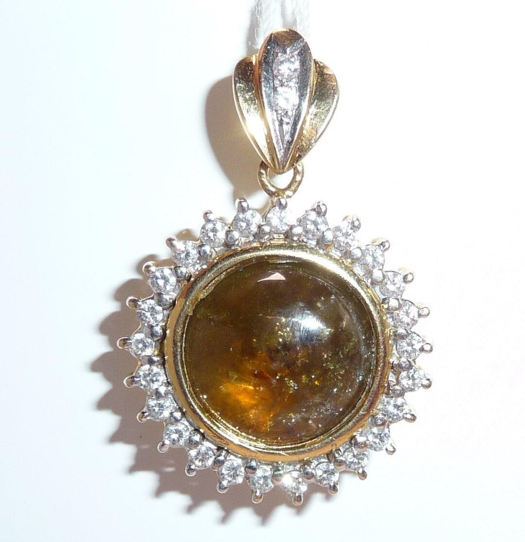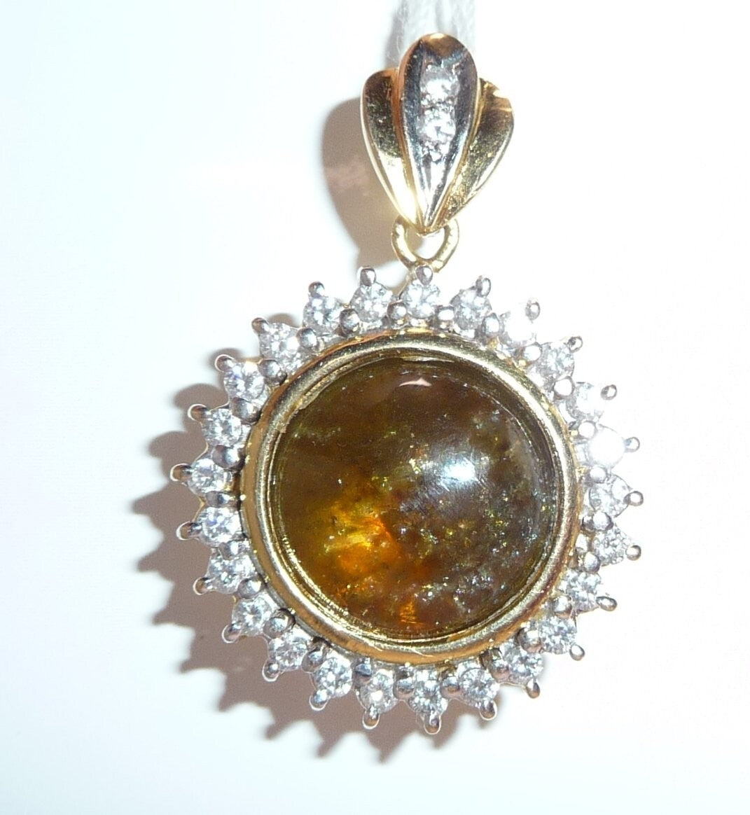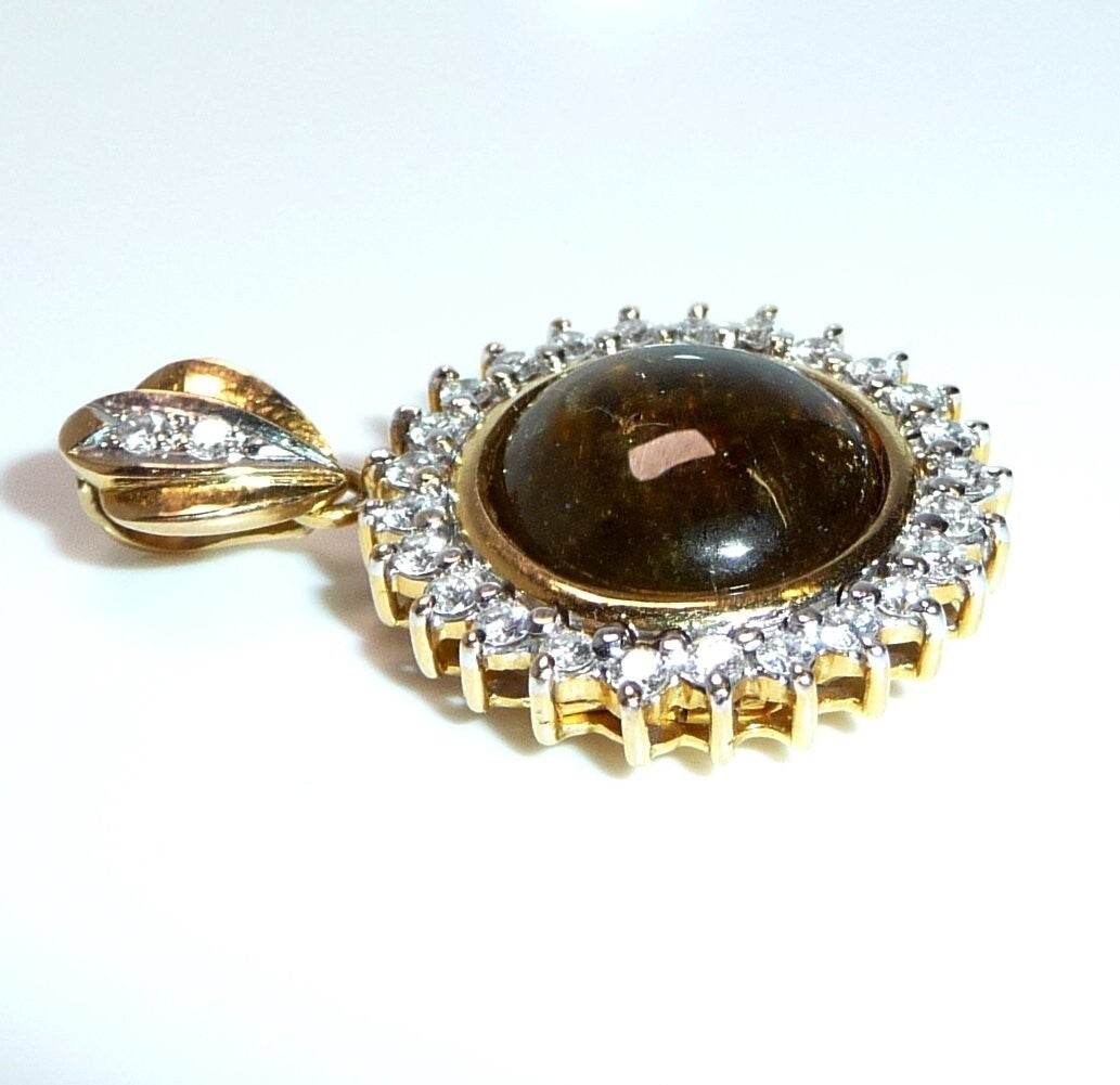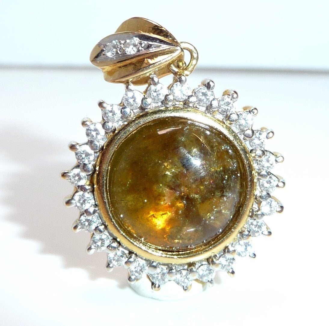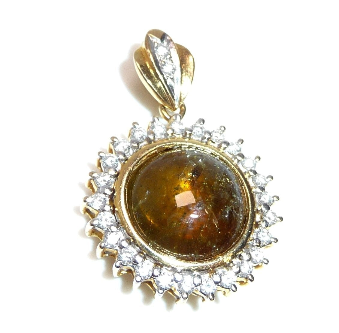 Anhänger Medaillon Turmalin 750 Gelbgold 0.80 ct Diamanten 30,9 mm 7,9 gr
