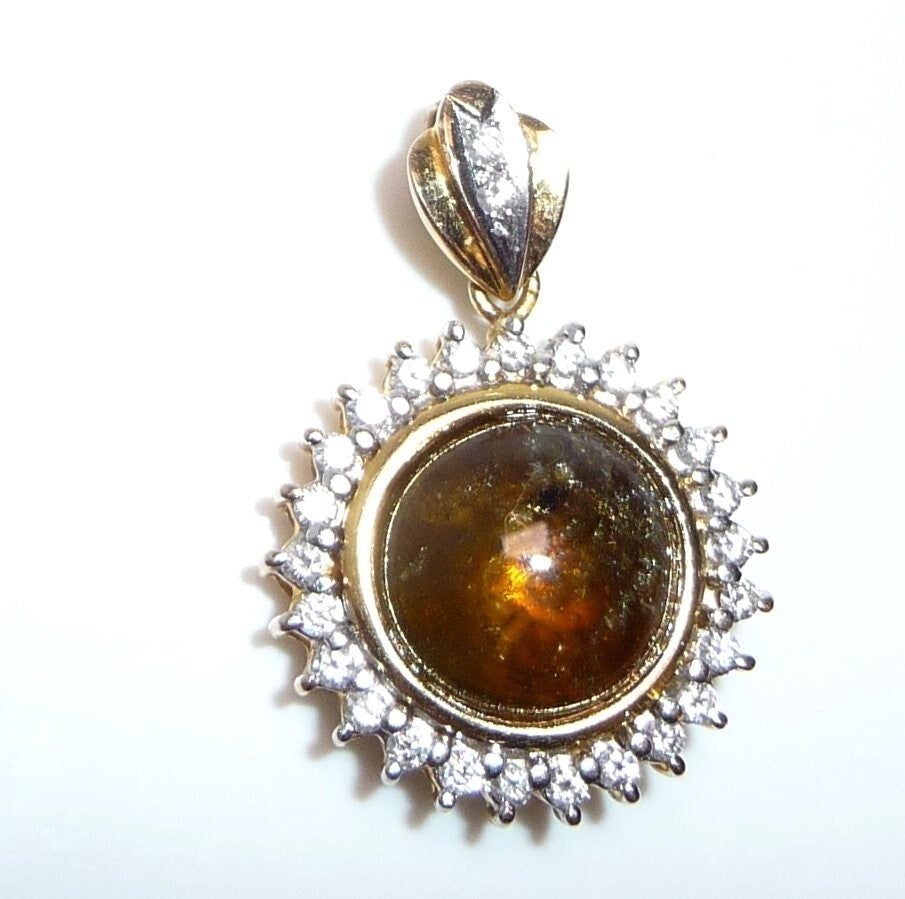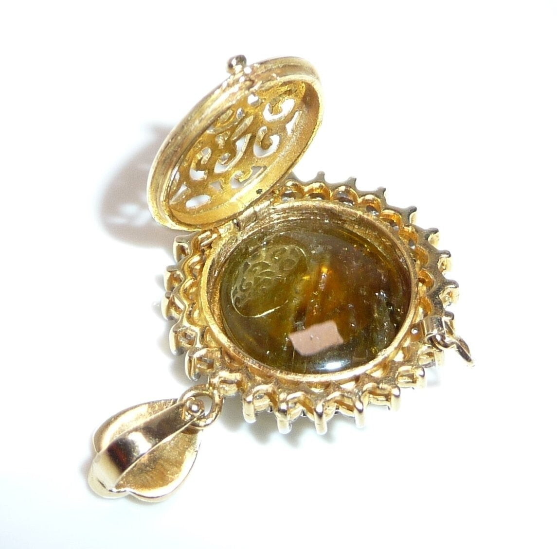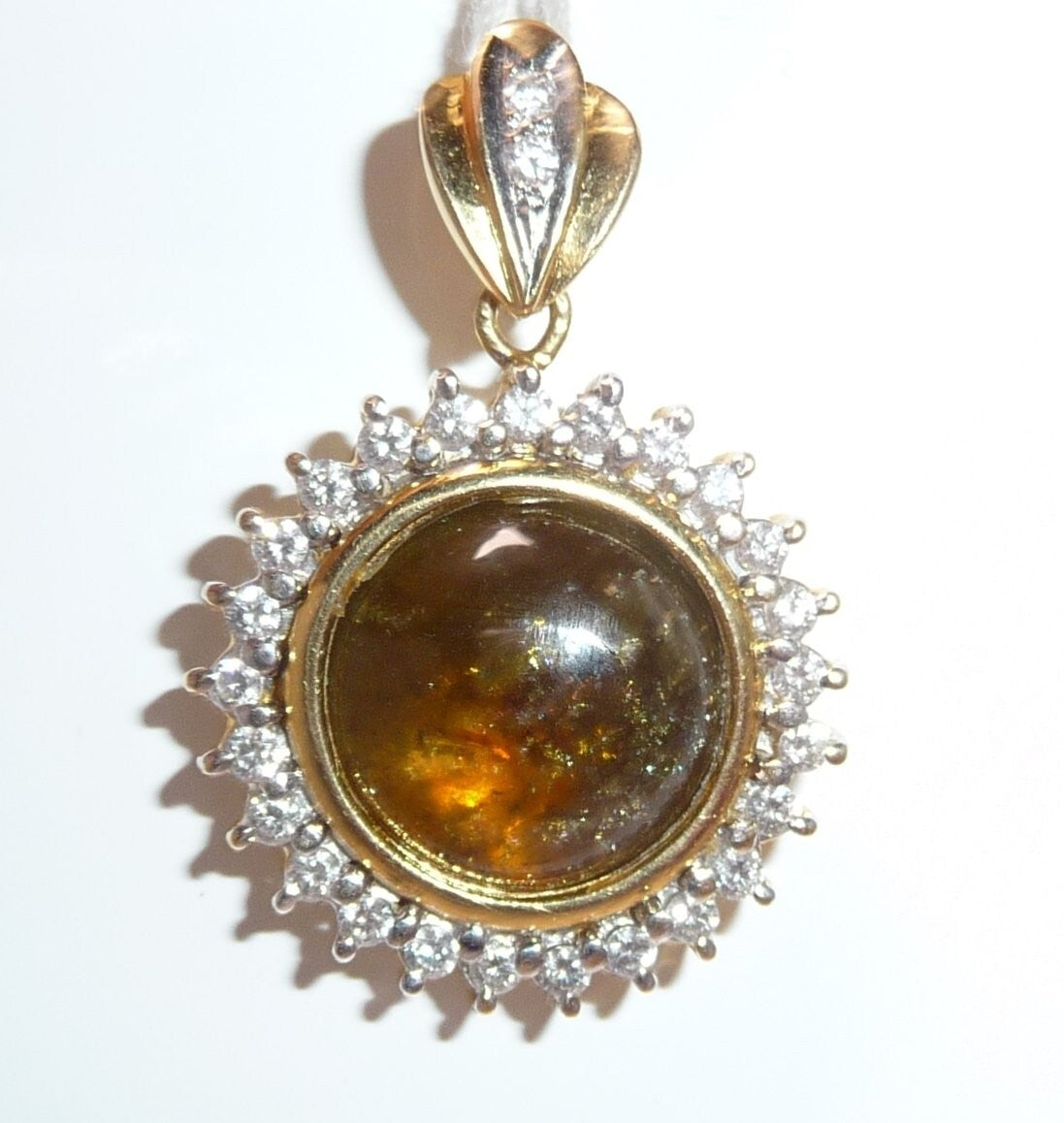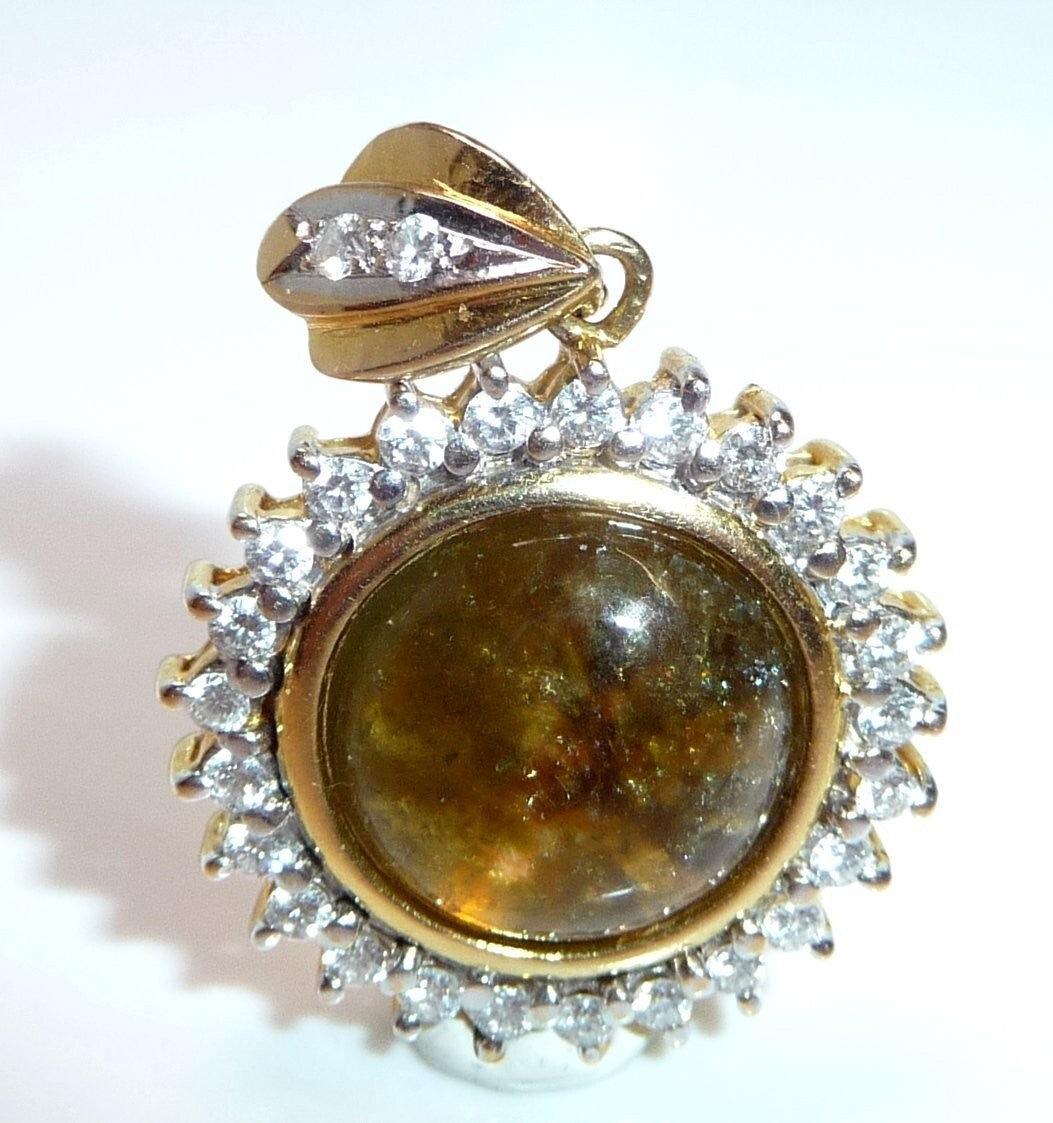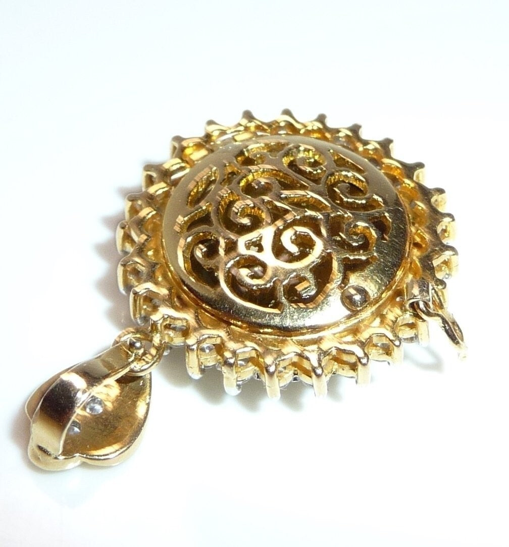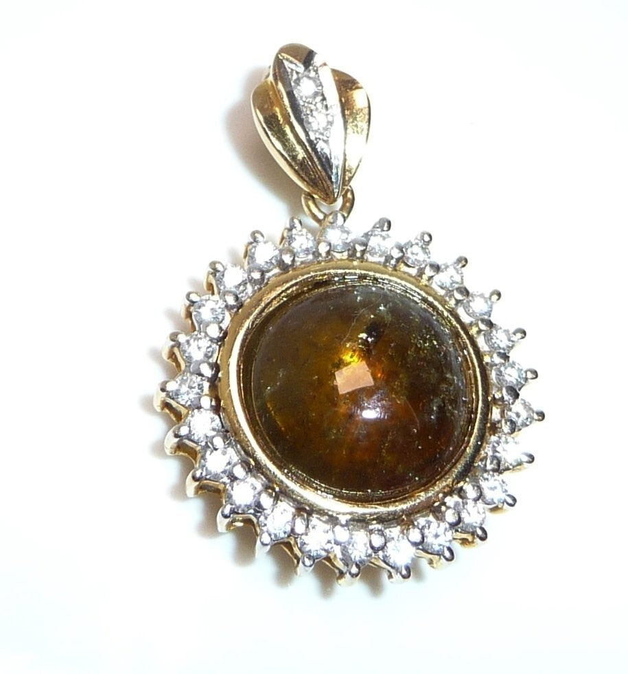 Anhänger Medaillon Turmalin 750 Gelbgold 0.80 ct Diamanten 30,9 mm 7,9 gr
