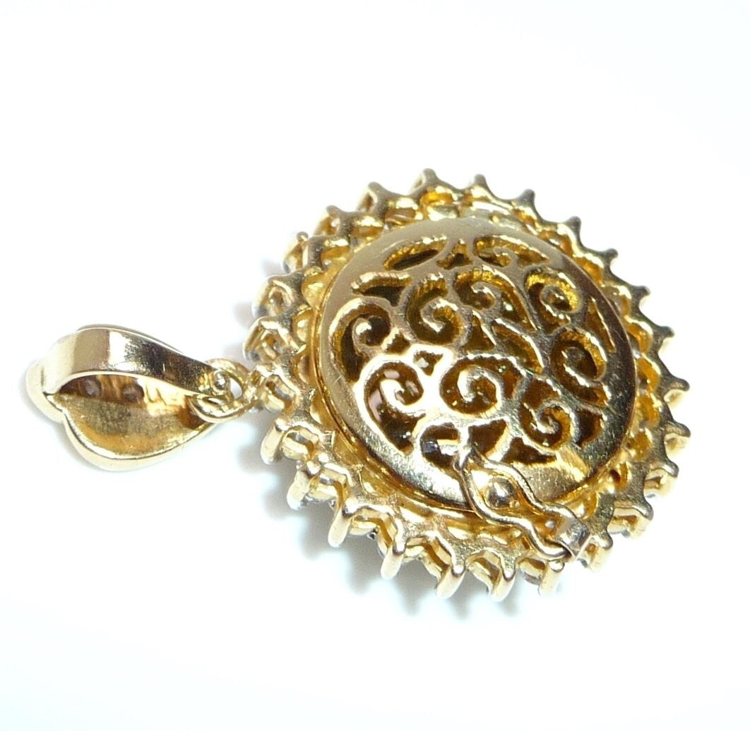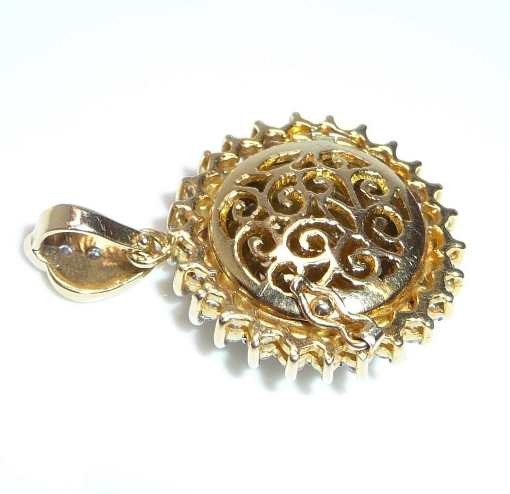 Ein auffälliger und eleganter Anhänger und eine hochwertige Goldschmiede-Arbeit von Hand mit kleinem Geheimnis auf der Rückseite.