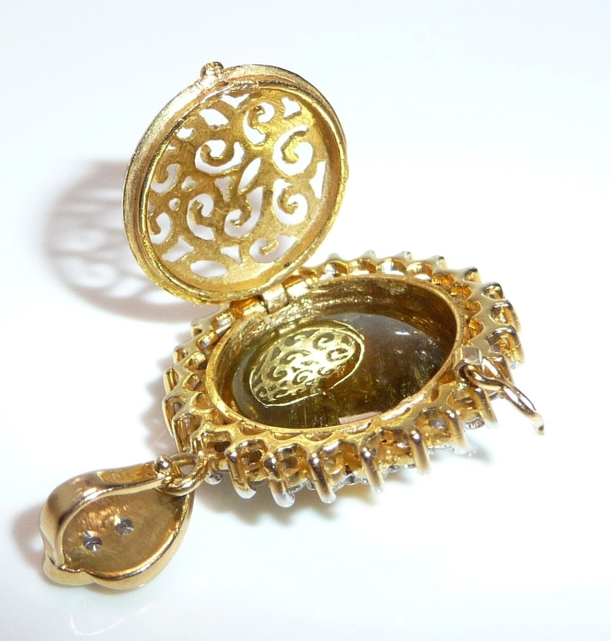 Kreativer Anhänger in 18 kt. / 750 Gelbgold. Der Anhänger ist gleichzeitig auch ein Medaillon: man kann den hinteren Deckel öffnen!!!