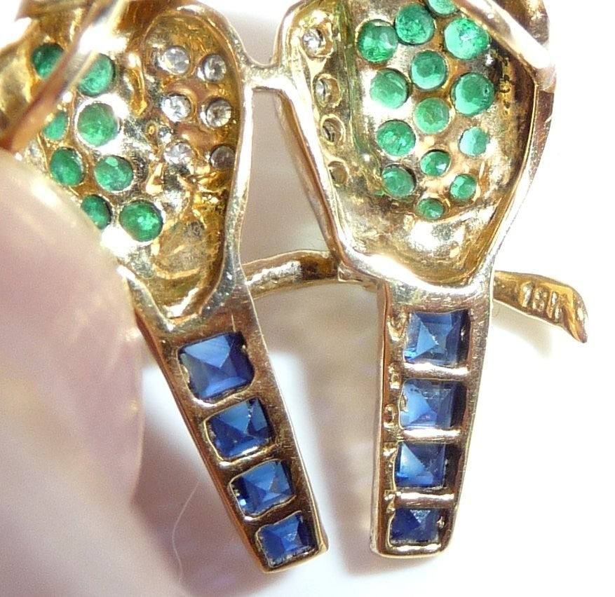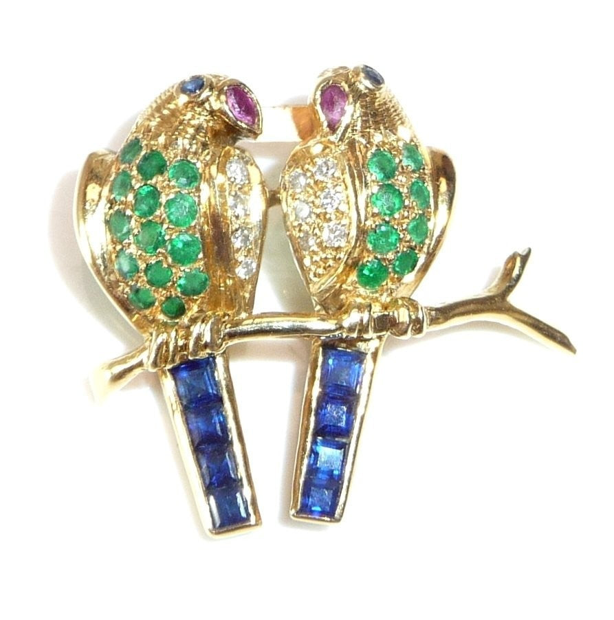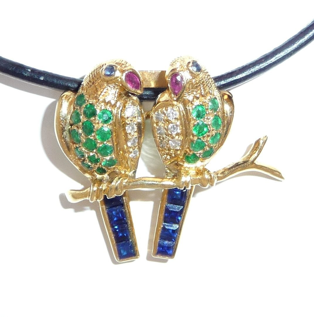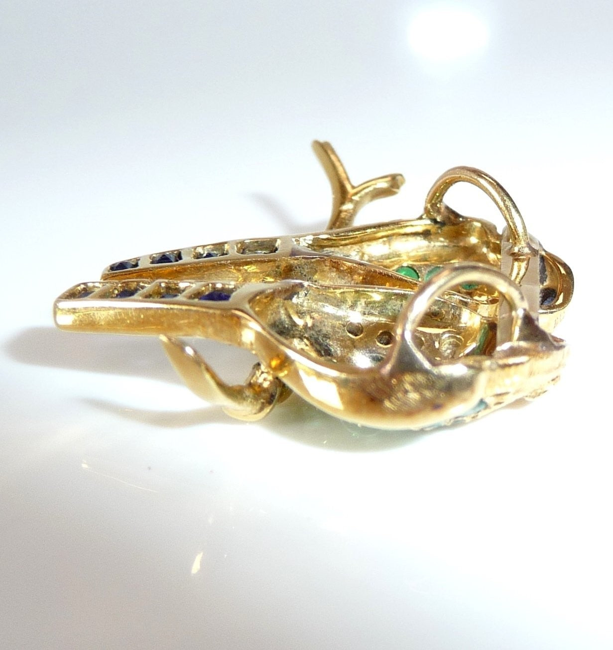 Anhänger Papageien 750 Gelbgold 0.15 ct Diamanten 0.80ct Edelsteine 23,8 mm lang