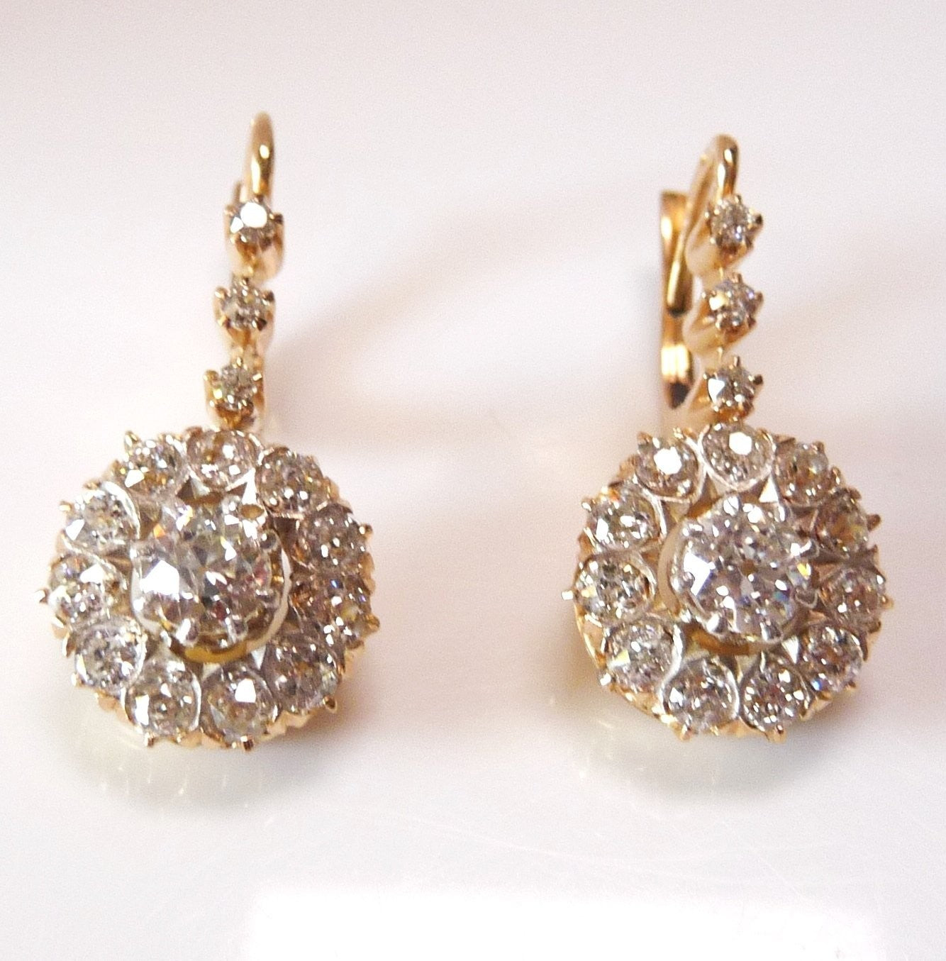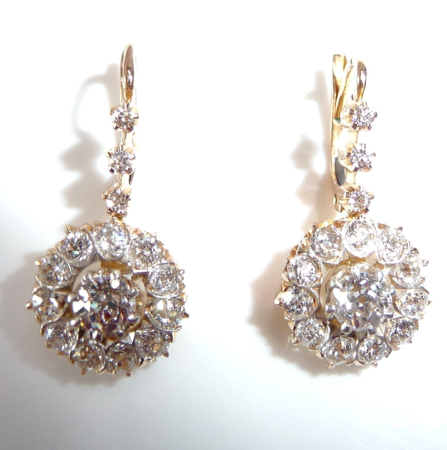 Ohrringe 800 Gelbgold 1.88ct. Diamanten Länge 26,0 mm 5,3gr