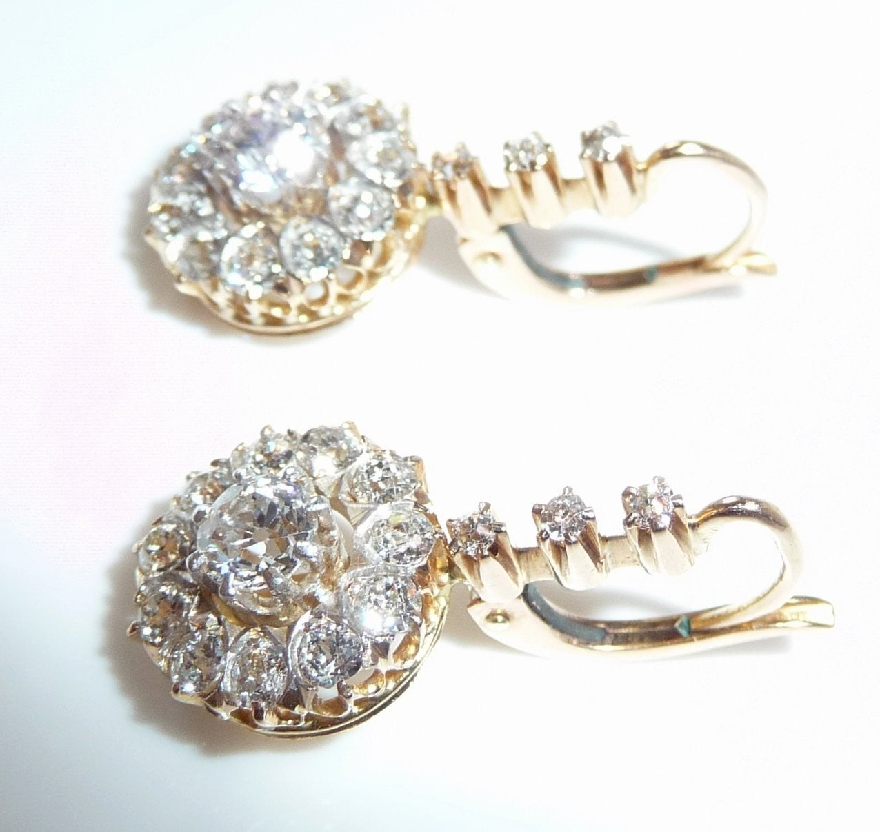 Alle Diamanten sind im antiken Europäischen Schliff. Mit einer guten weißen Farbe G haben die Diamanten eine entsprechend hohe Brillanz.