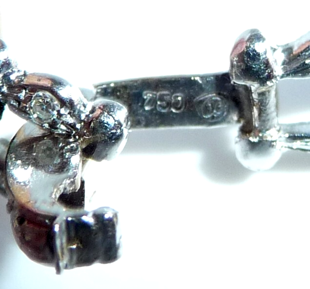 Gepunzt innen auf dem Verschluss mit 750 und der Meistermarke "R" von Rüschenbeck