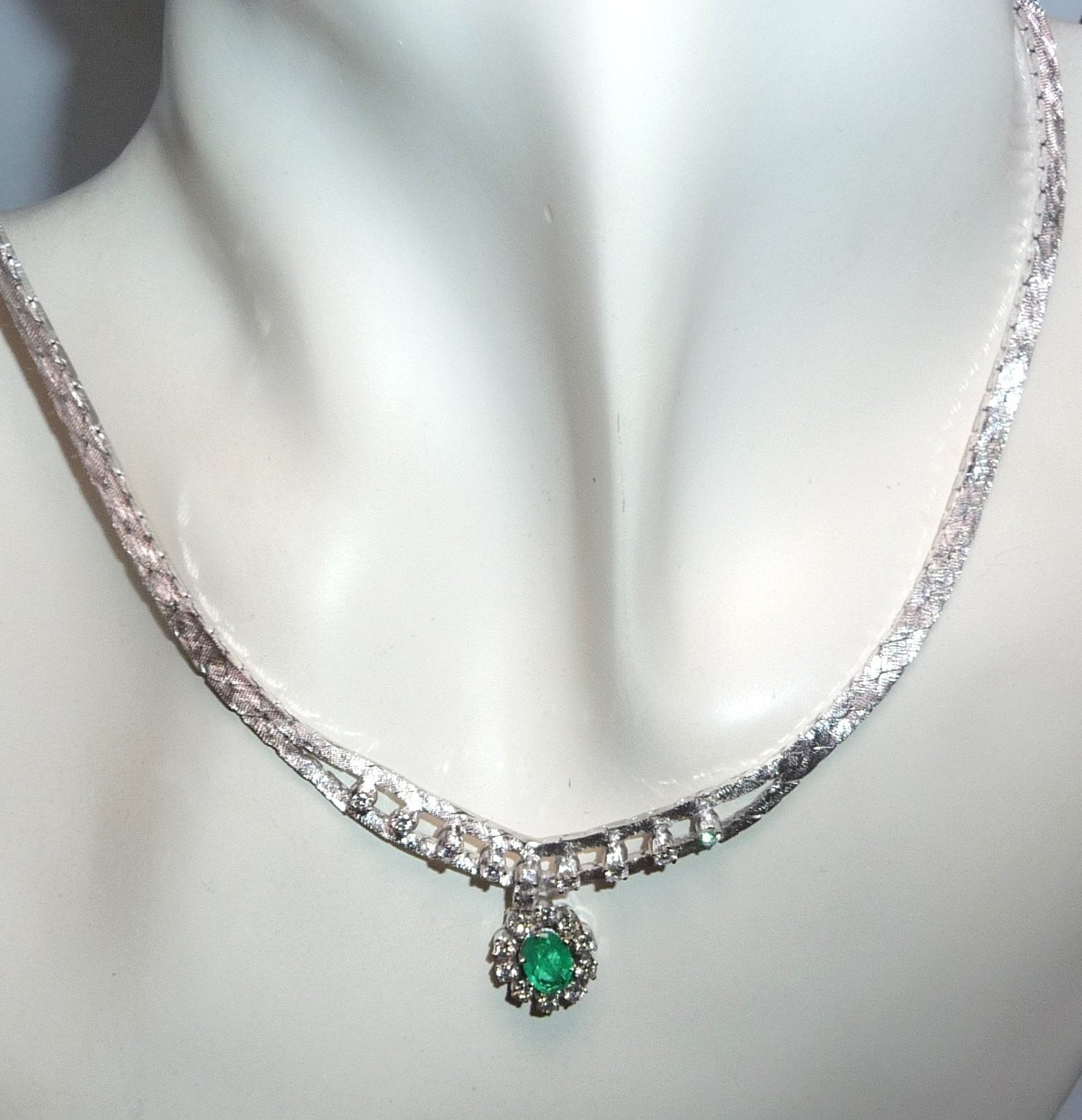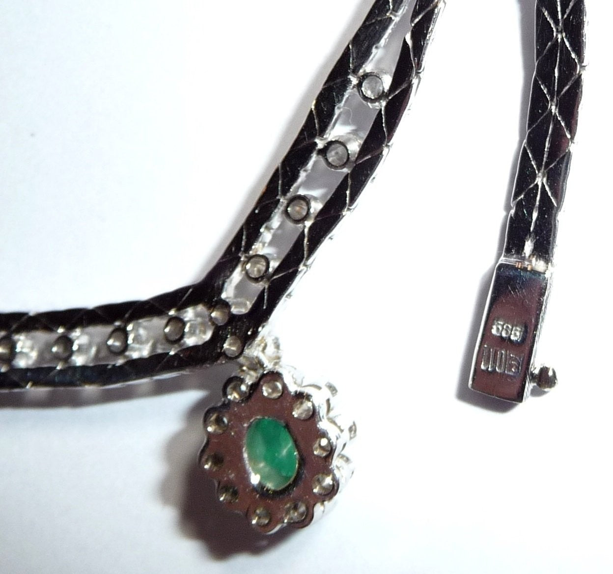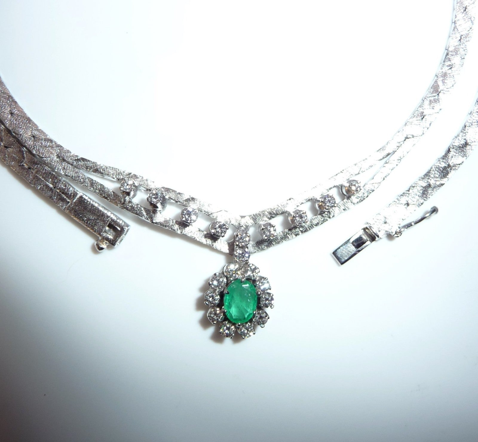Halskette Collier 585 Weißgold 0.70 ct. Diamanten Smaragd 0.40ct 34-44cm 25,8gr