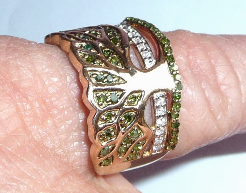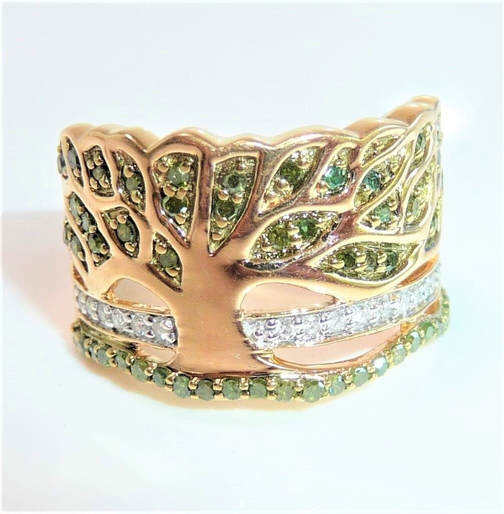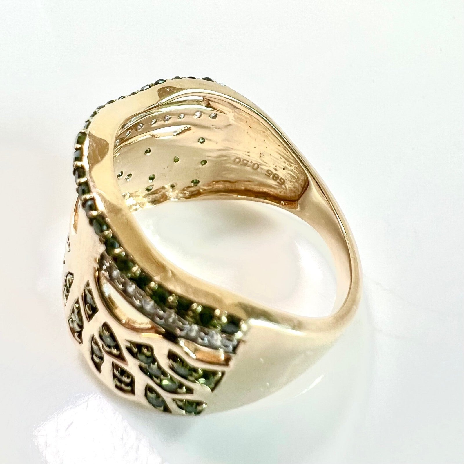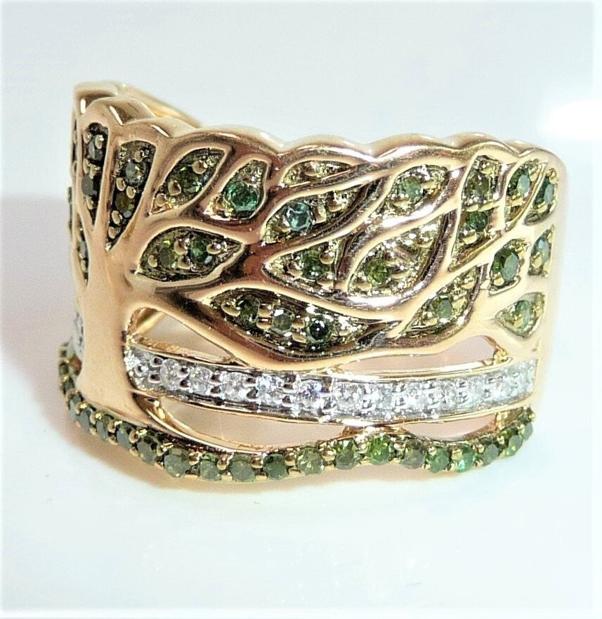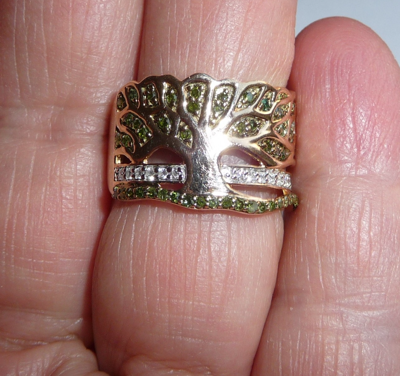 Ring 585 Gold Landschaft mit Baum weiße und grüne Diamanten 54 änderbar