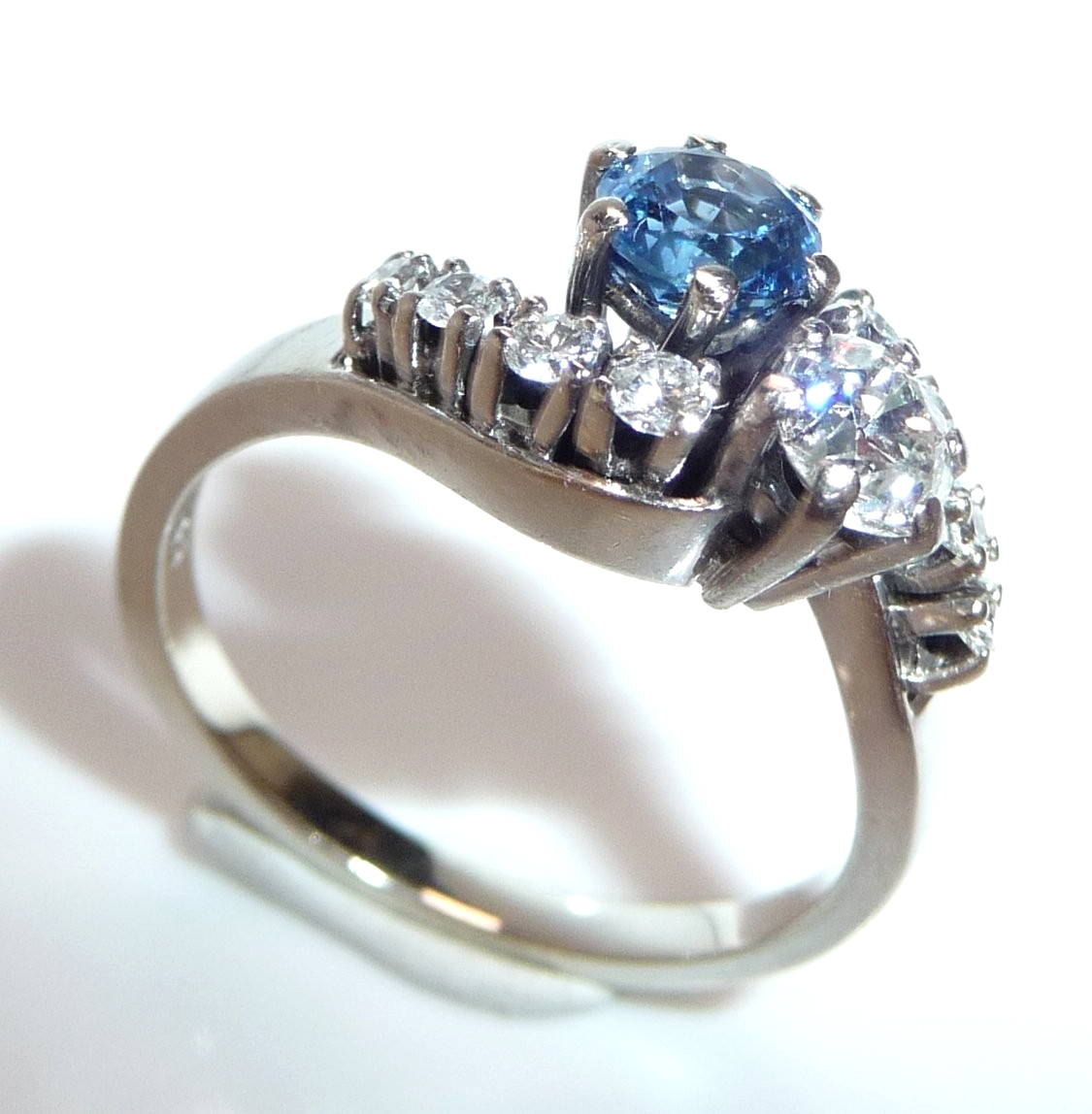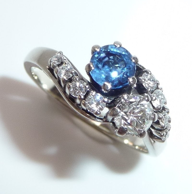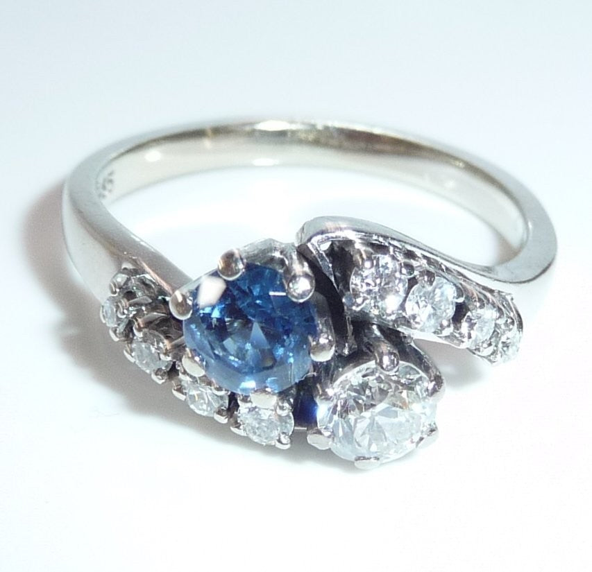 Ring 585 Weißgold 0.64ct Diamanten 0.50ct Saphir 58 / 18,1 mm änderbar 5,2gr