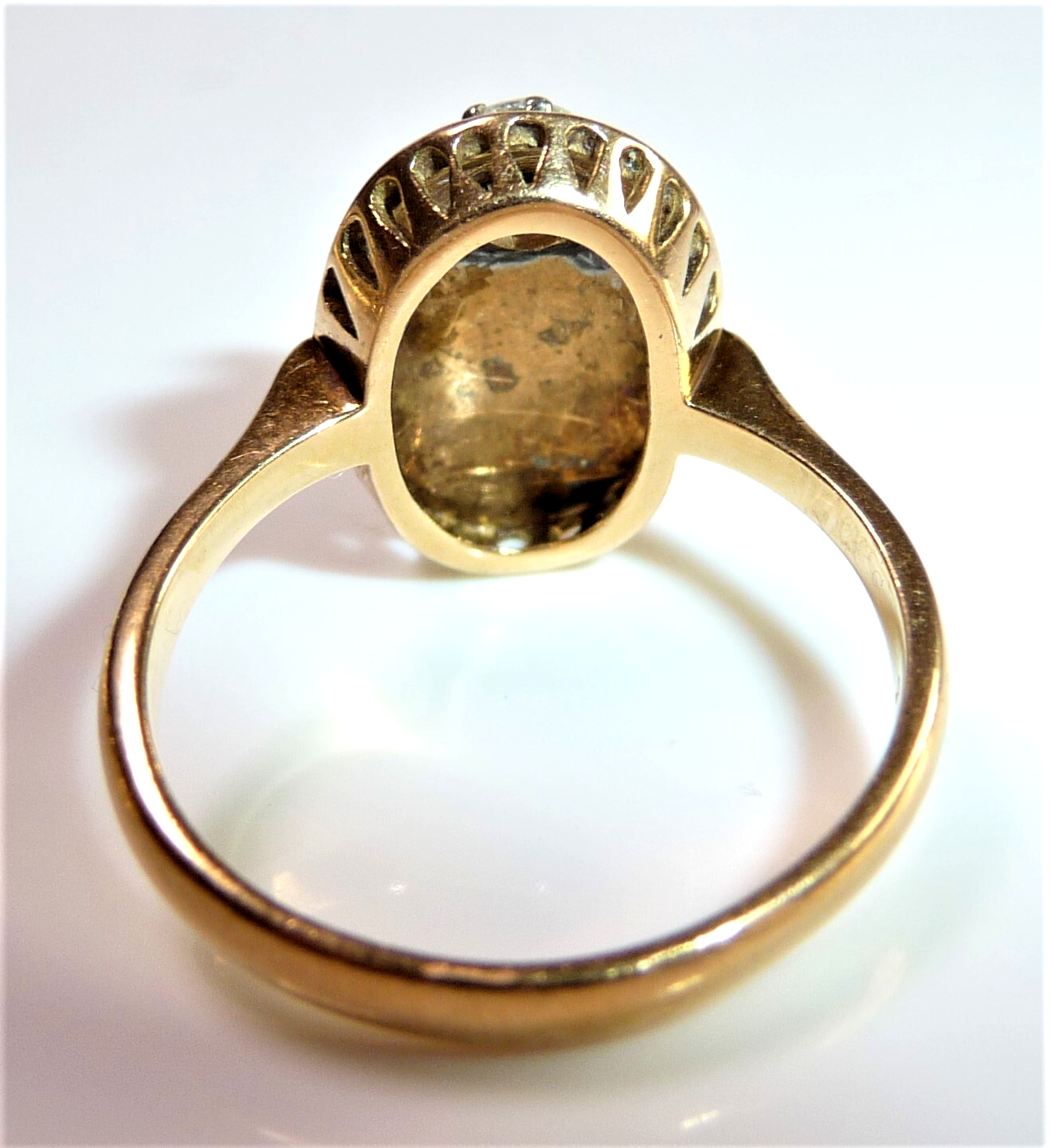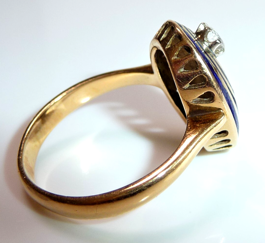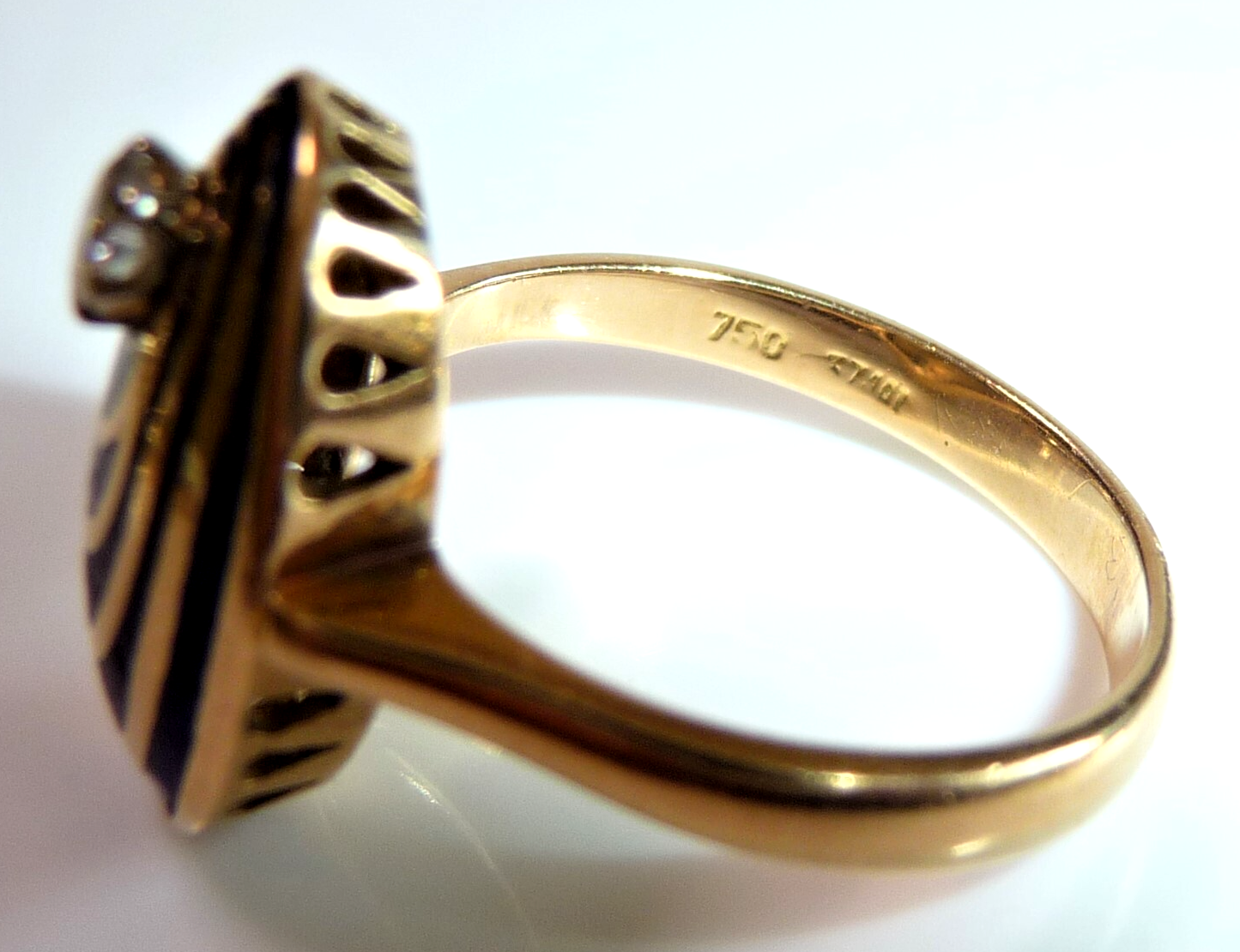 Ring 750 Gold 0.15 ct Diamant/Altschliff + Emaille Größe: 54-55 / 17,2 -17,4 mm