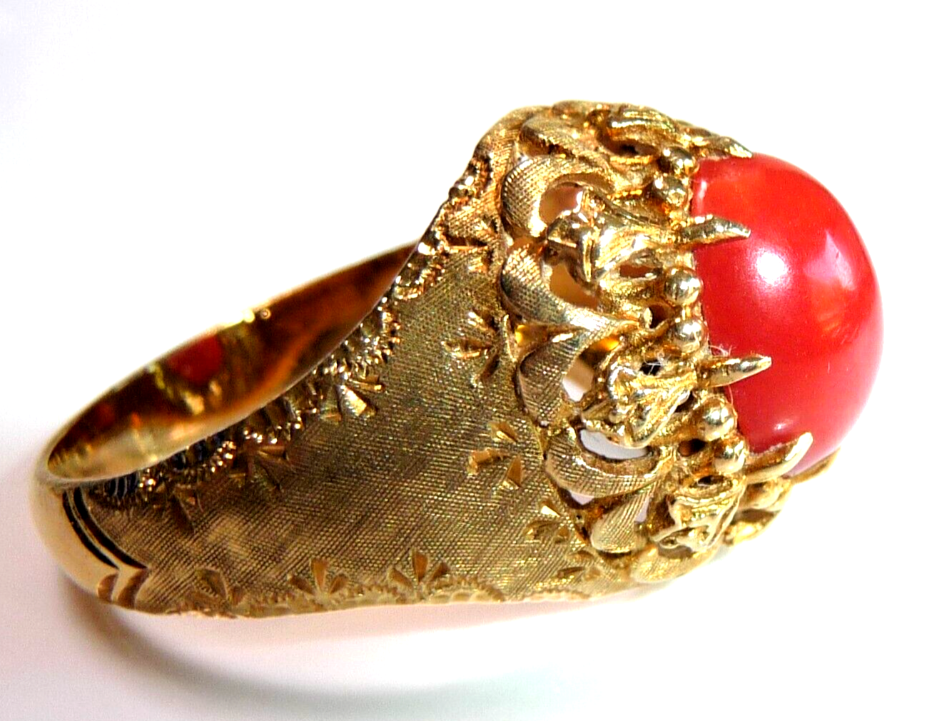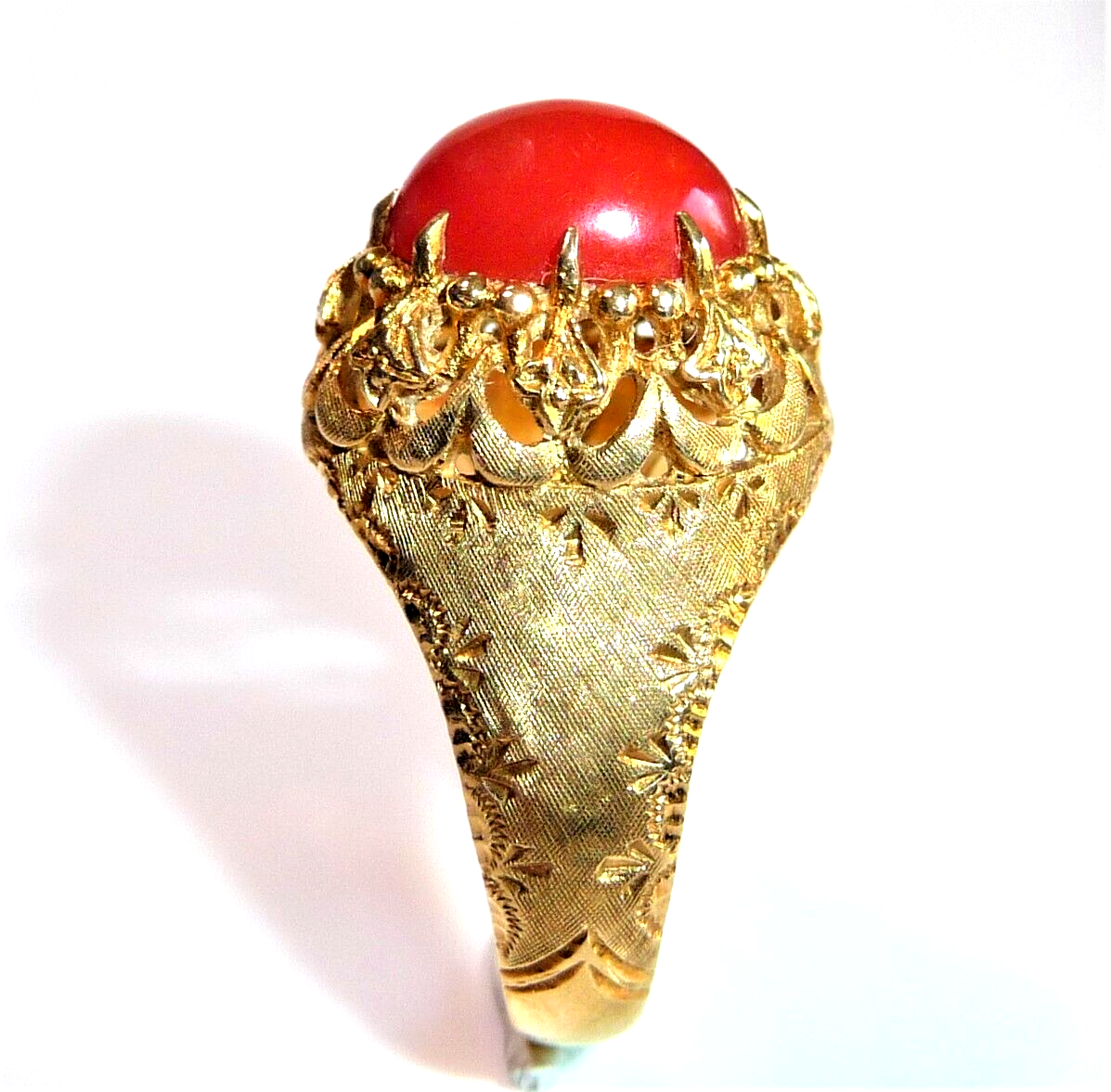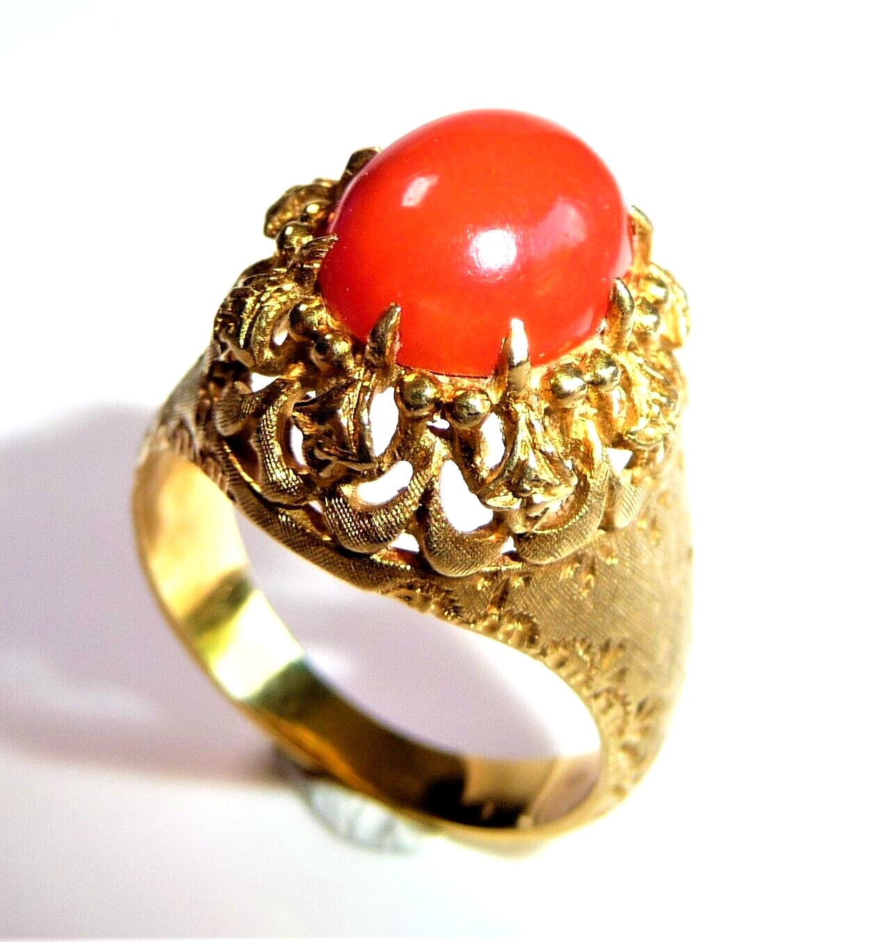 Ring 750 Gold 1.00 ct Rot-Koralle Gr 55 / 17,5 mm änderbar 6,8 g Handarbeit