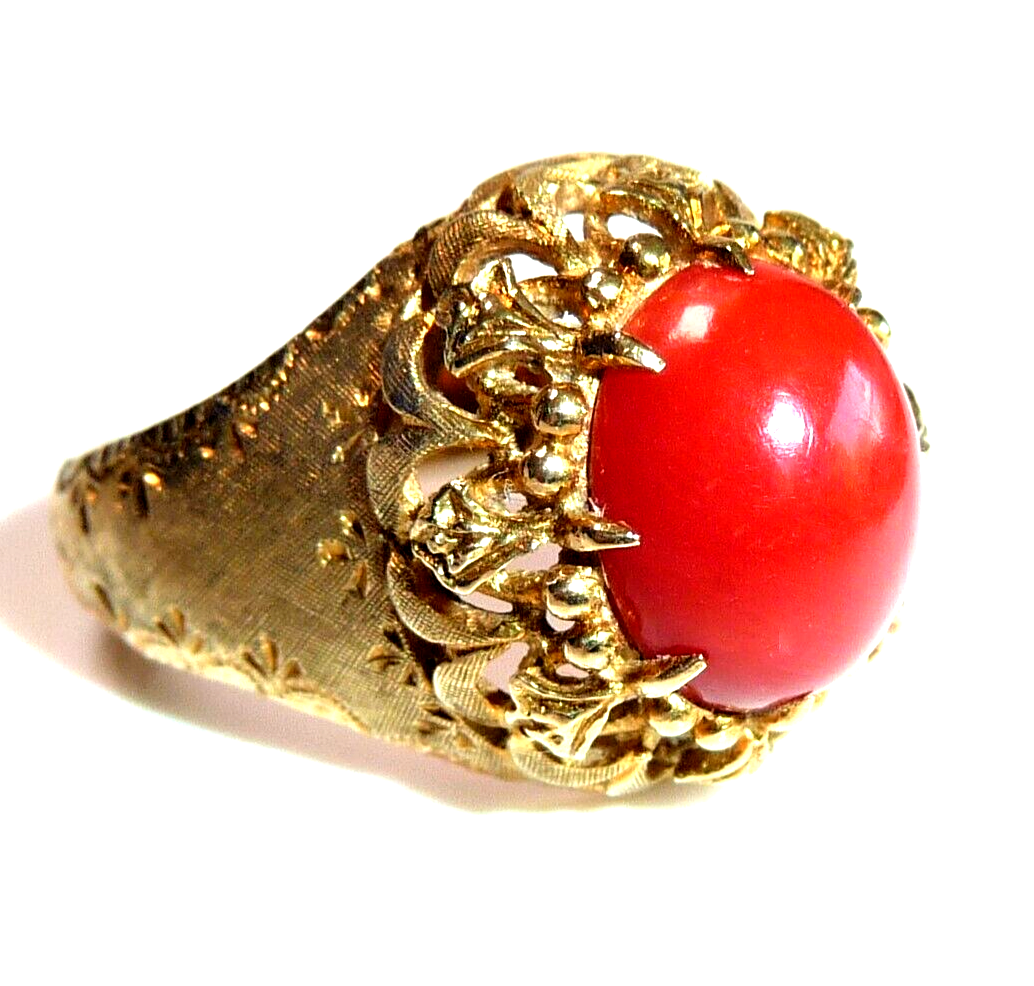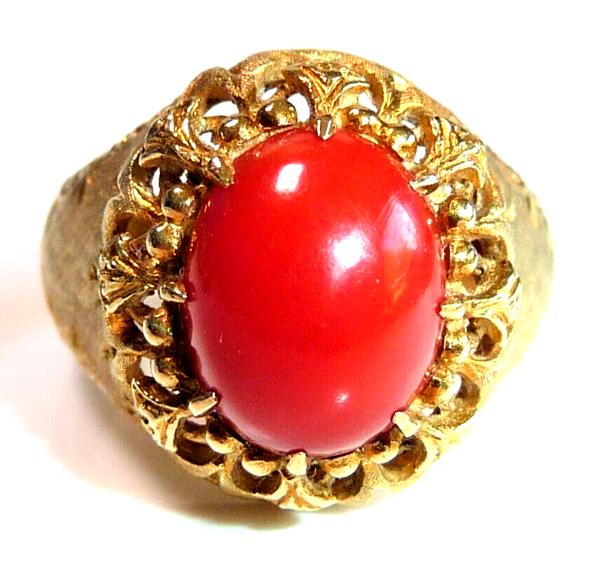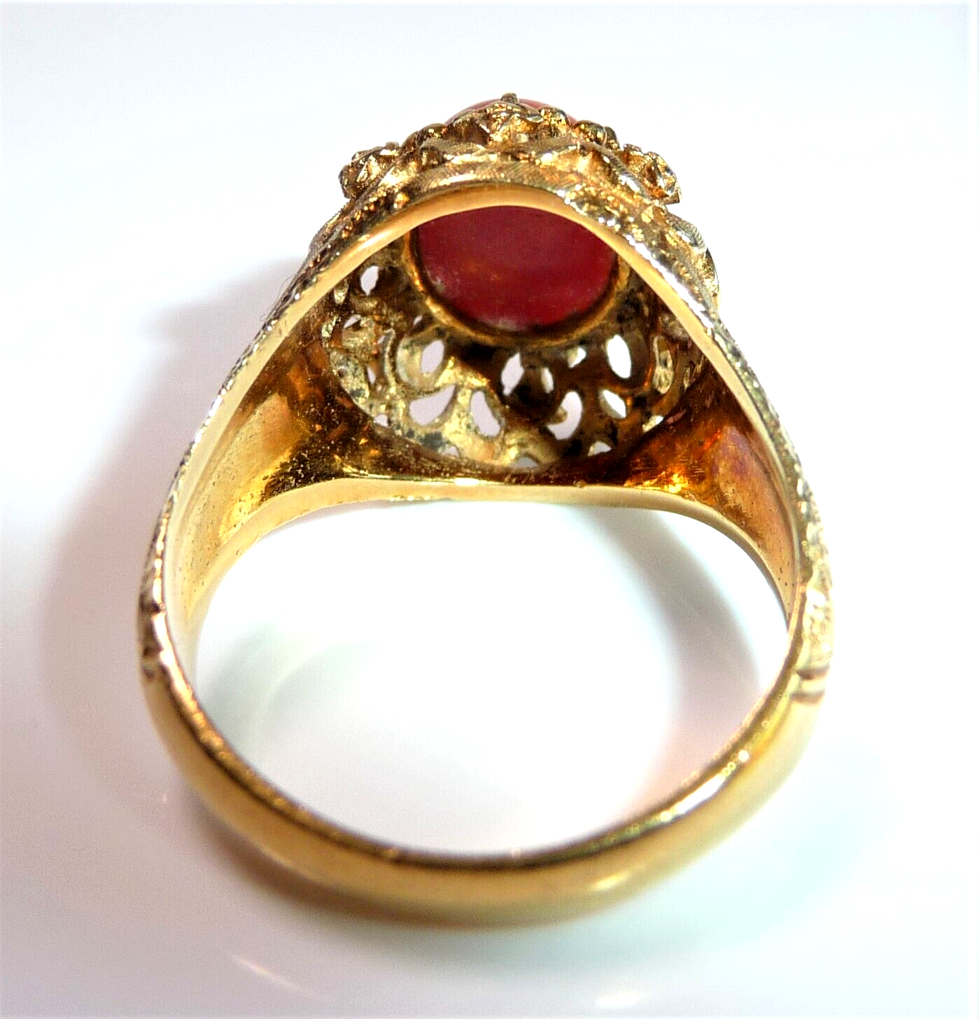 Ring 750 Gold 1.00 ct Rot-Koralle Gr 55 / 17,5 mm änderbar 6,8 g Handarbeit