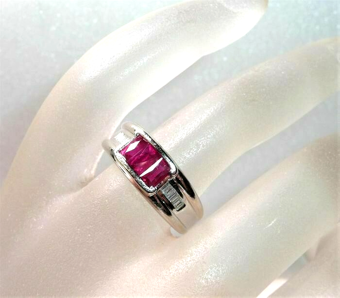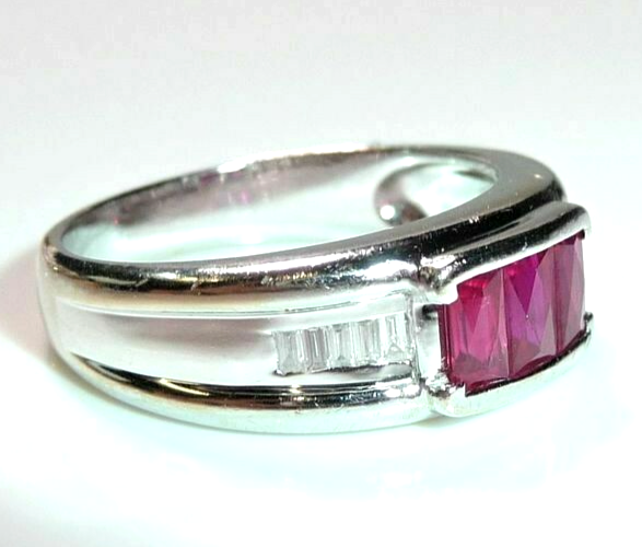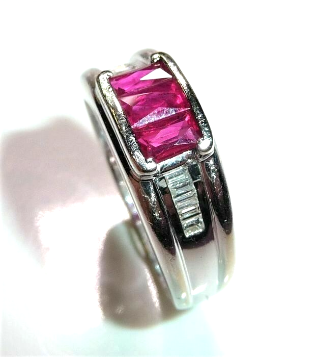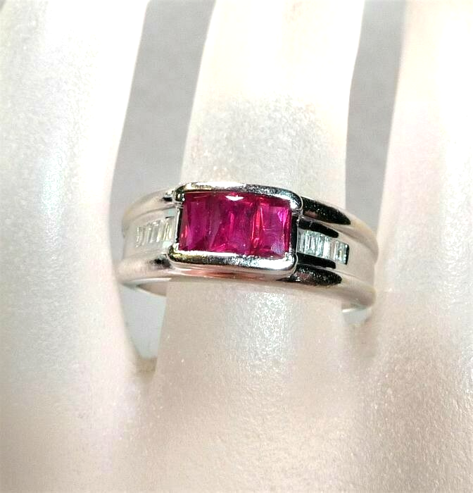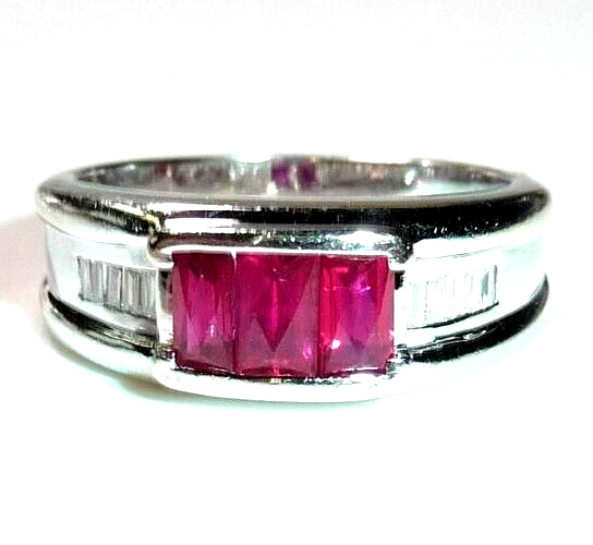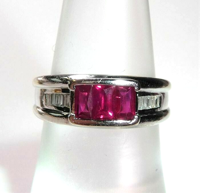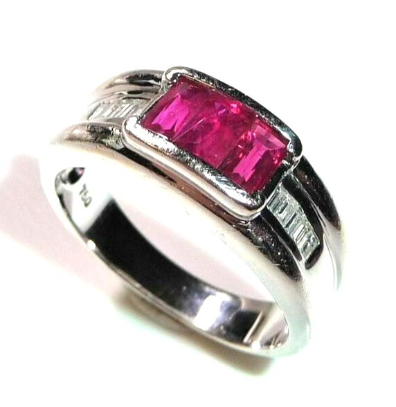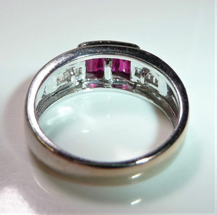 Ring 750 Gold 1.20 ct Rubine 0.70 ct. Baguette-Diamanten Weißgold 5,5g Gr. 53-54