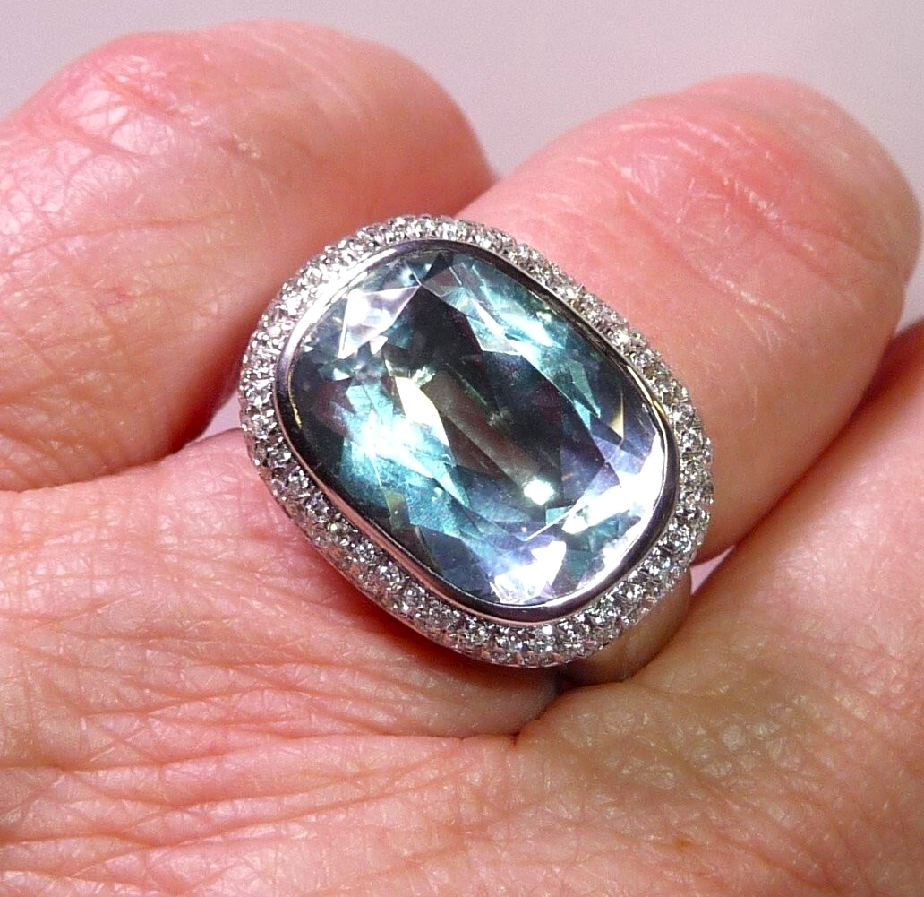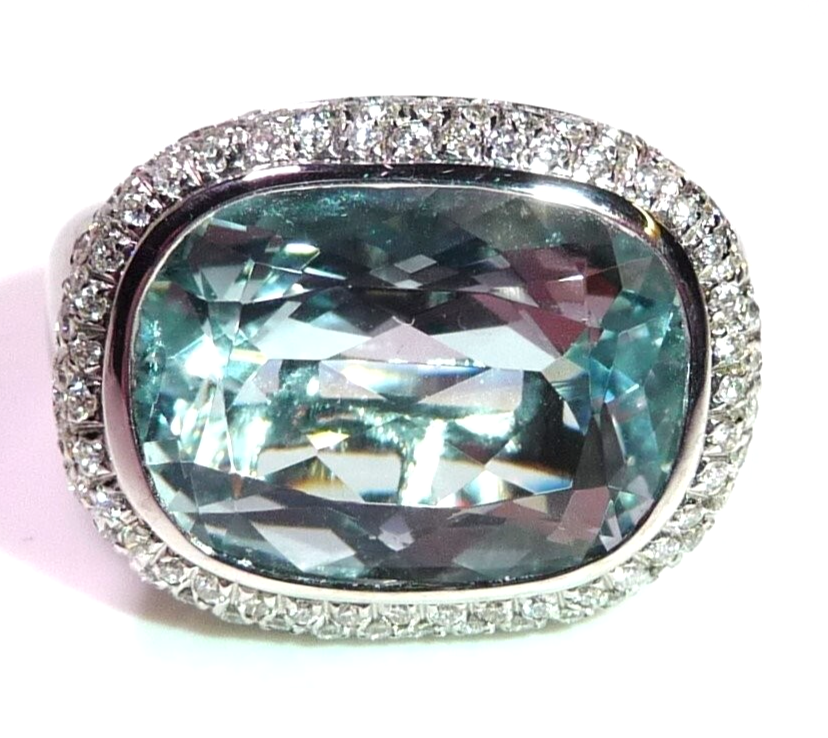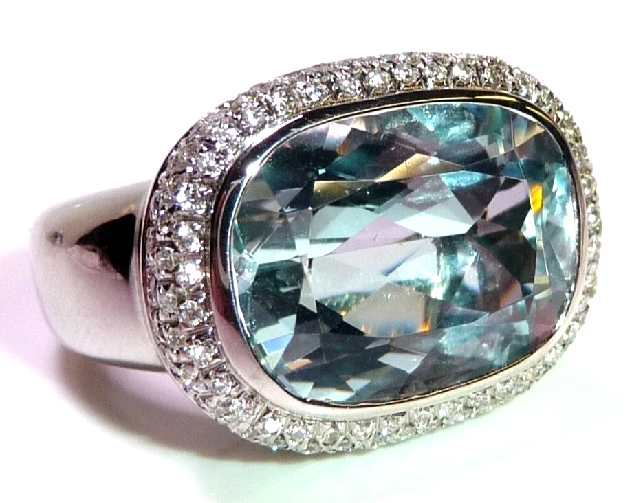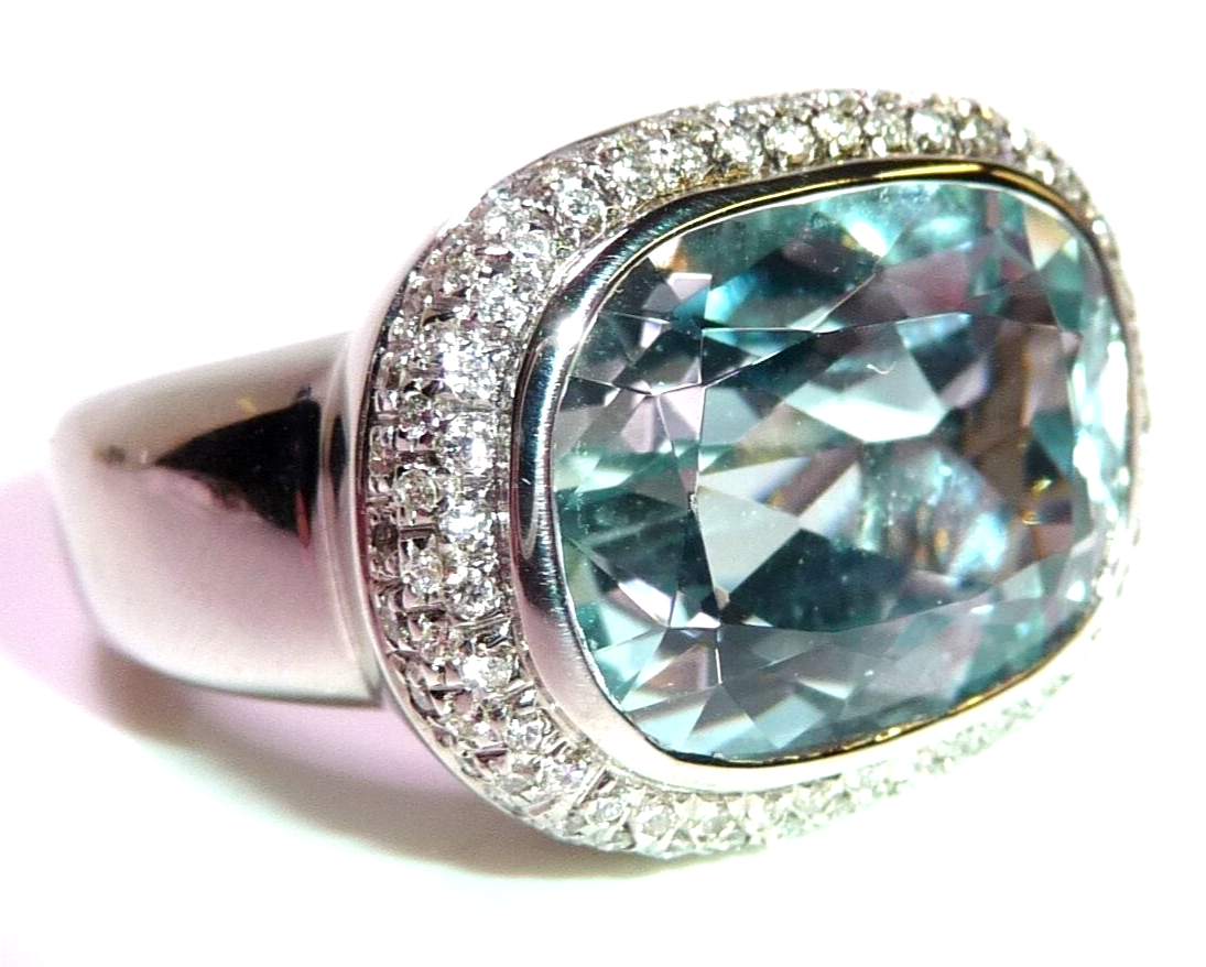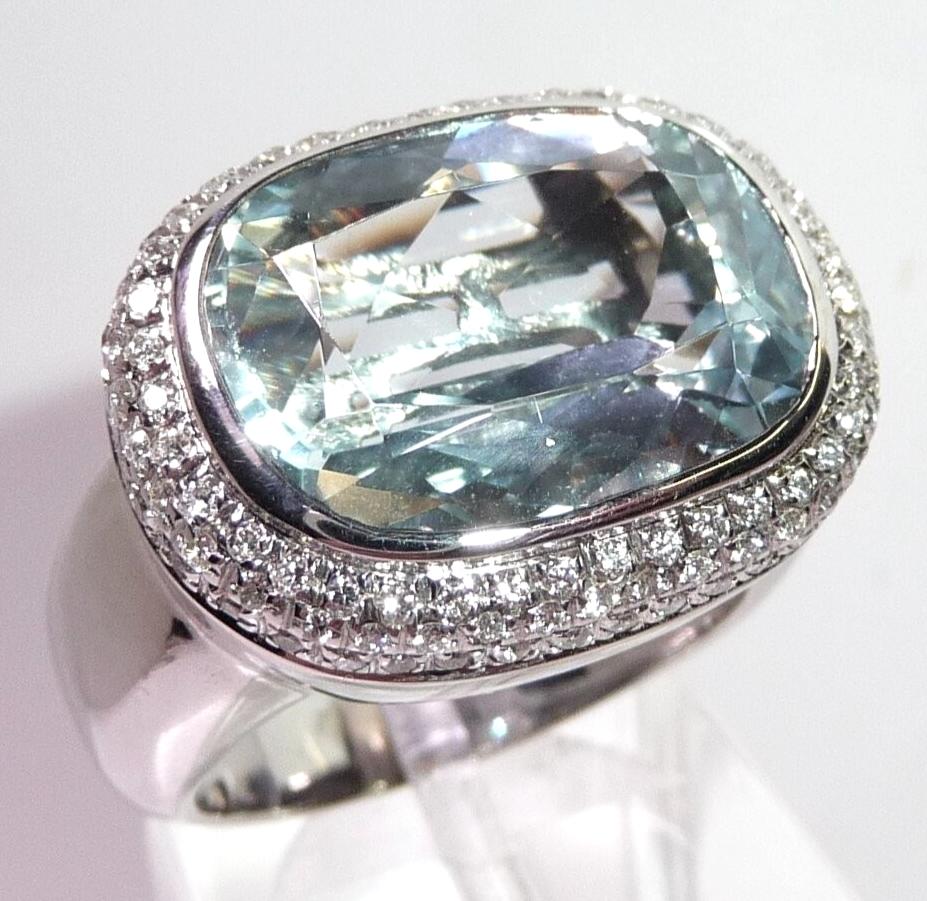 Ring 750 Gold 8.50 ct Aquamarin 1.20 ct. Diamanten Gr: 55 - änderbar 14g