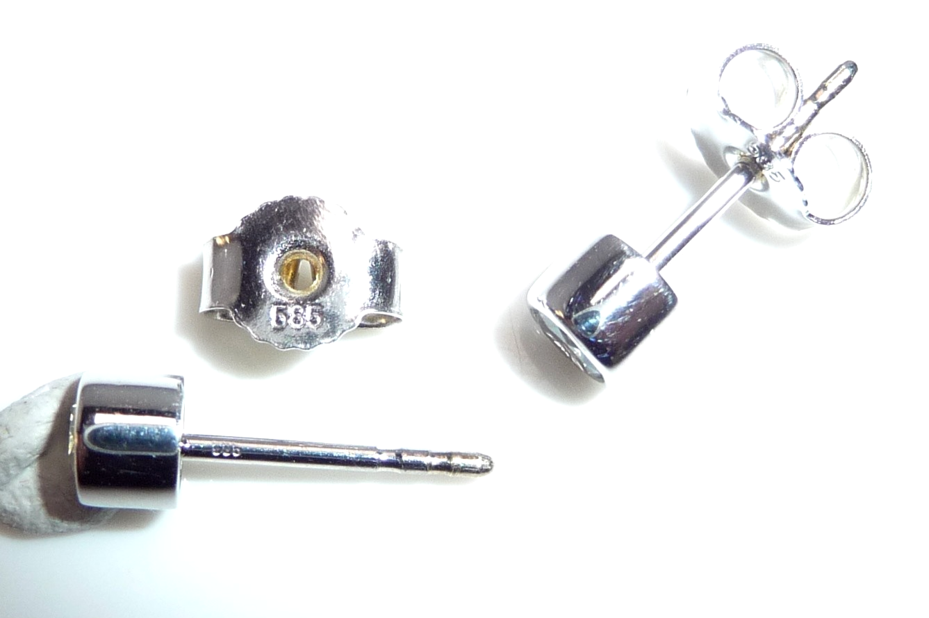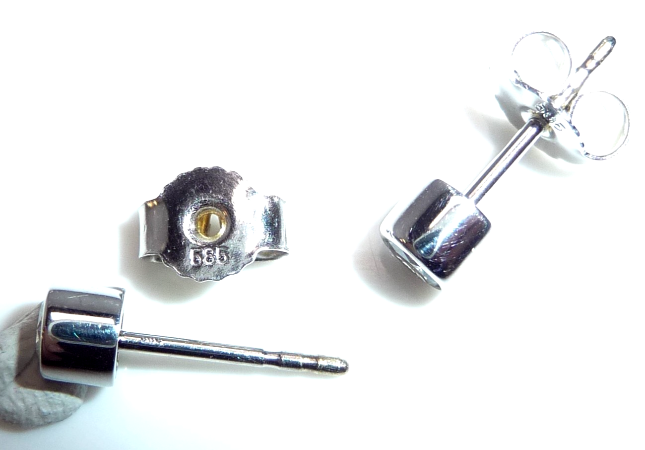 Gepunzt mit 585 direkt auf dem Stift und auf den Ohr-Stoppern.