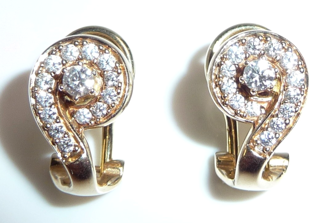 Ohrringe 585 Gold 0.40ct Brillanten Clips mit Stecker modernes Design 4,7g