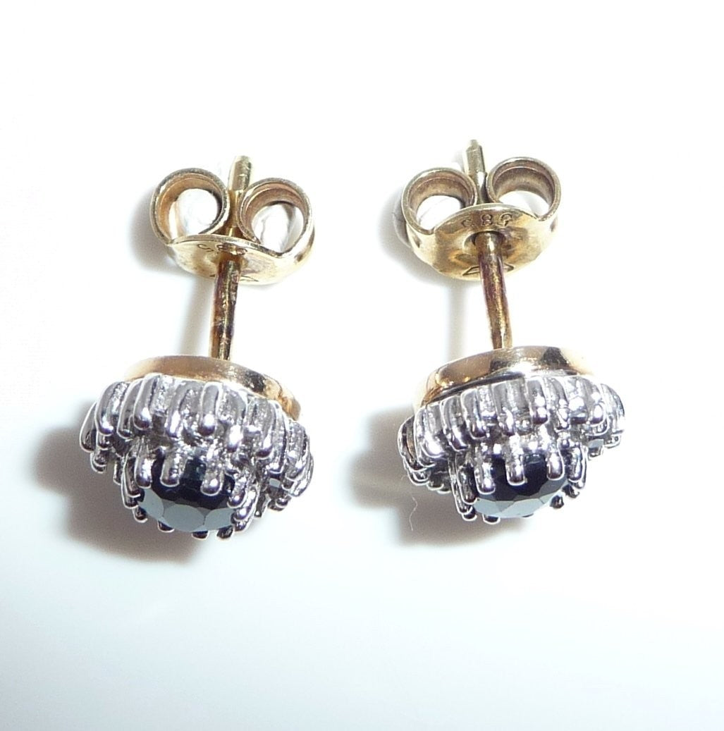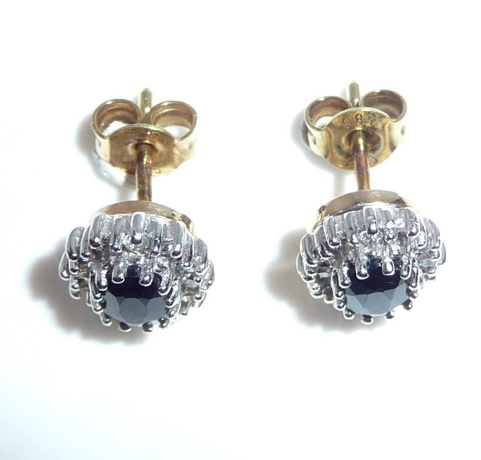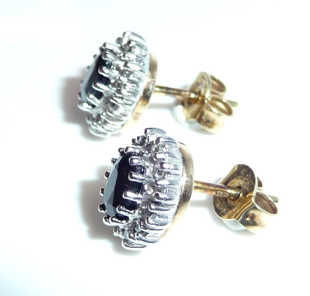 Ohrringe 585 Weißgold, Gelbgold 0.48ct Diamanten 1.0ct Saphire 8,8 mm breit 3,9g