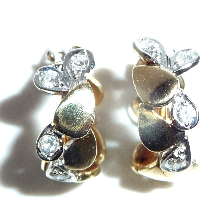 Ohrringe Creolen aus Blättern 585 Gold 0.40ct. tw. Diamanten 17,2 mm 8,0gr