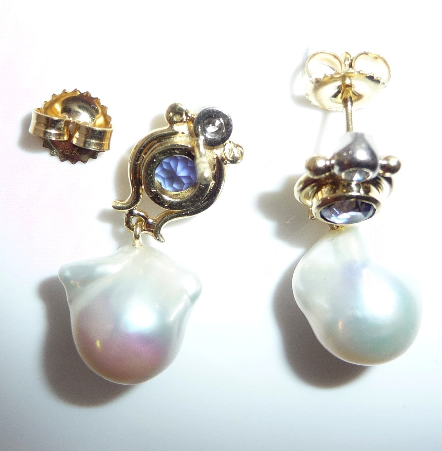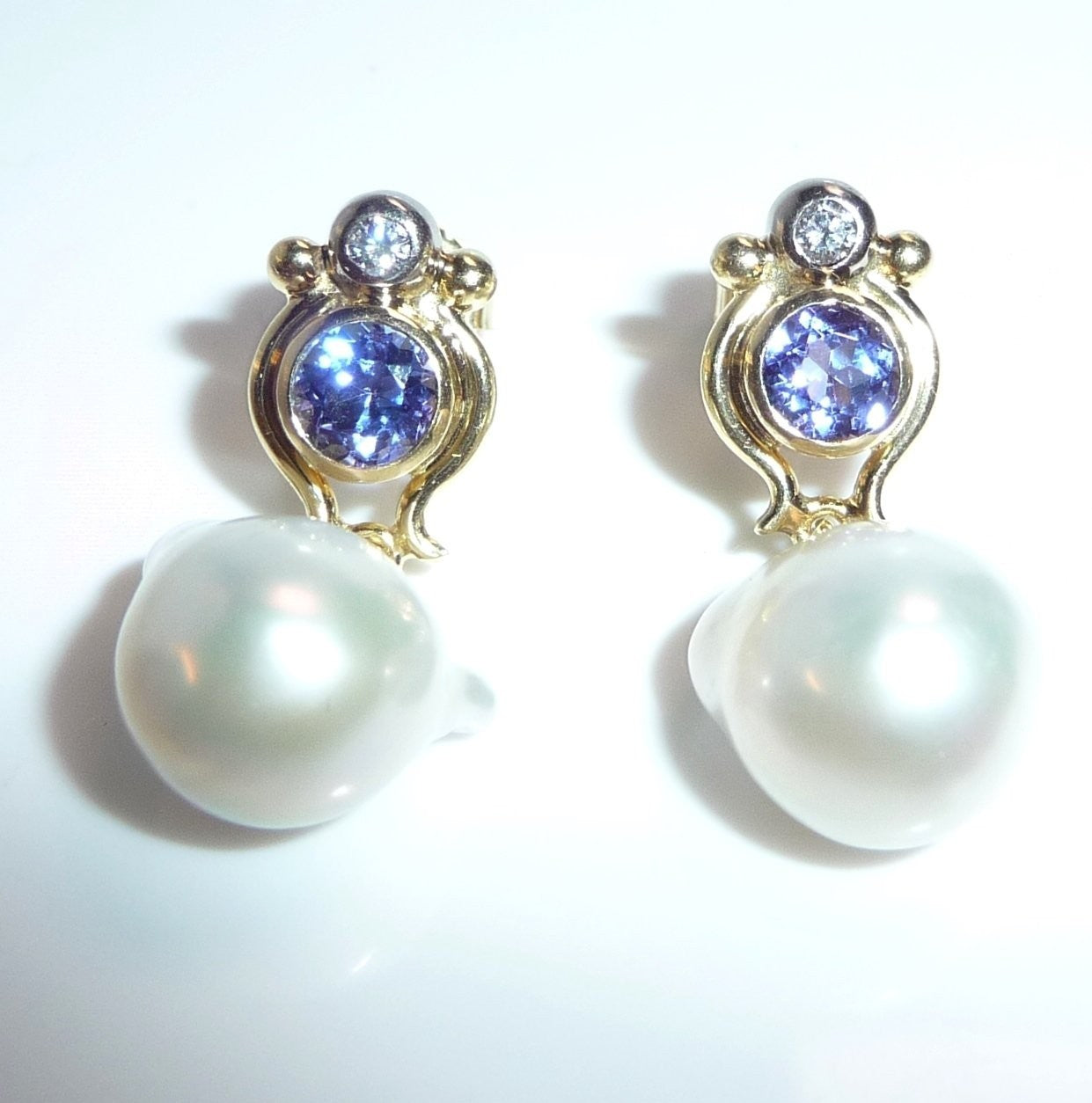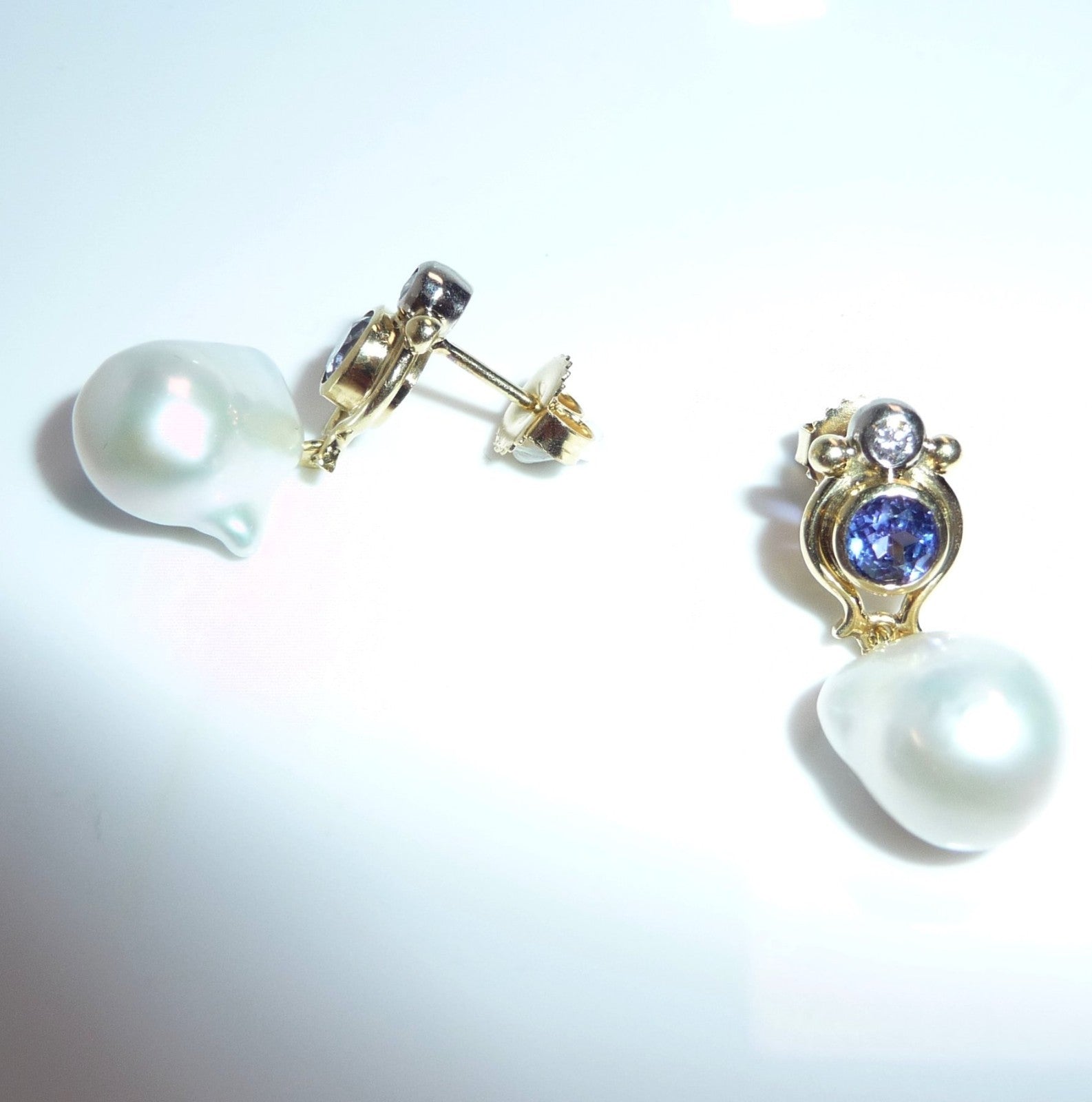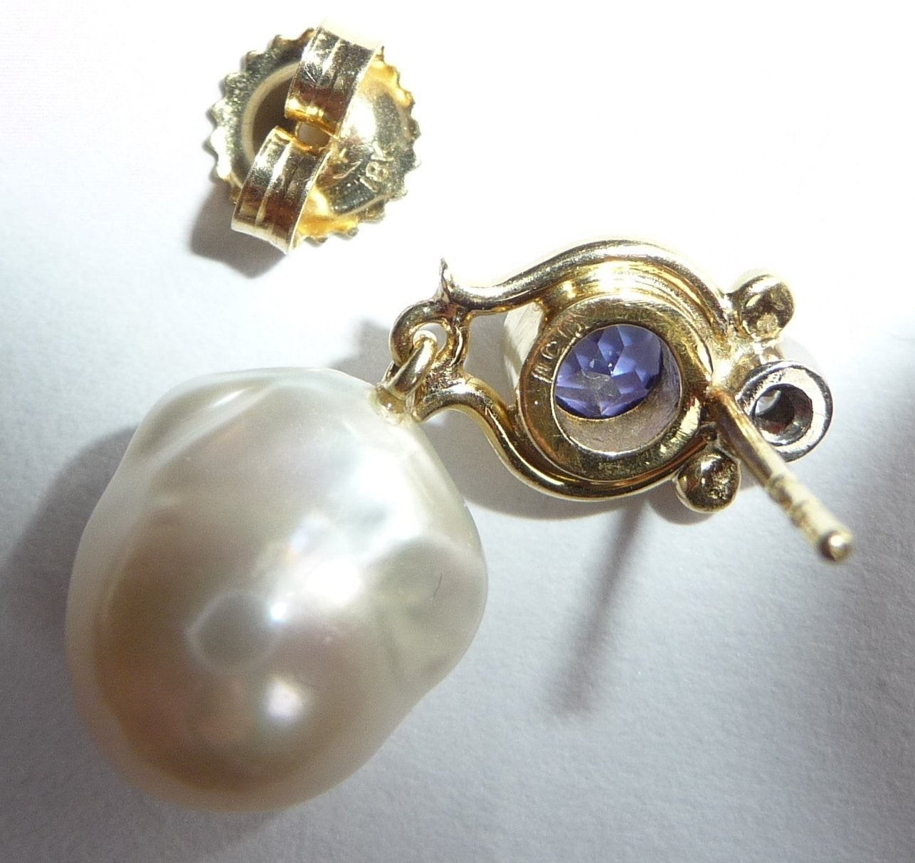 Ohrringe in 750 Gelbgold Südsee Perlen 2.0ct Tansanite Diamanten 27,6 mm lang