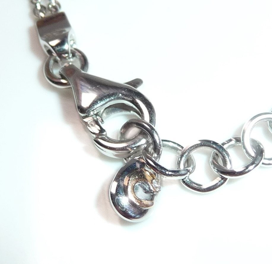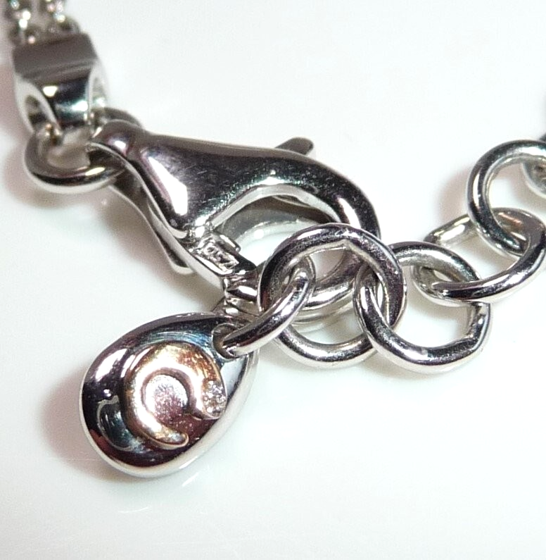 Gepunzt mit 750 auf dem Karabiner und gemarkt auf einem extra Marken-Schildchen mit 18 kt - Stern 3130 AL und die andere Seite ist signiert mit einem Gelb-Gold "C", das einen kleinen Diamanten beinhaltet.