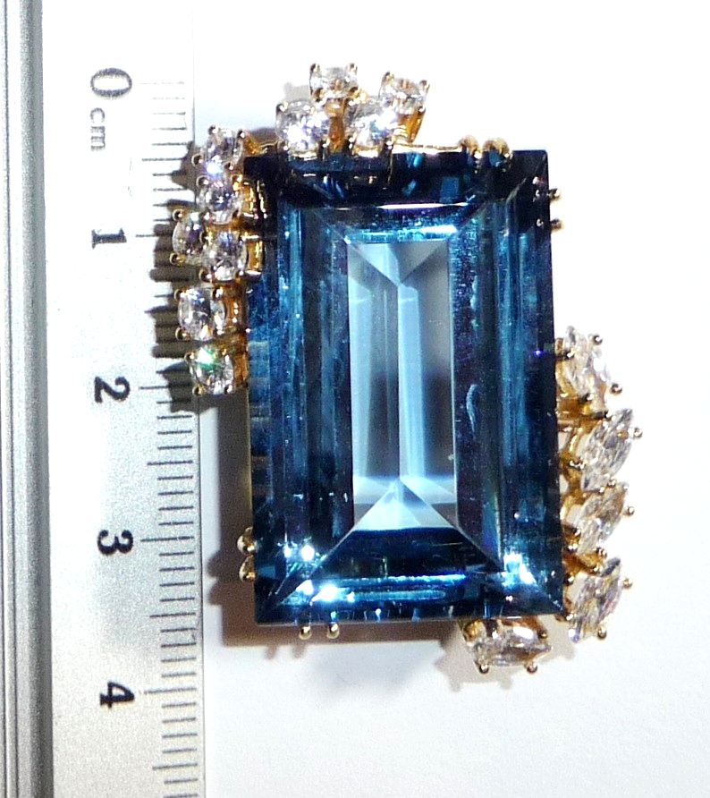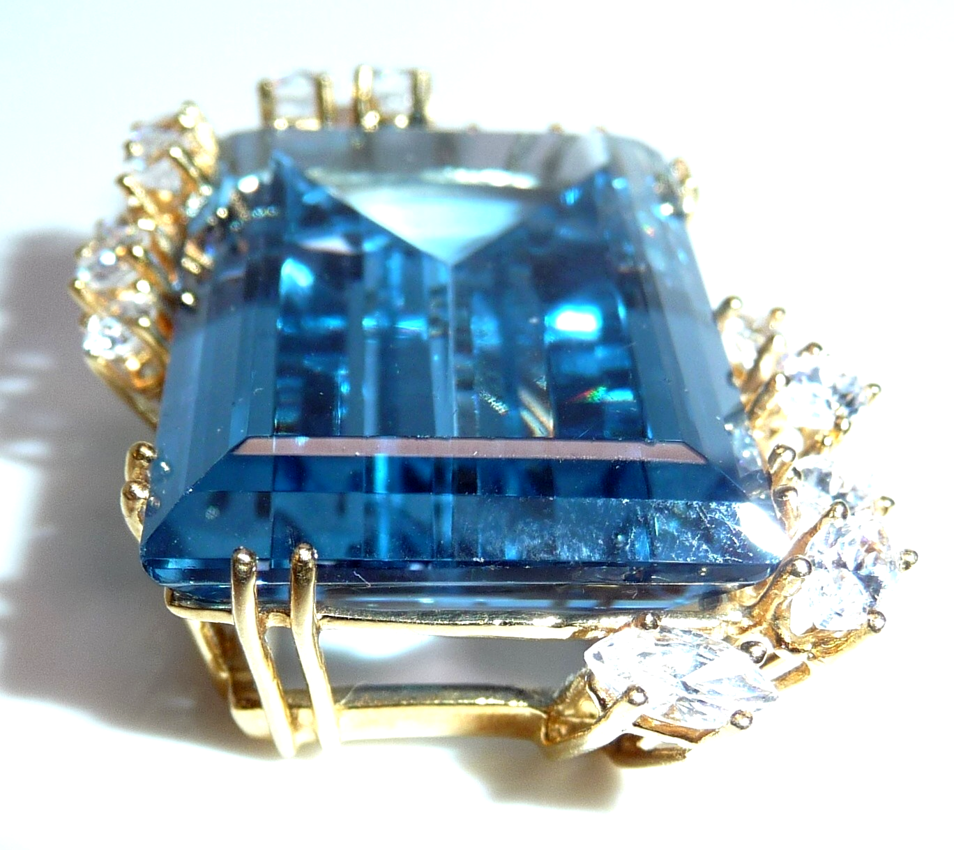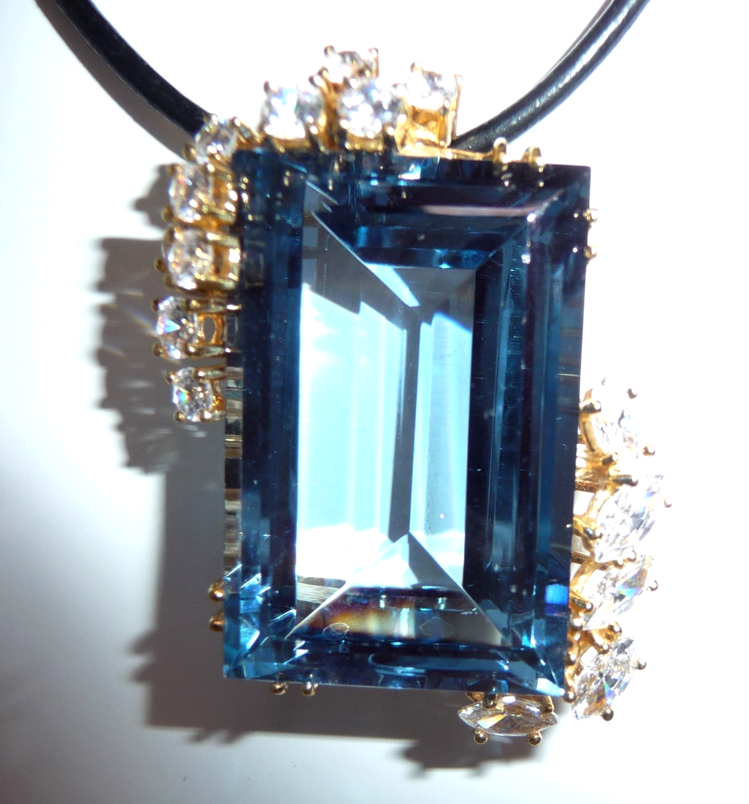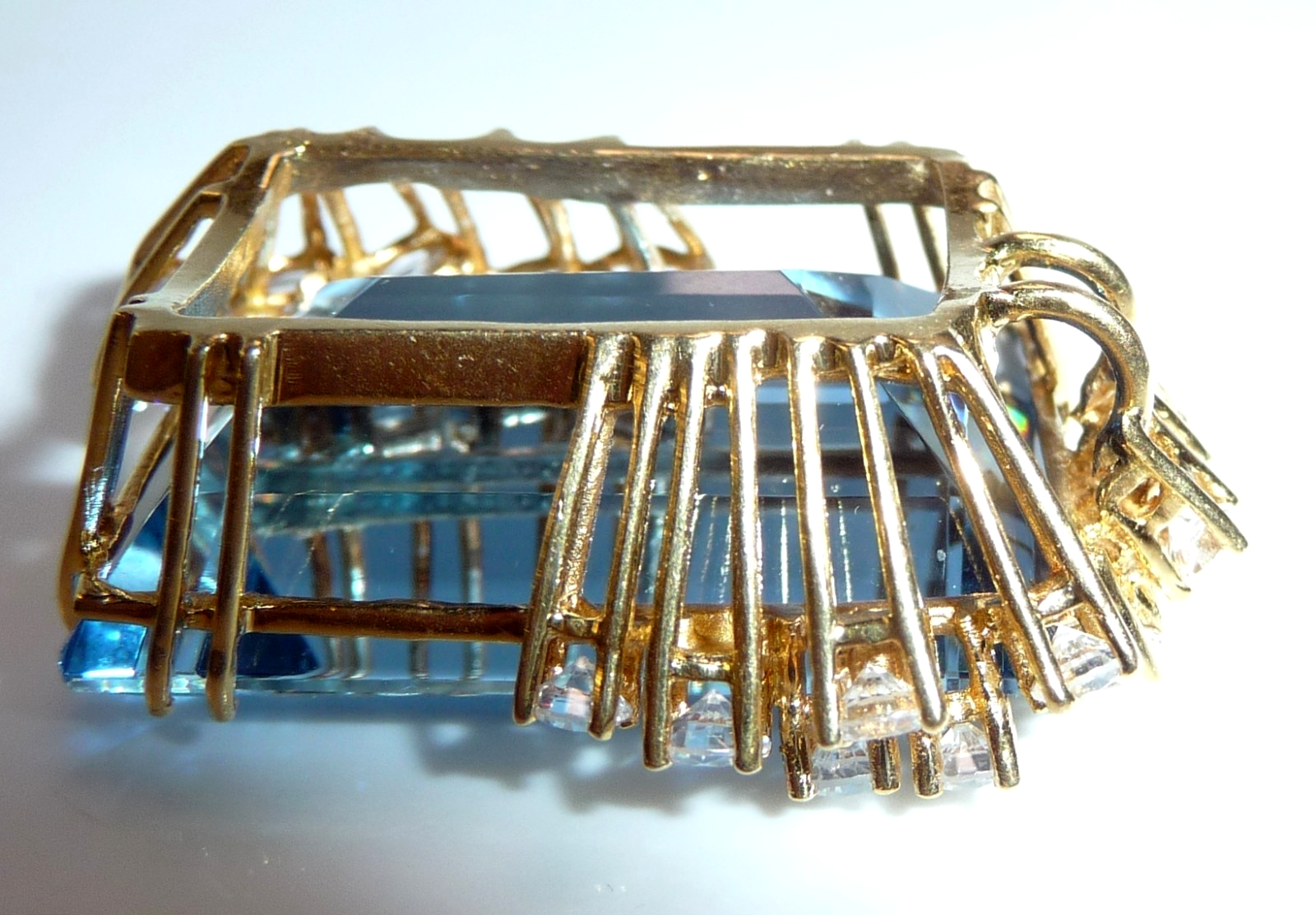 Anhänger 750 Gold Blautopas London Blue 53,60 ct. mit Zirkonia 21,6 Gramm 39 mm