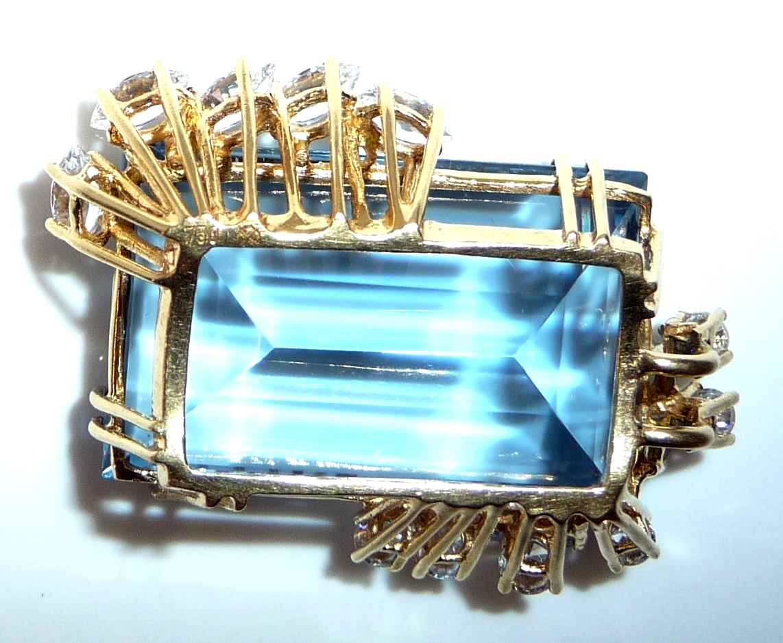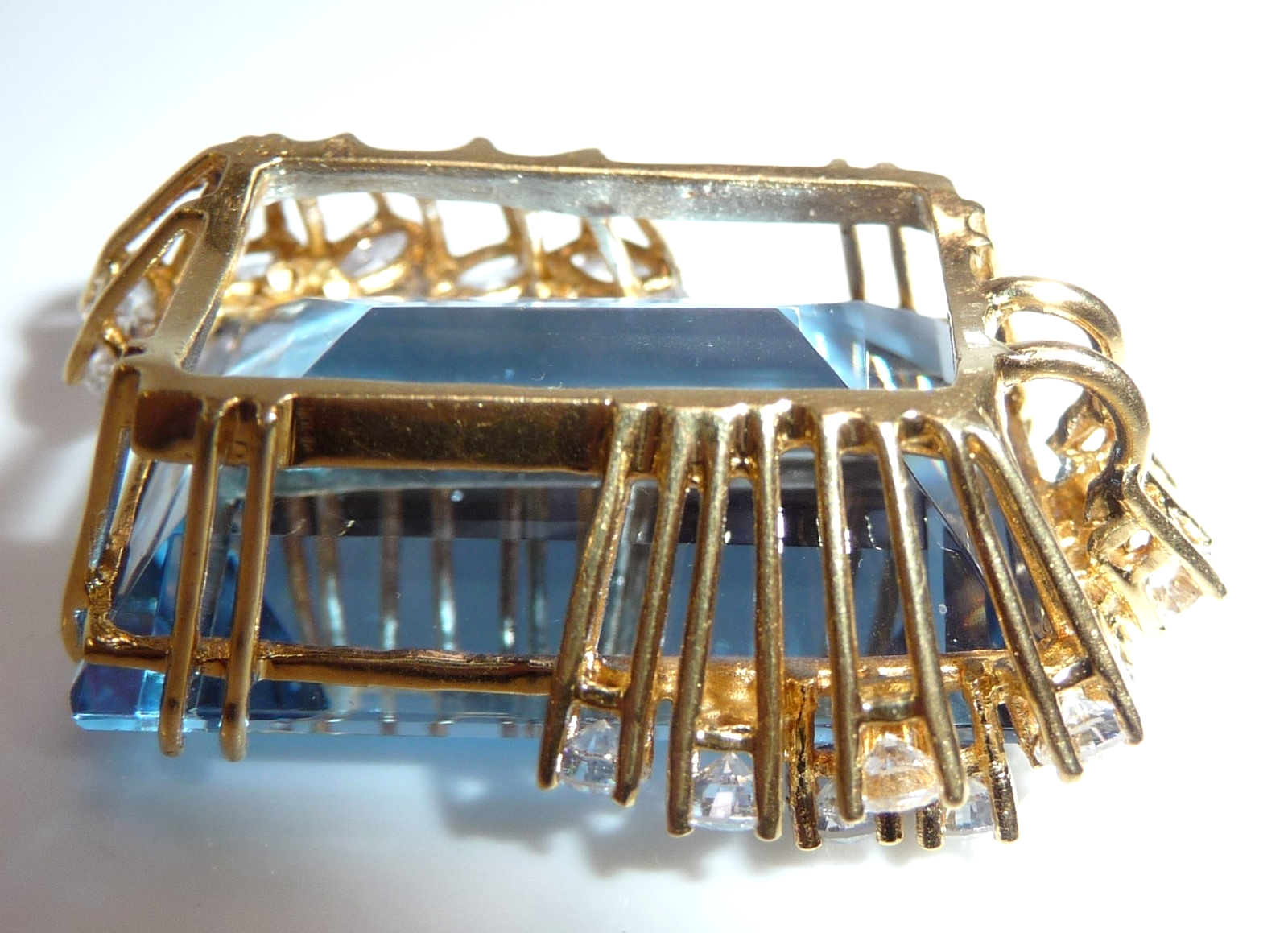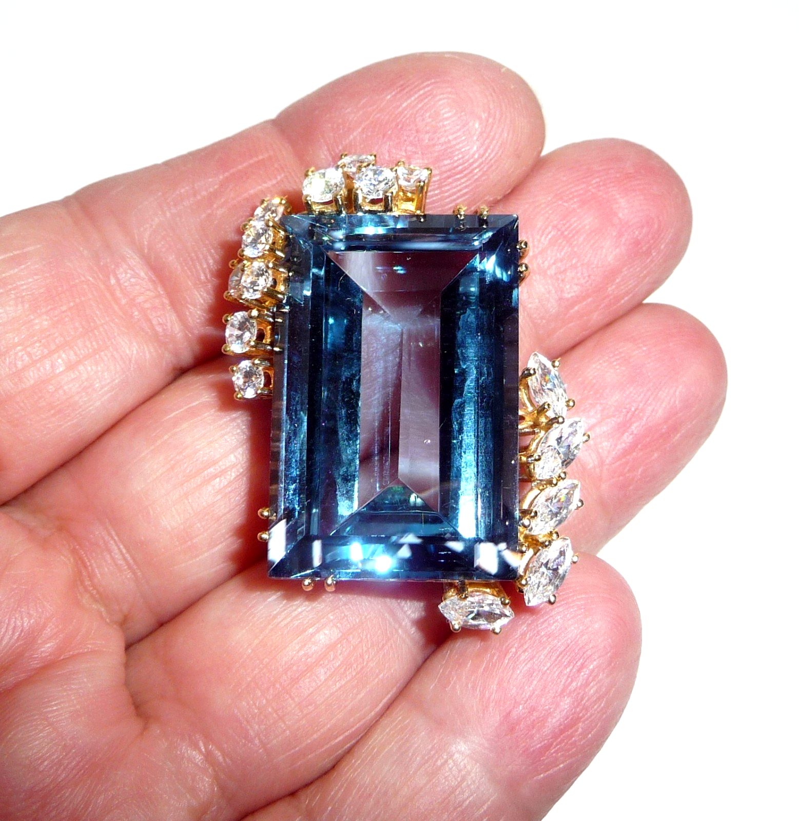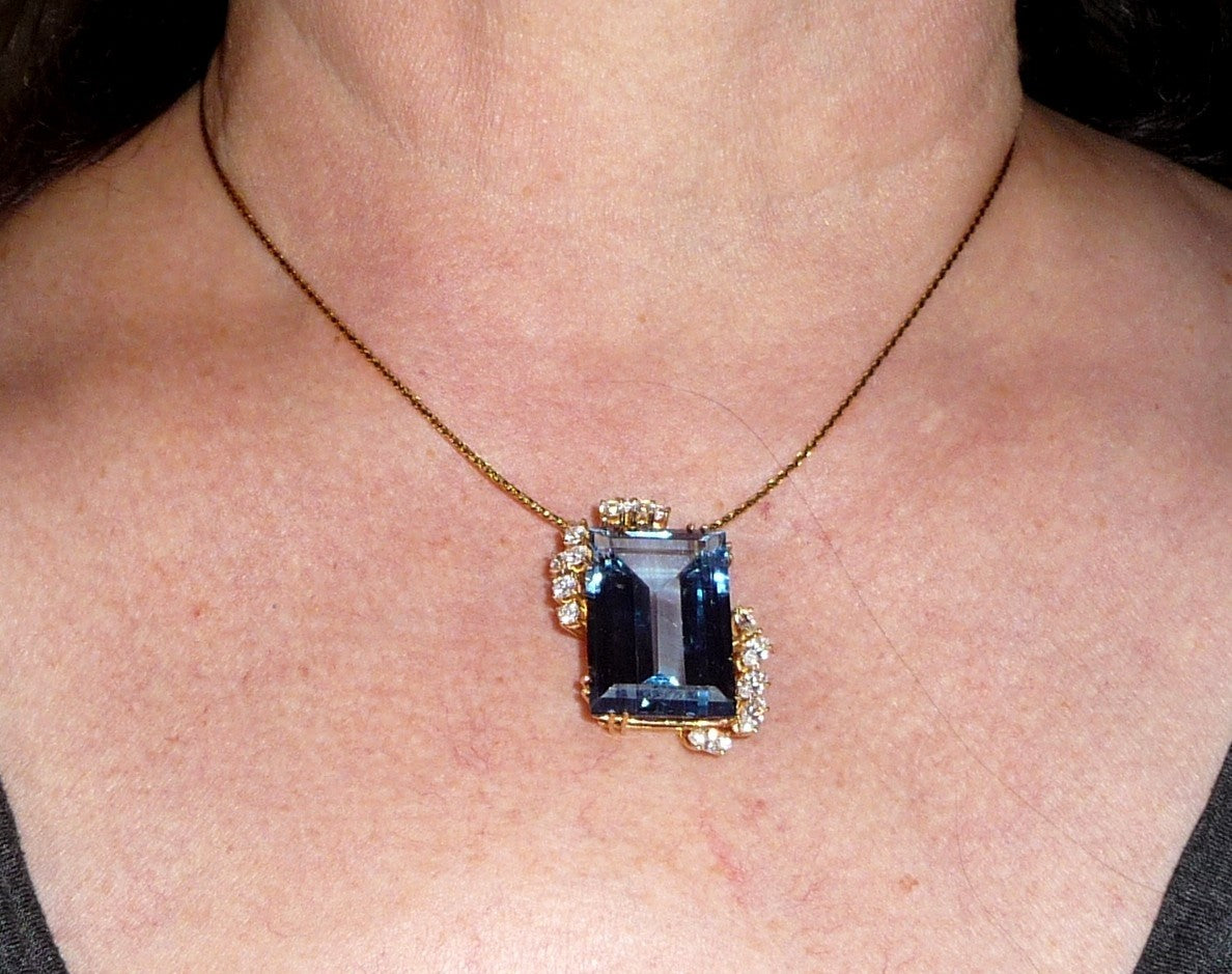 Anhänger 750 Gold Blautopas London Blue 53,60 ct. mit Zirkonia 21,6 Gramm 39 mm
