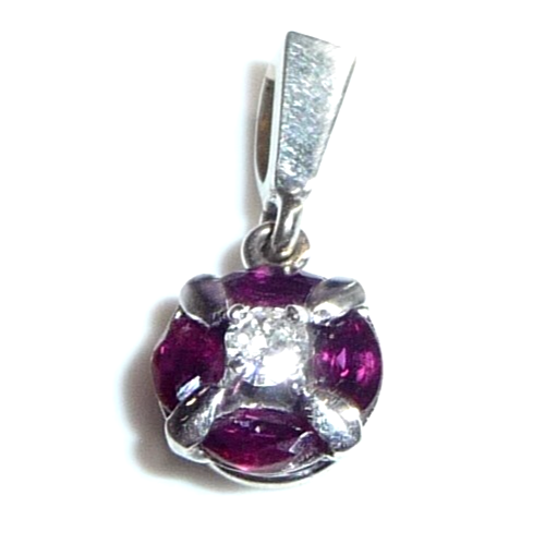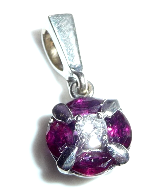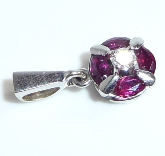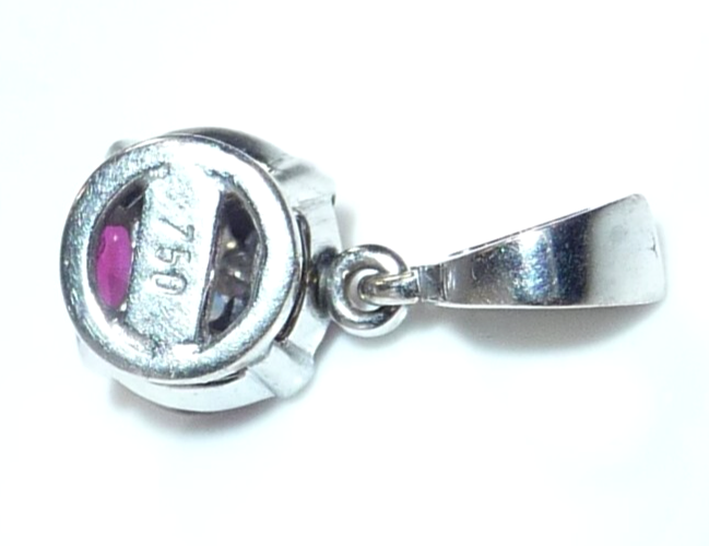 Anhänger 750 Gold Weißgold 0.08 ct. Diamant/Brillant 4 Rubine 17 mm