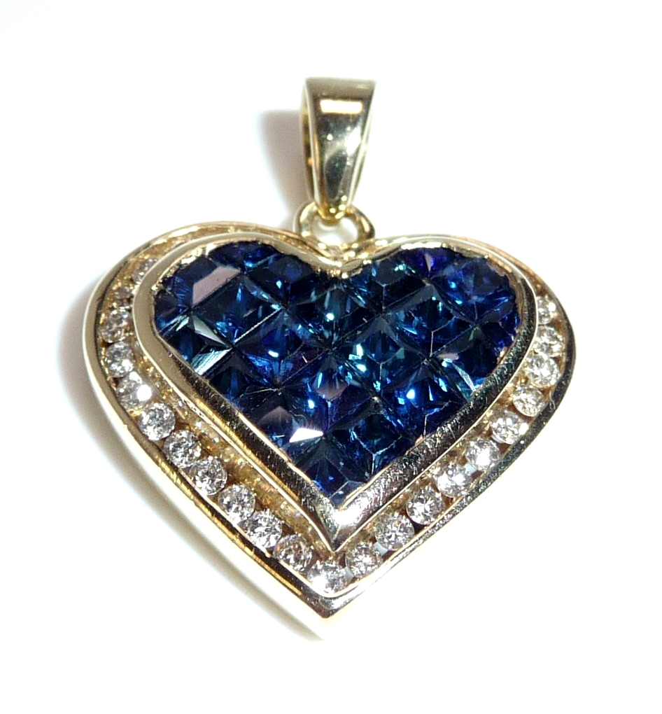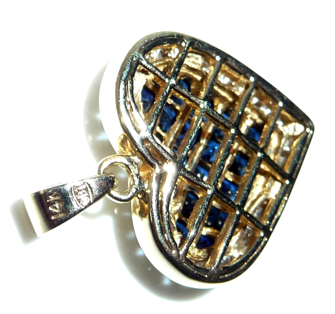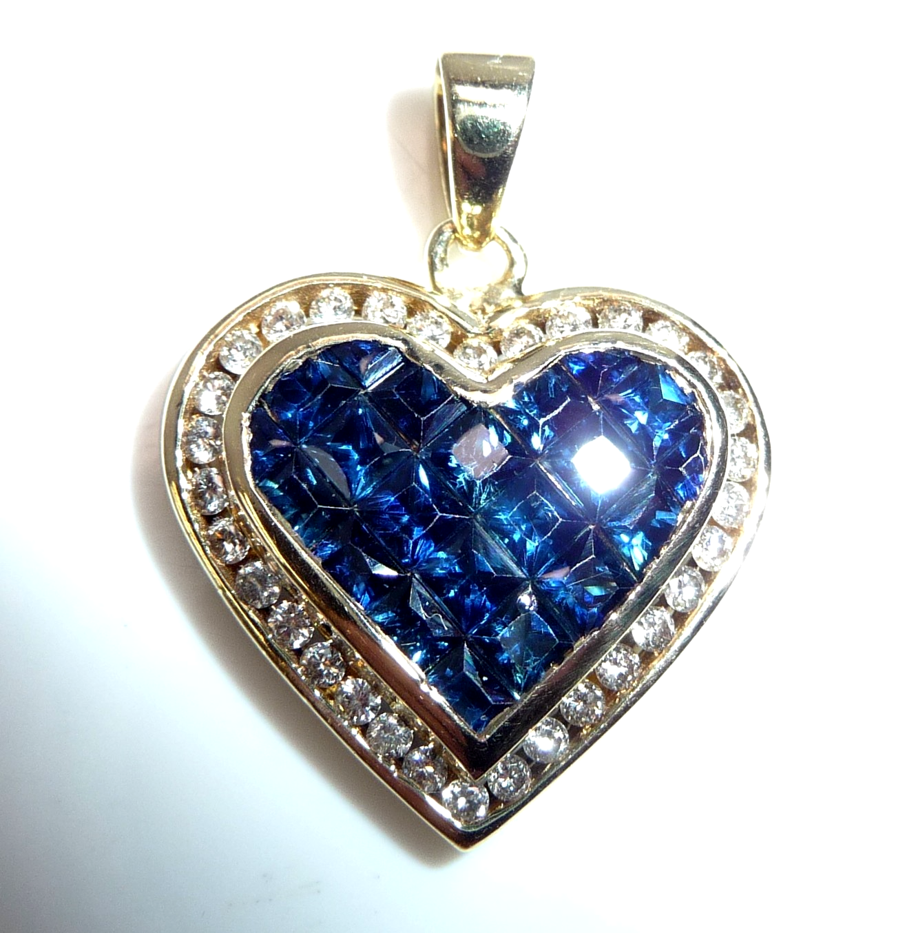 Anhänger HERZ 585 Gold Gelbgold 0.64ct Diamanten 1.00 ct Saphire 27 mm 5,2g