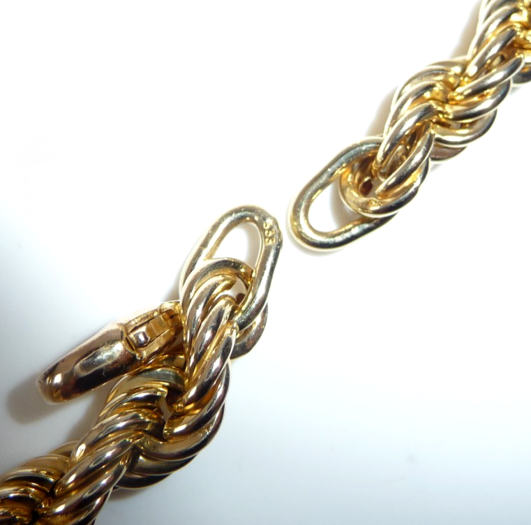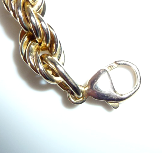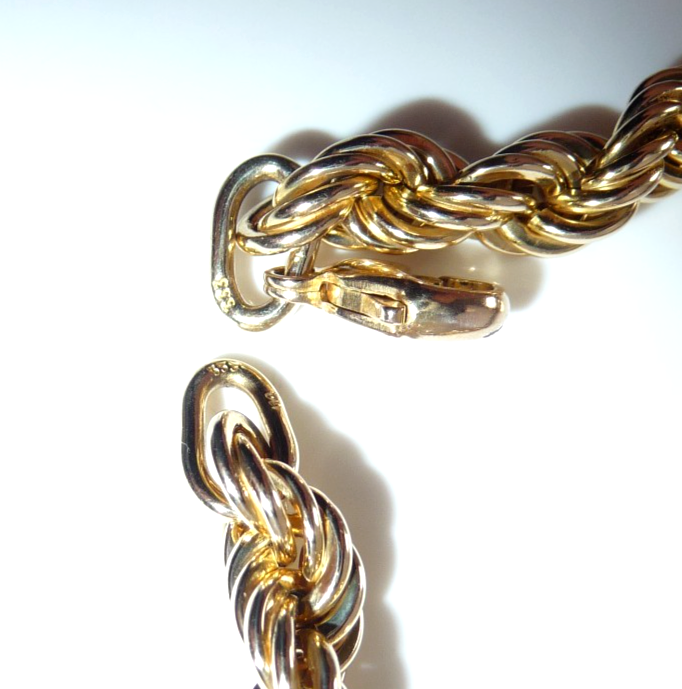 Es wurde vom Goldschmied auf einen neuwertigen Zustand poliert. Mit 8,1 Gramm ist es auch solide gearbeitet. Die außerordentliche Breite kommt daher, dass die Glieder als kleine Röhren als Hohlkörper gearbeitet sind. Diese Machart verschafft dem Armband eine imposante Breite.