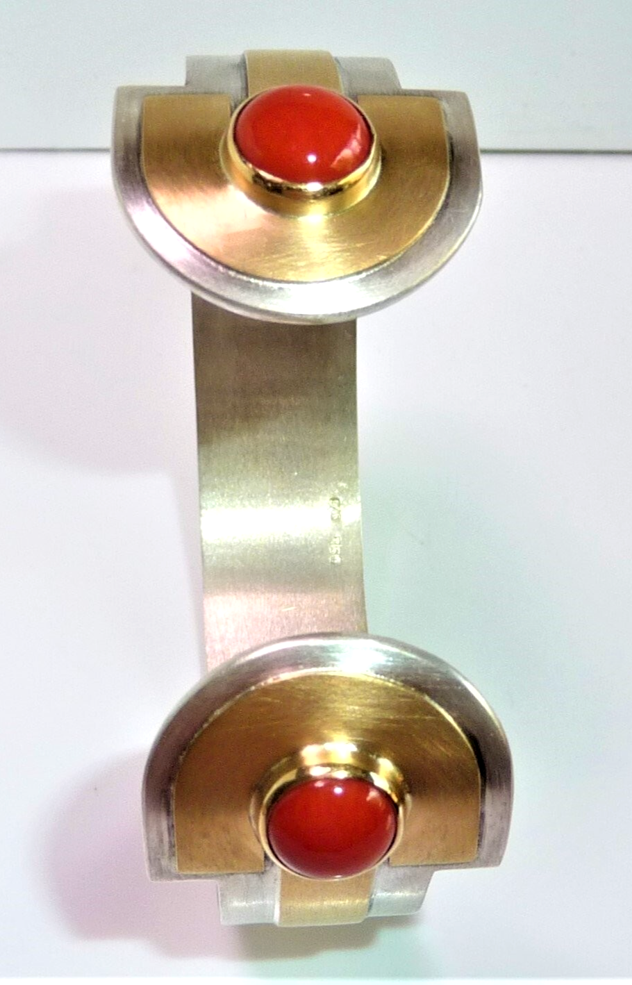 Armreif Unikat 750 Gold und 925 Silber mit 4.00 ct Koralle 17,5 cm Innenmass