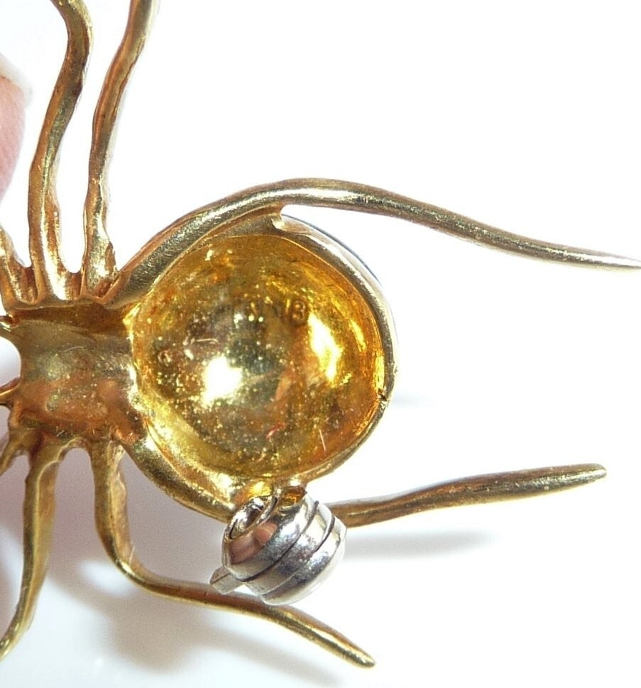 Brosche Spinne 750 Gelbgold Emaille Größe 30,0 x 29,5 mm 3,9 gr