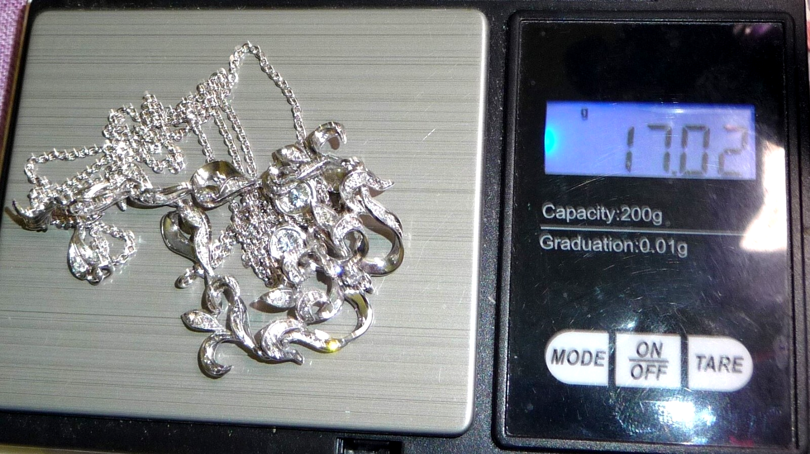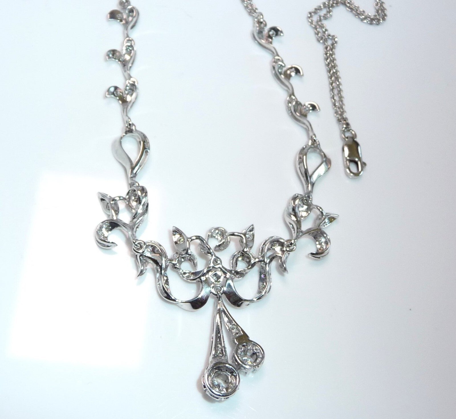 Exzellenter Neu-Zustand, da frisch rhodiniert vom Goldschmied. Das edle Collier hat auch eine wunderschöne Doppel-Kette bekommen, um die Wertigkeit und Eleganz noch zu unterstreichen.