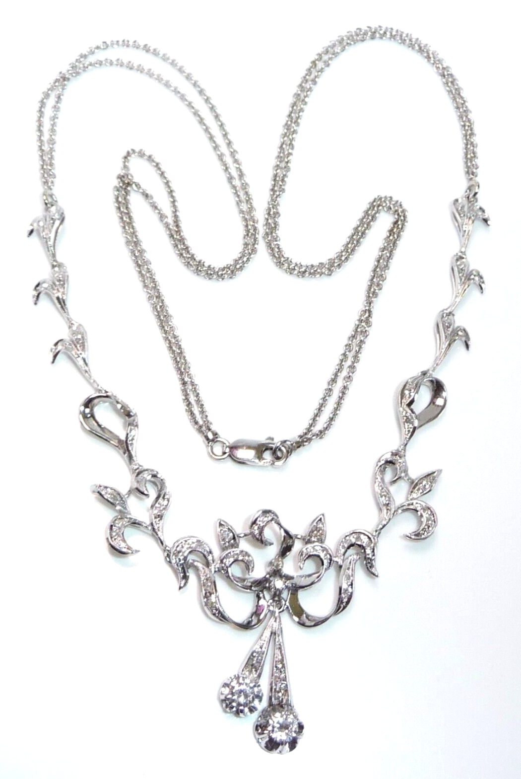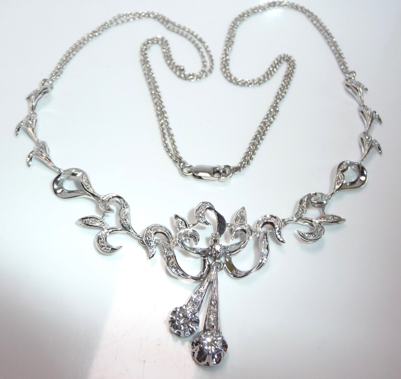 Collier Halskette 750 Gold Weißgold 1.10ct. Diamanten 51 cm 17 g Romantisch