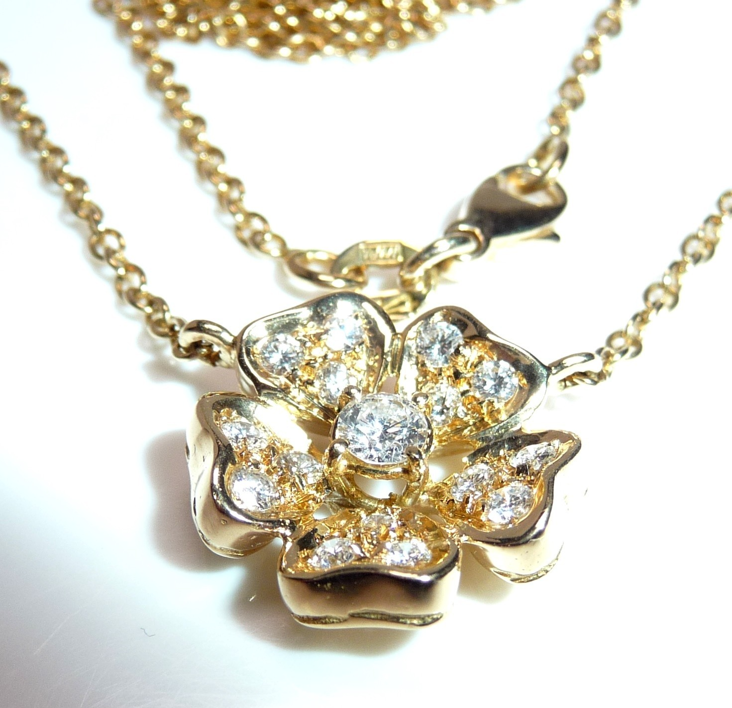 Halskette Collier 750 Gold 0.65ct Diamant/Brillanten Blüte Blume 7,7 g