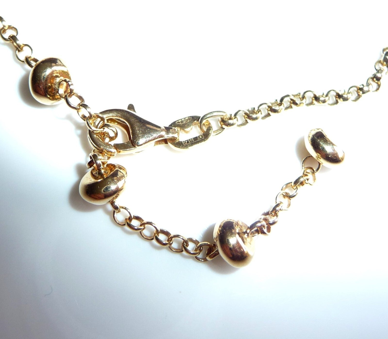 Exklusive Halskette mit Anhänger in 750/18 K Gelbgold. Es handelt sich um eine Goldschmiede-Arbeit von Hand aus einer italienischen Goldschmiede. Eine von Hand geschmiedete Erbskette, die man auf verschiedene Längen tragen kann. Die Kette ist untrennbar mit dem langen Anhänger verbunden, so dass man hier von einer Ypsilon-Kette sprechen kann.