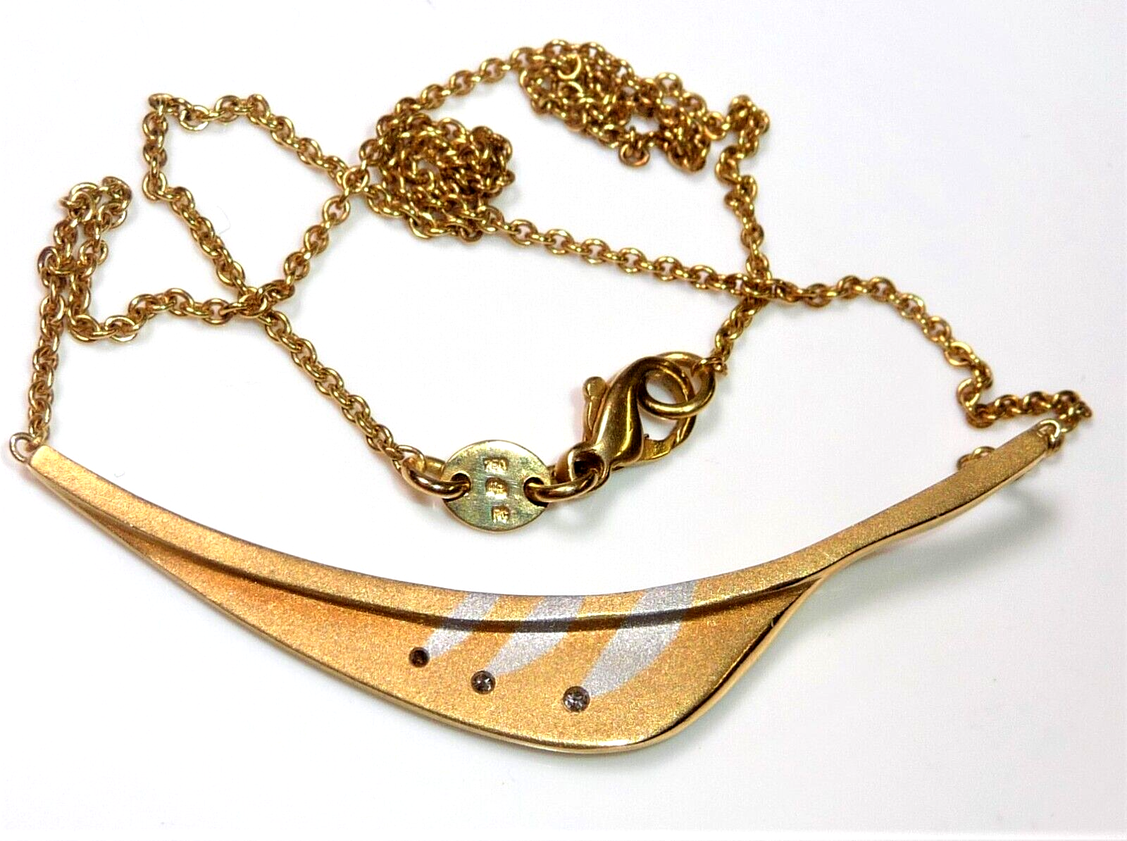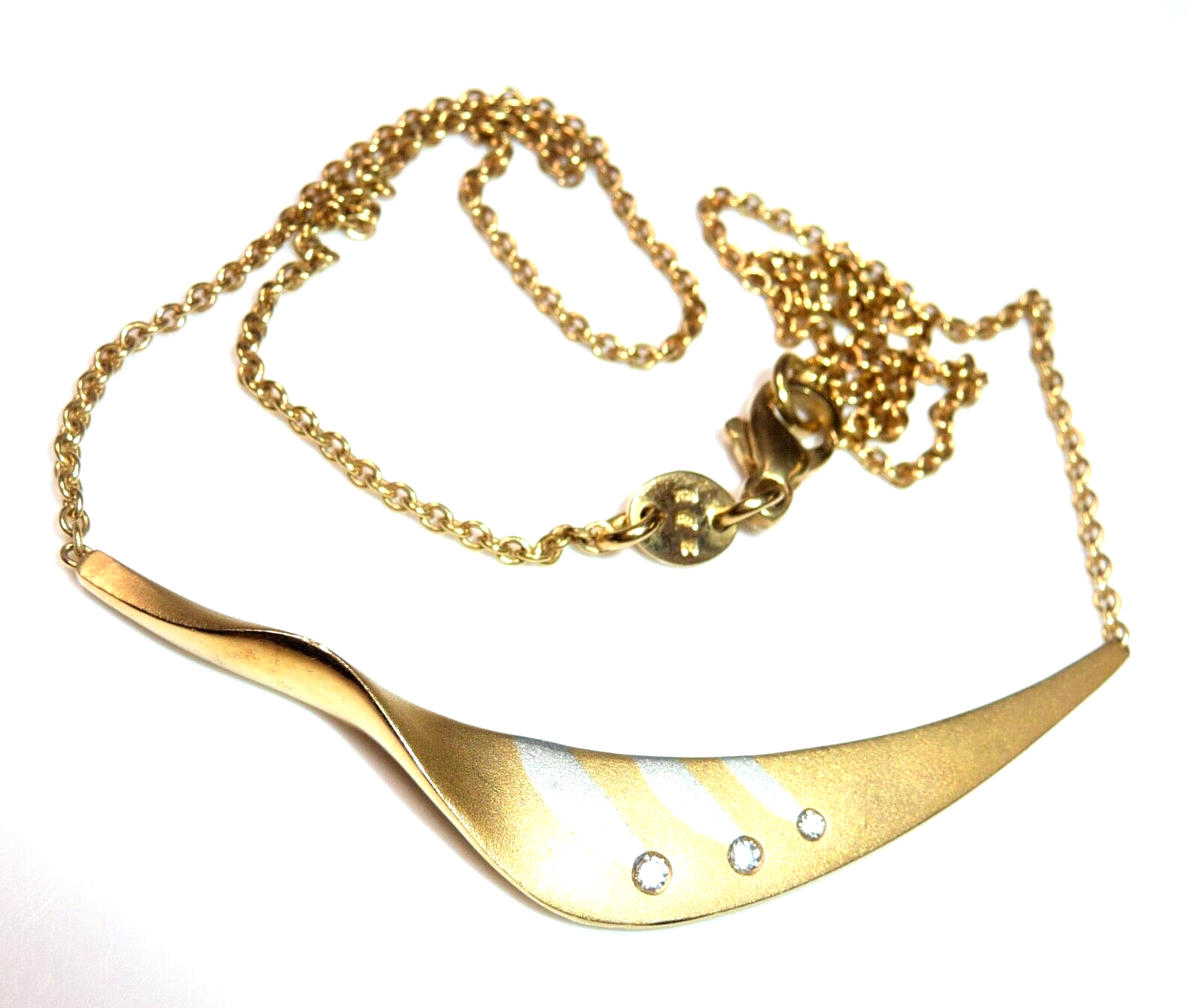 Kette Collier 750 Gold u Platin Diamanten 41 cm lang 10,2g Handarbeit Unikat