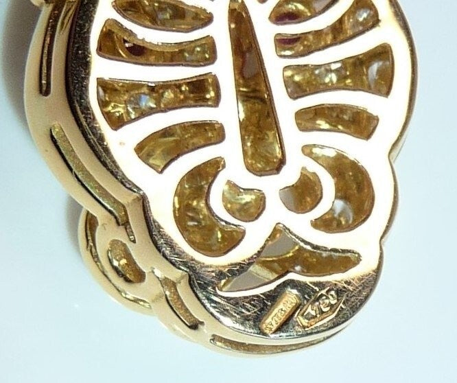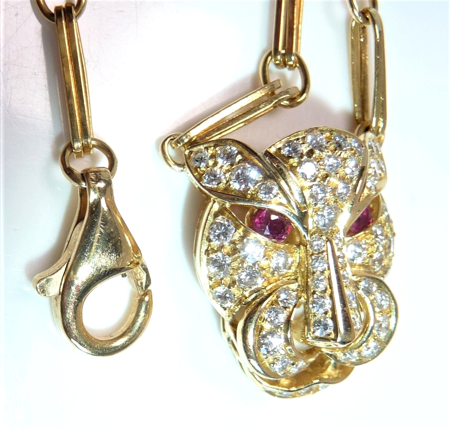 Kette Panther Katze Anhänger 750 Gold Diamanten+Rubine 41,5 mm lang 16,2g Italy