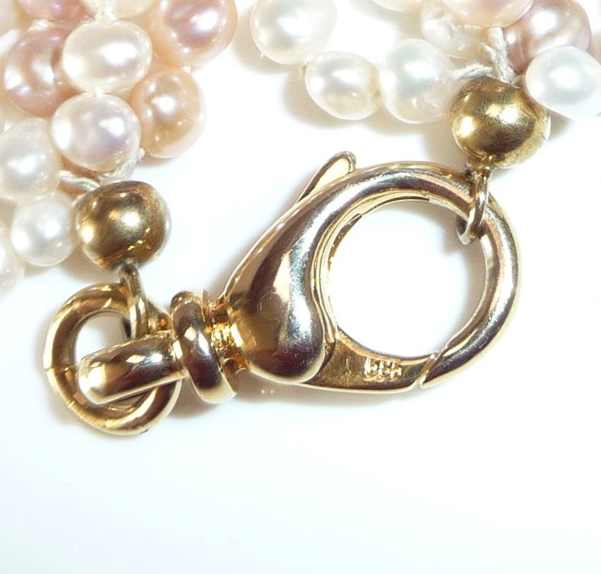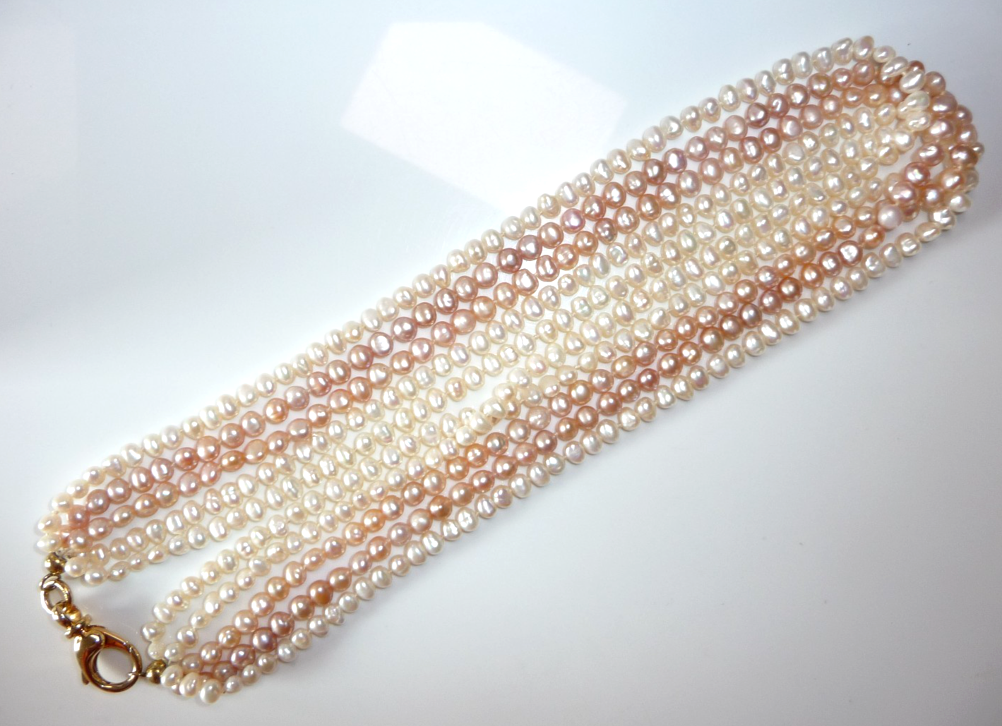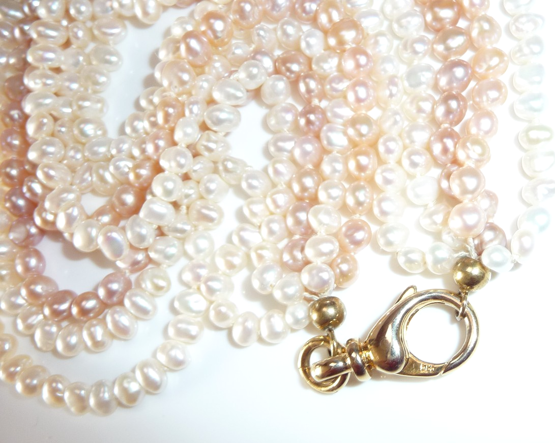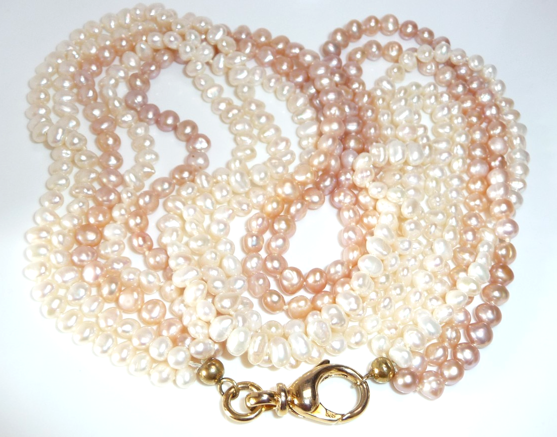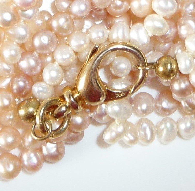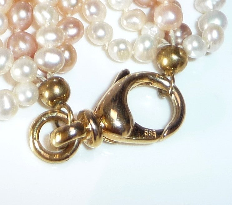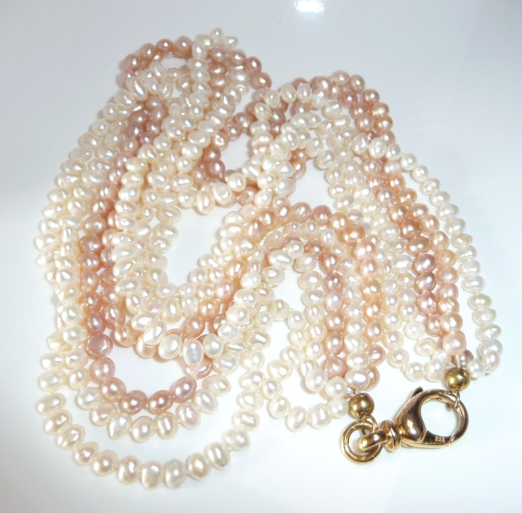 Kette Perlen 585 Gelbgold Schloss 5 Stränge ca. 450 Perlen rosa und weiß