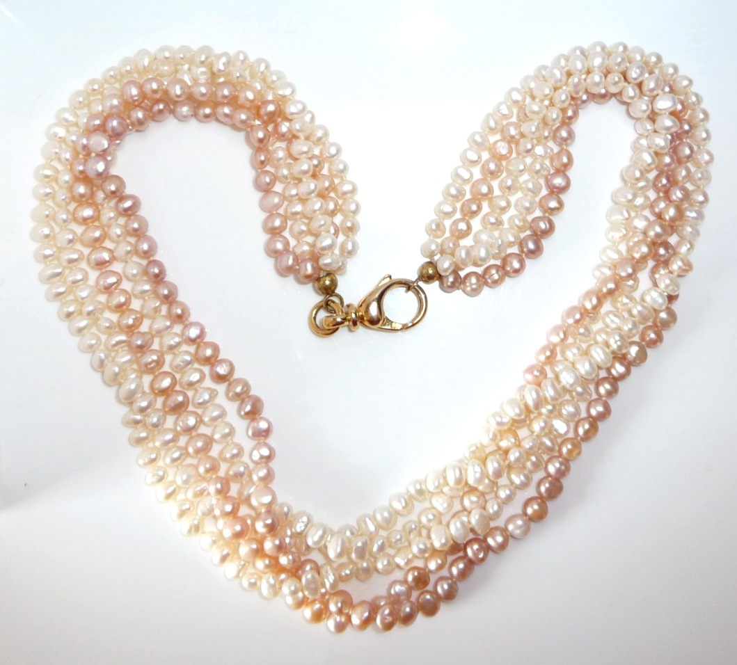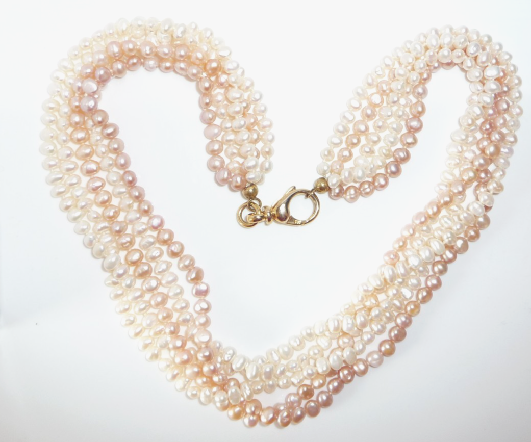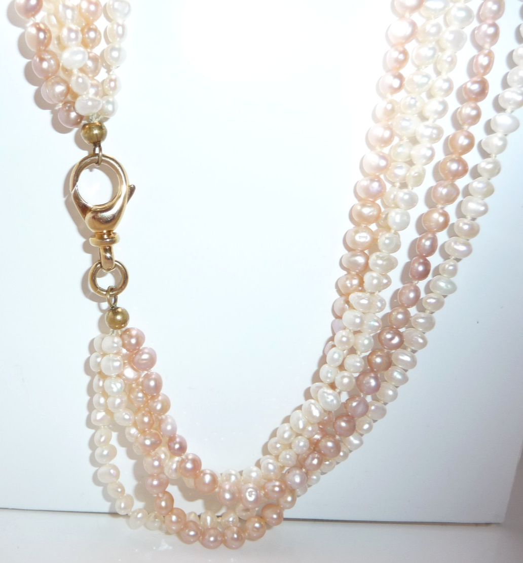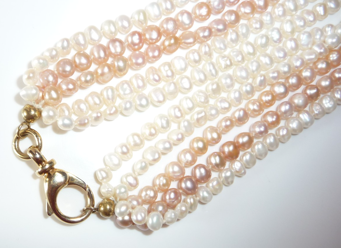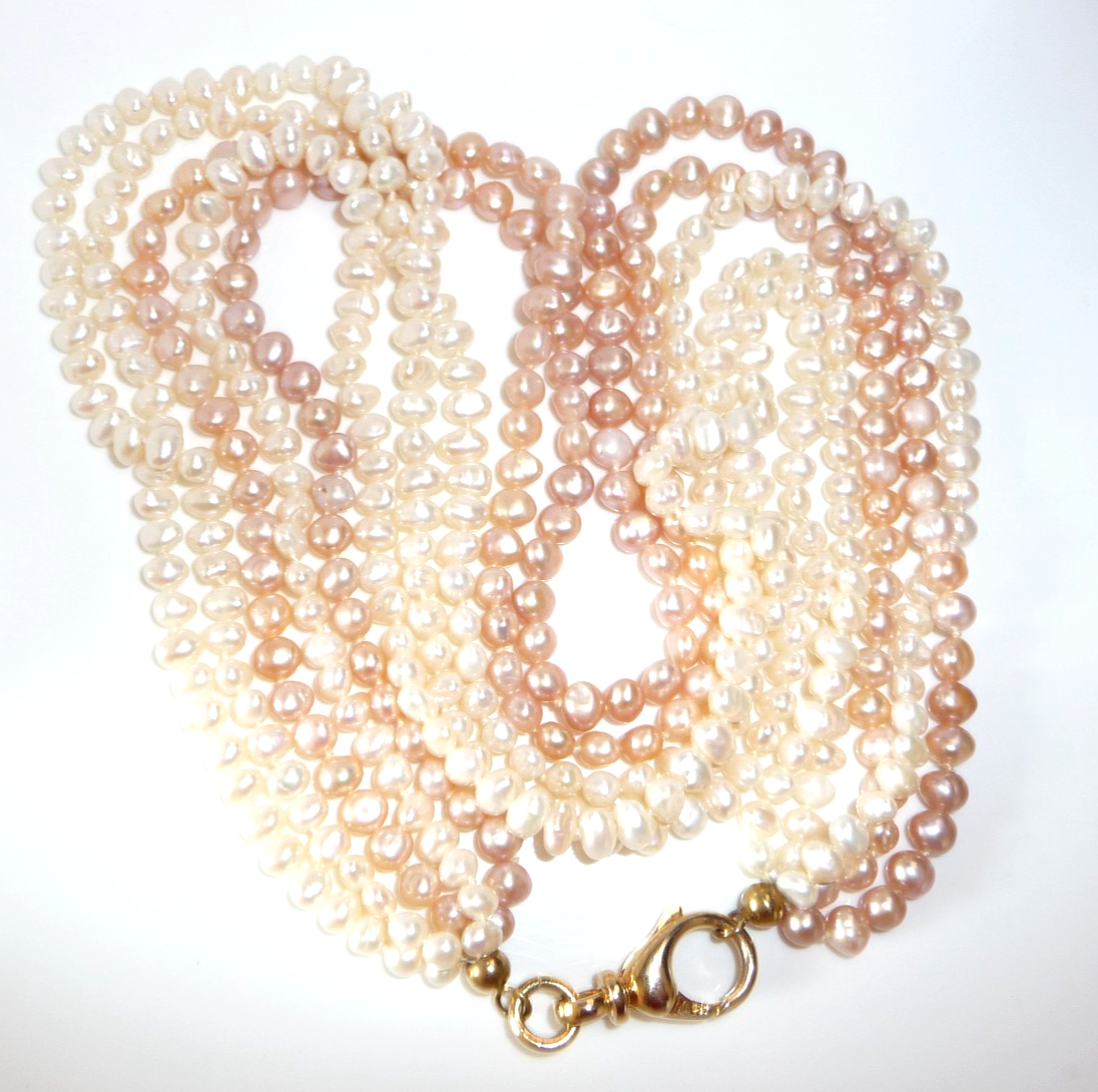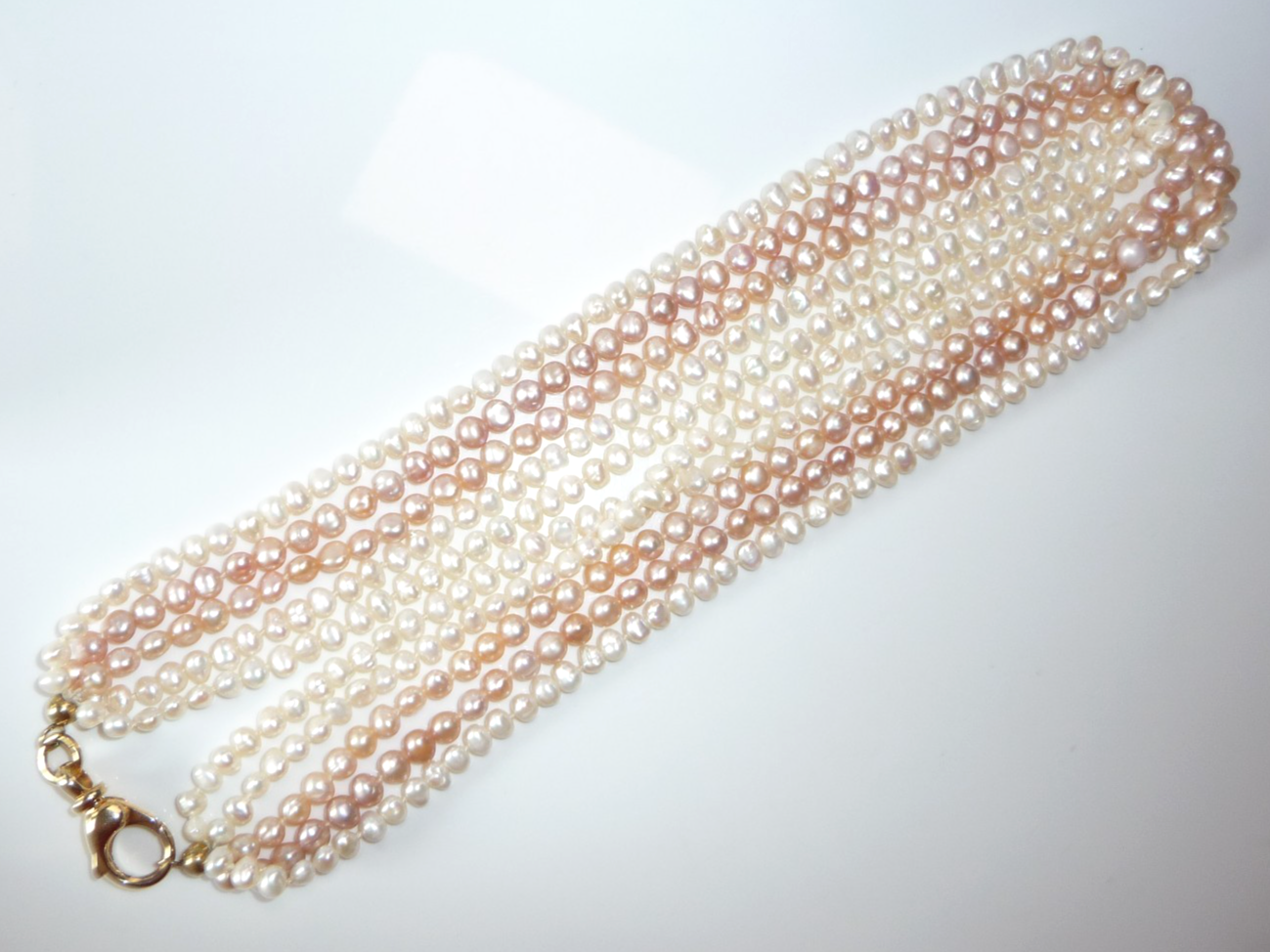 Kette Perlen 585 Gelbgold Schloss 5 Stränge ca. 450 Perlen rosa und weiß