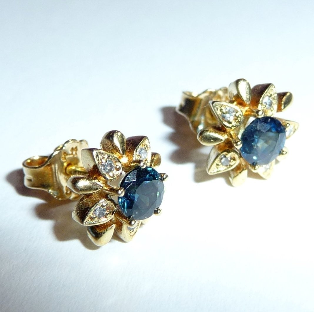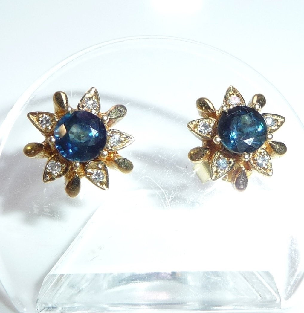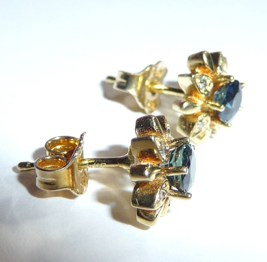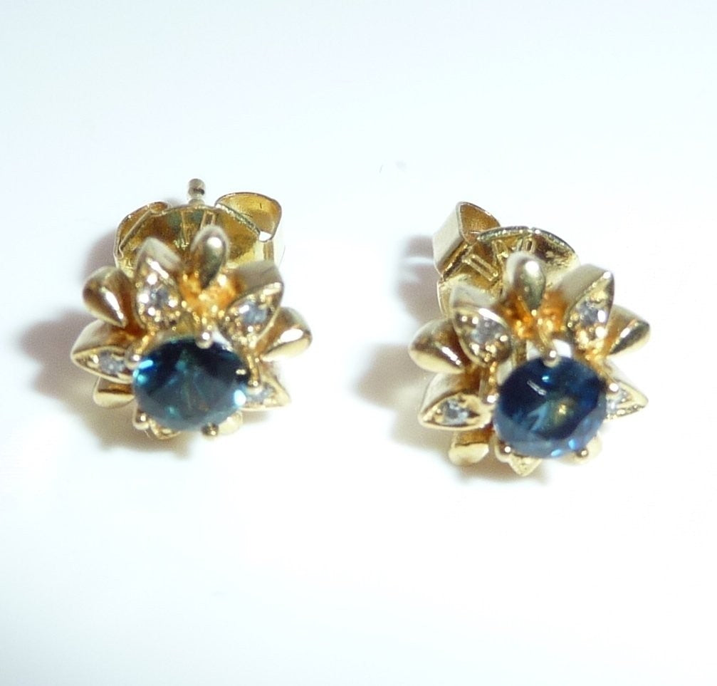 Ohrringe 585 Gelbgold 0.10ct. Diamanten 0.60 ct Saphire Durchmesser 9,7 mm