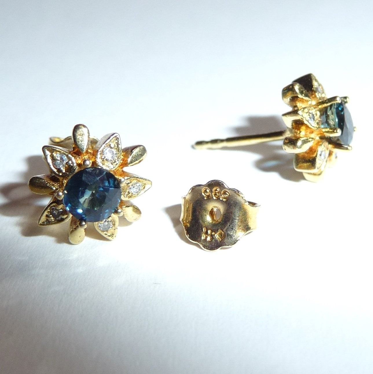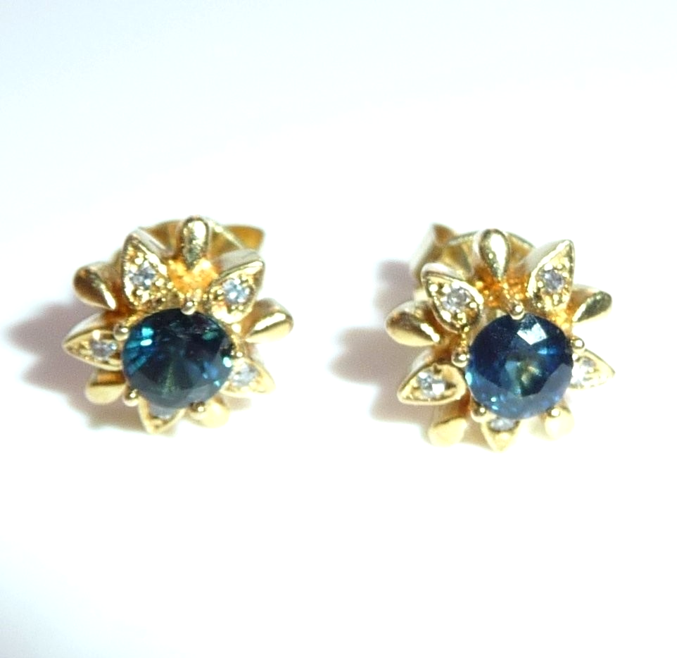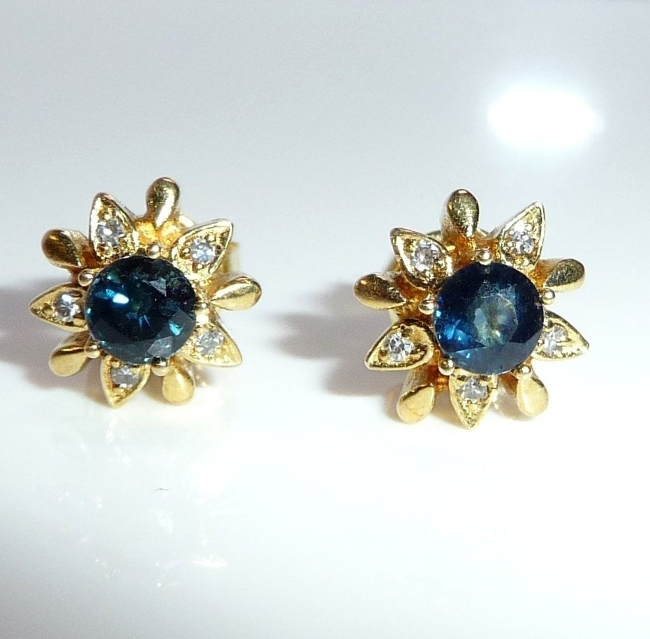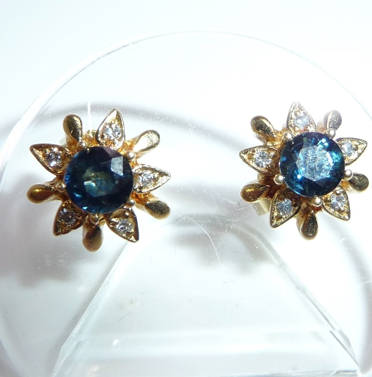 Ohrringe 585 Gelbgold 0.10ct. Diamanten 0.60 ct Saphire Durchmesser 9,7 mm