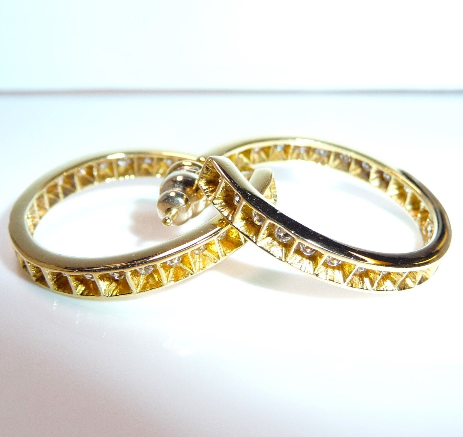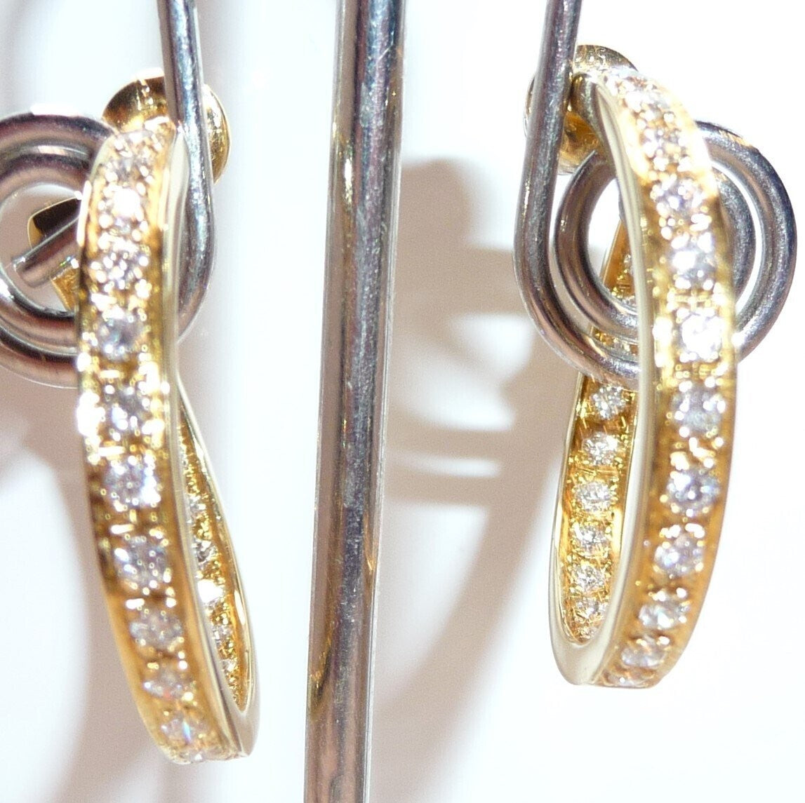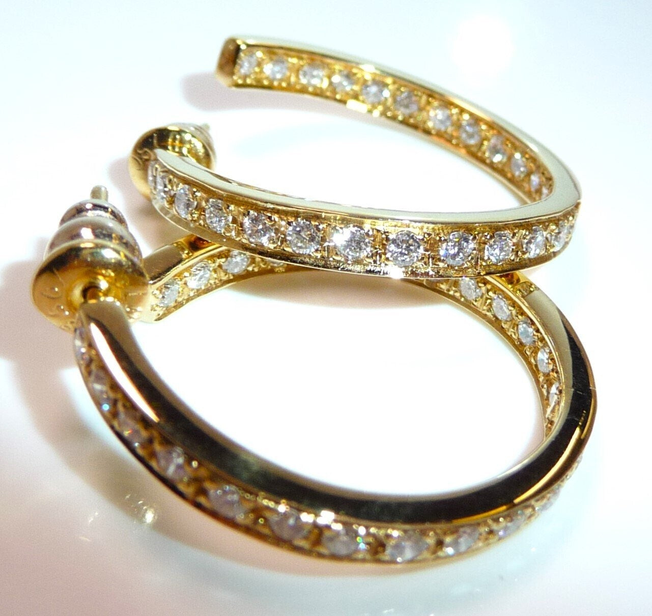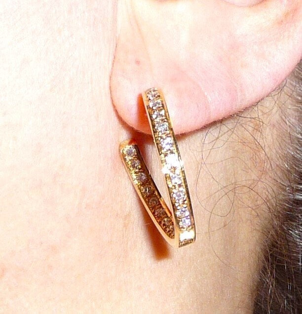 Die Ohrringe / Creolen sind von Hand gefertigt und außen und innen in dem Kreis besetzt. Jeder Diamant ist mit Sorgfalt von Hand eingefasst.
