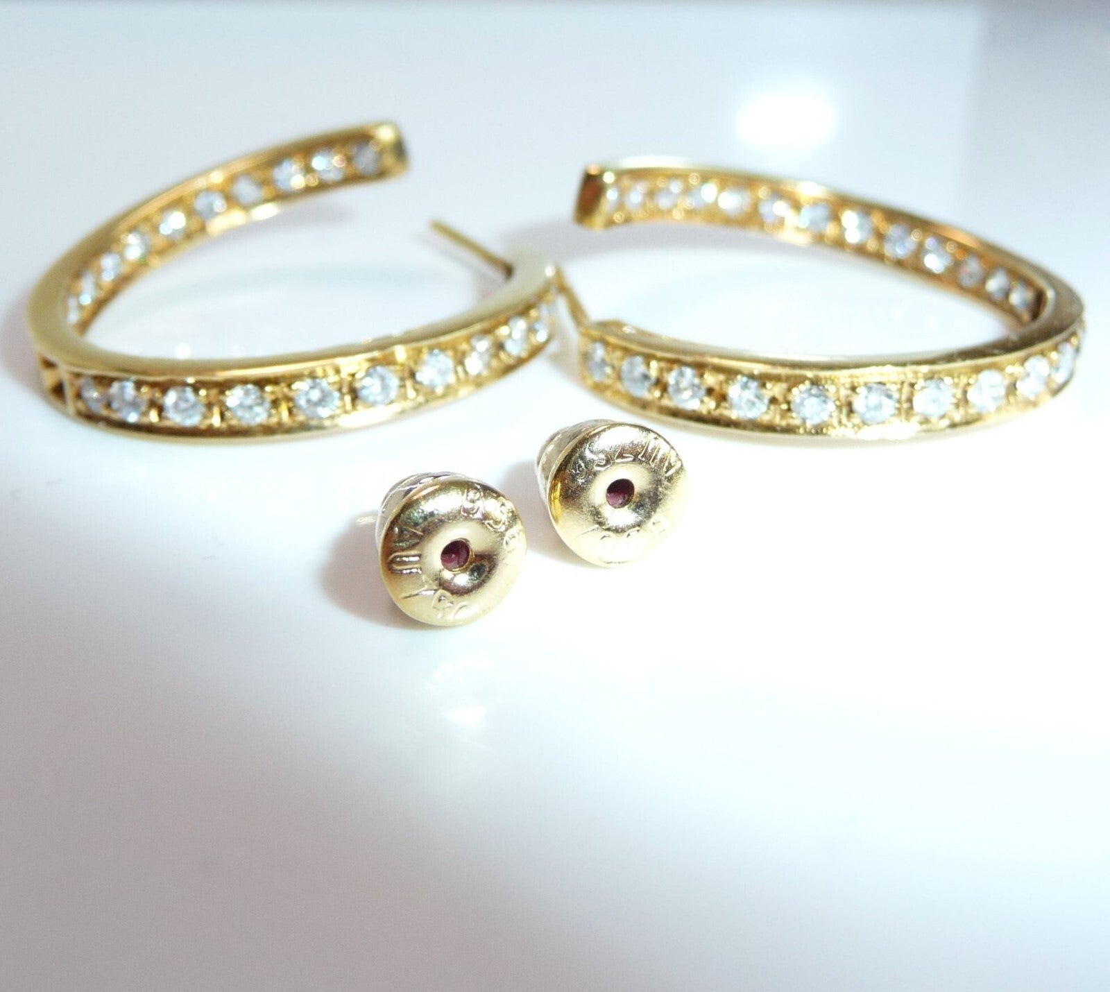 Gepunzt direkt auf den Stiften mit 750 und auf den Ohrmuttern mit AU 750 und einer Nummer B567